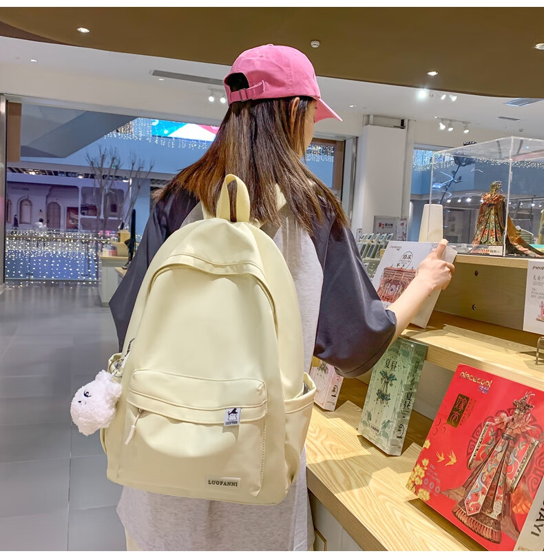 CLBD书包女高颜值ins韩版可爱背包大容量初高中小学生简约通勤双肩包 黄色 大号