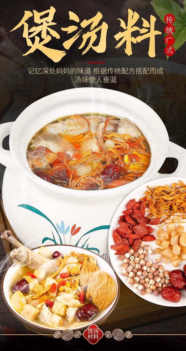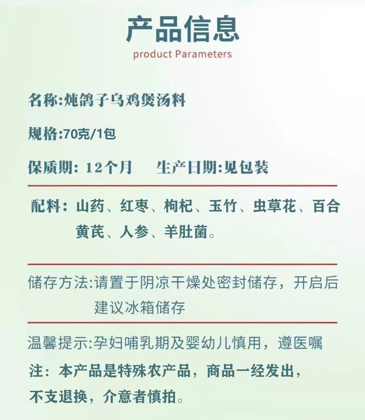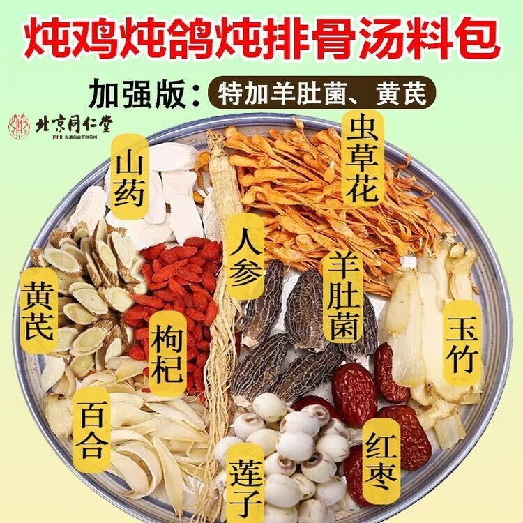 北京同仁堂鸽子汤煲汤材料补气血滋补养血乌鸡鸽子汤药膳炖汤材料包煲汤材料 【一包约71克】10包净重 滋补加强人参黄芪虫草花十料包