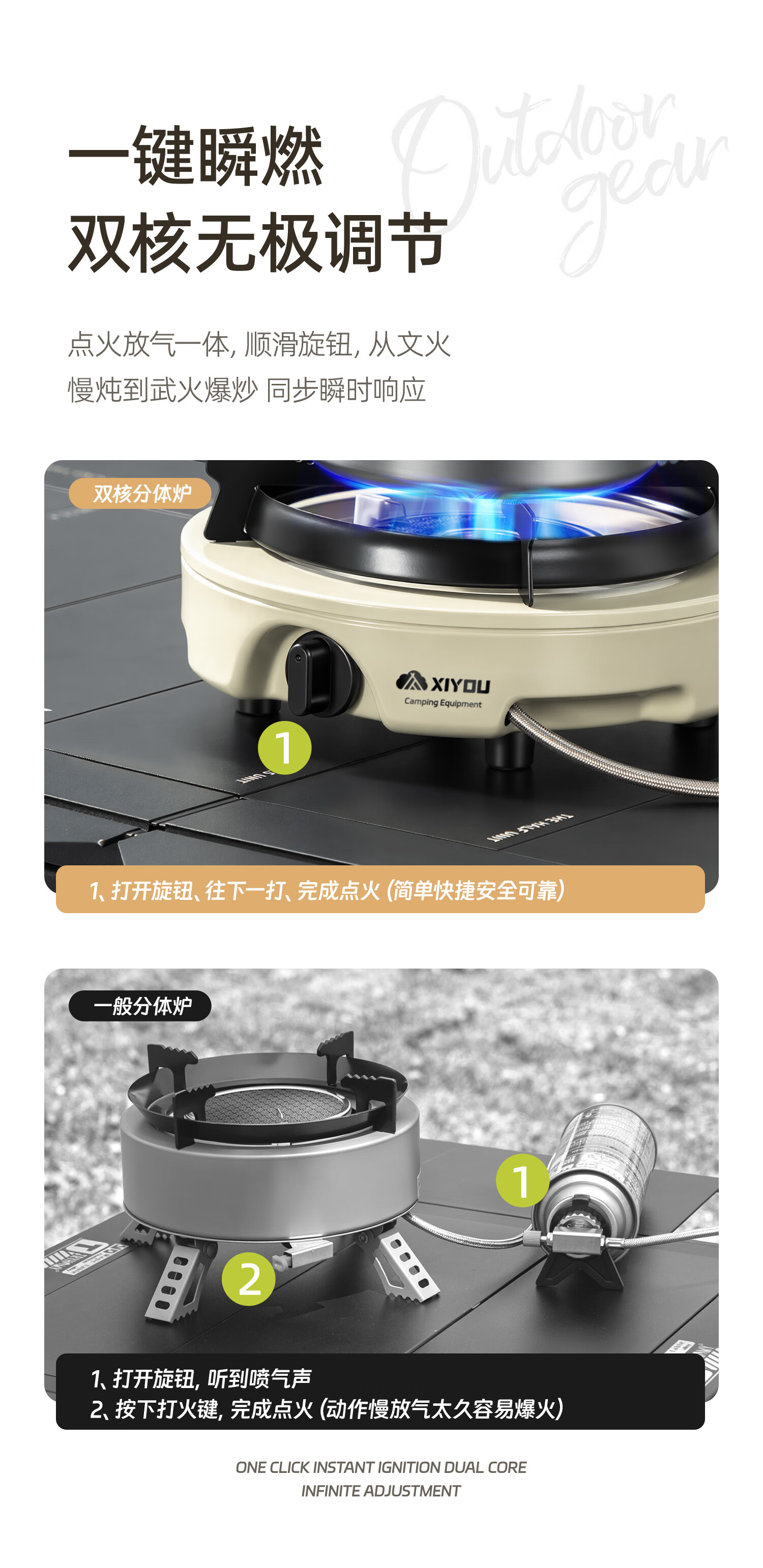 嘻由分体式卡式炉2025新款户外炉具便携式煮茶露营家用防风猛火卡磁炉 【胡椒白五代分体炉】+4卡式气瓶 第五代双核稳压加大炉头