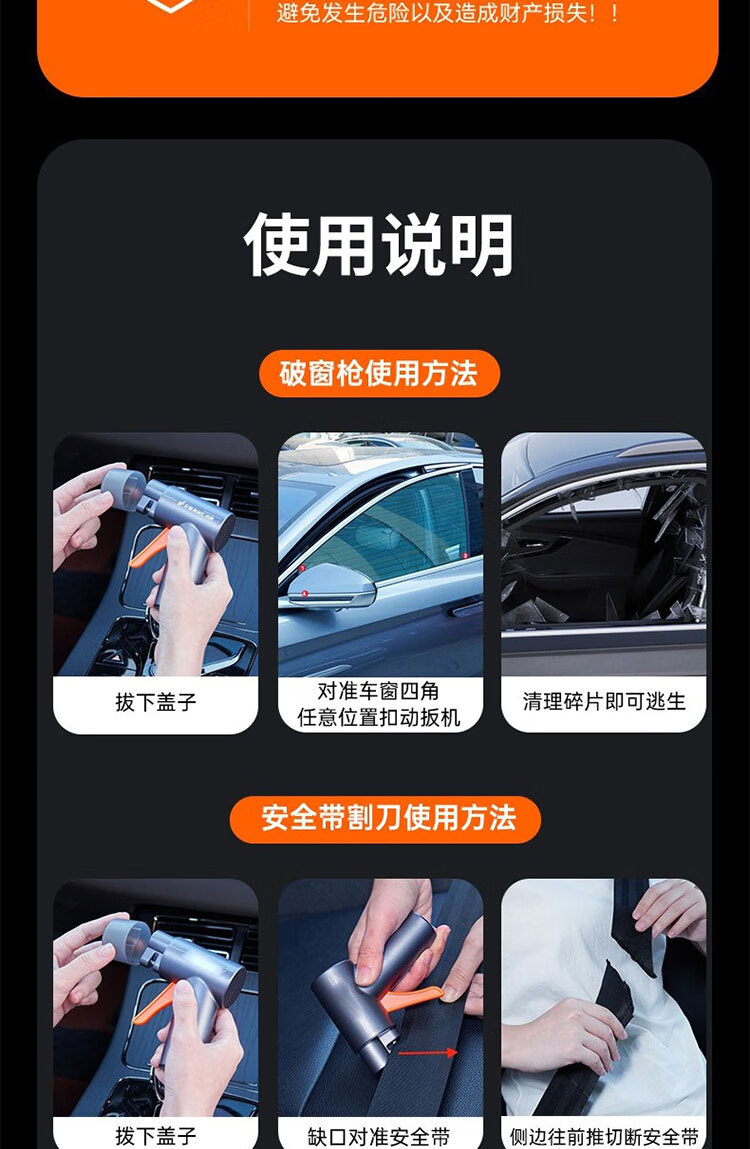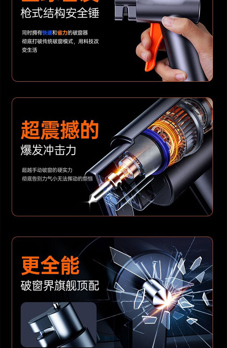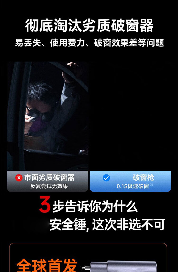 馍彭德国汽车破窗器车载安全锤车用救生应急多功能车内逃生锤一秒破窗 经典款【钛金灰】一秒破窗丨快速逃生