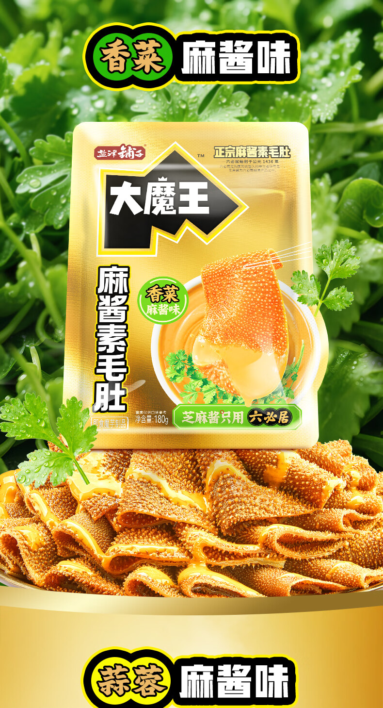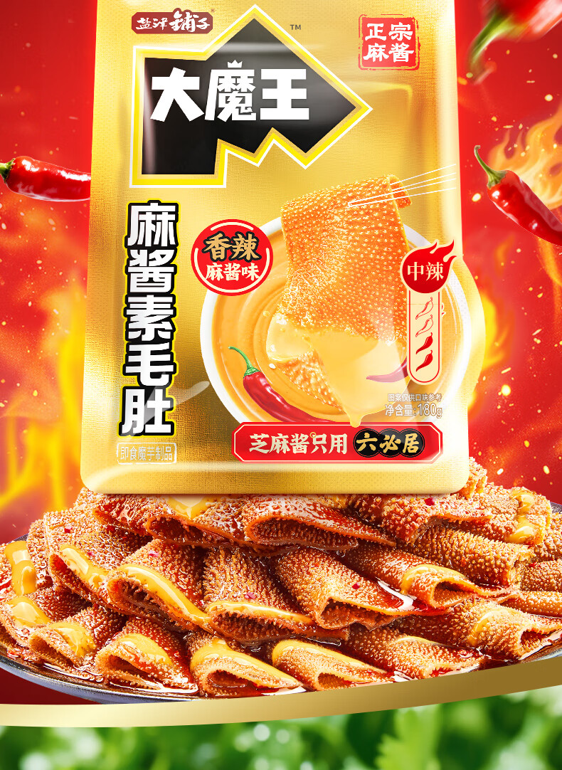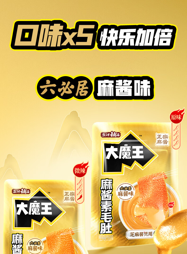 盐津铺子大魔王魔芋麻酱素毛肚大片火锅味解馋零食小吃休闲食品辣味 【约50包】麻酱原味450g
