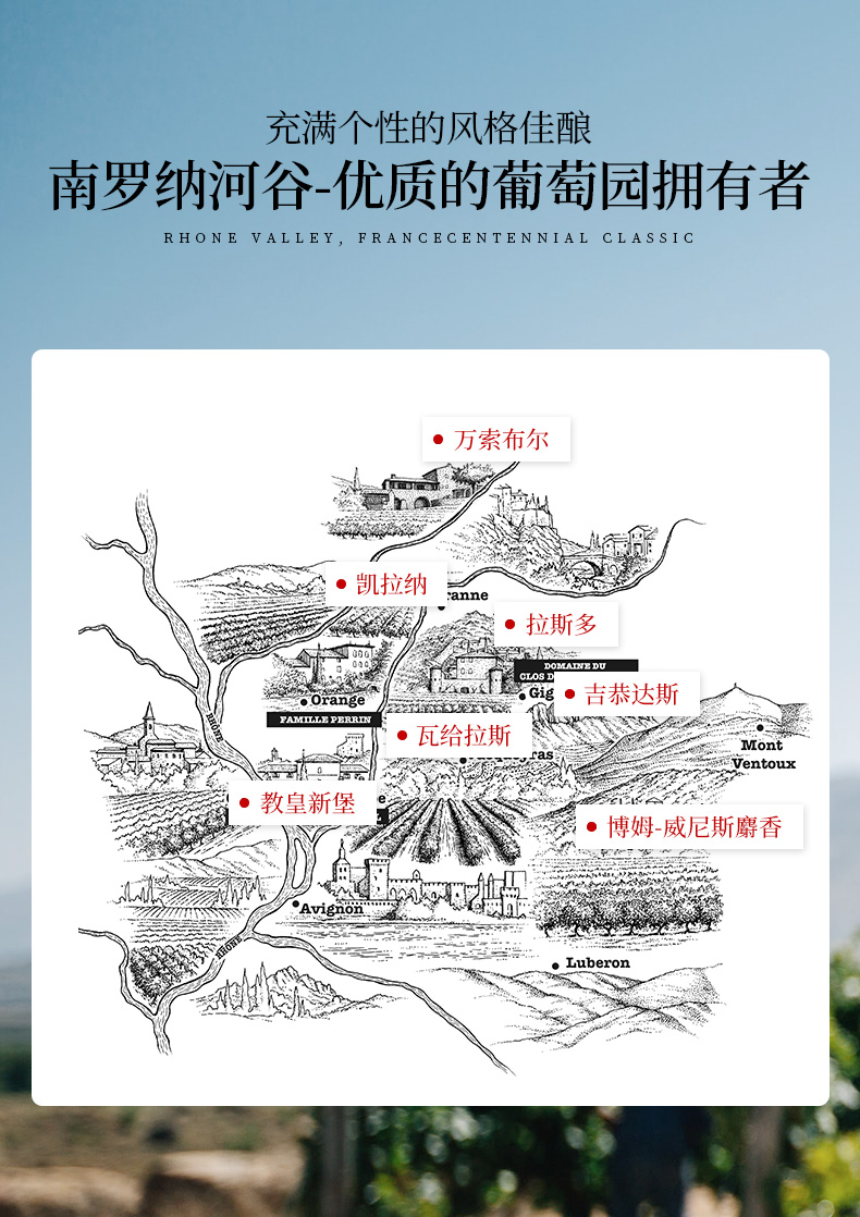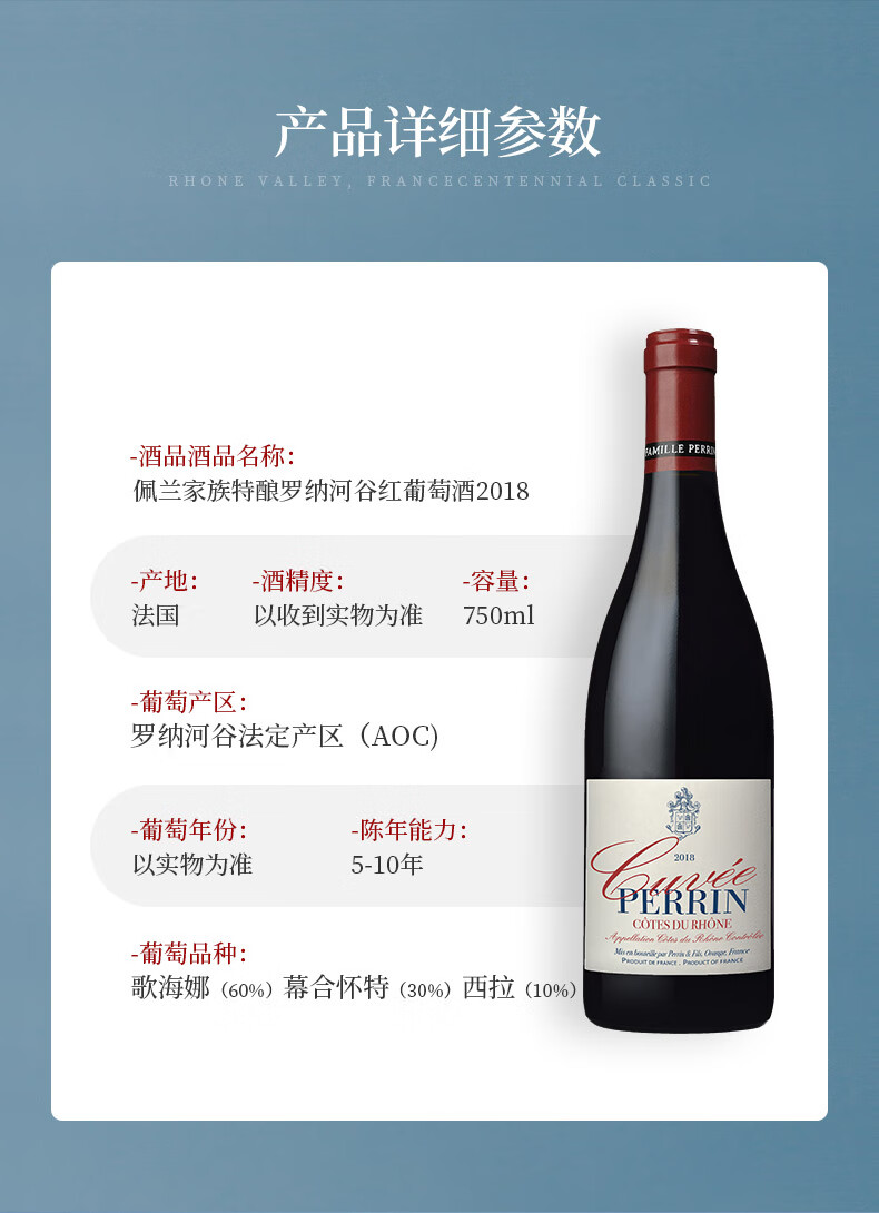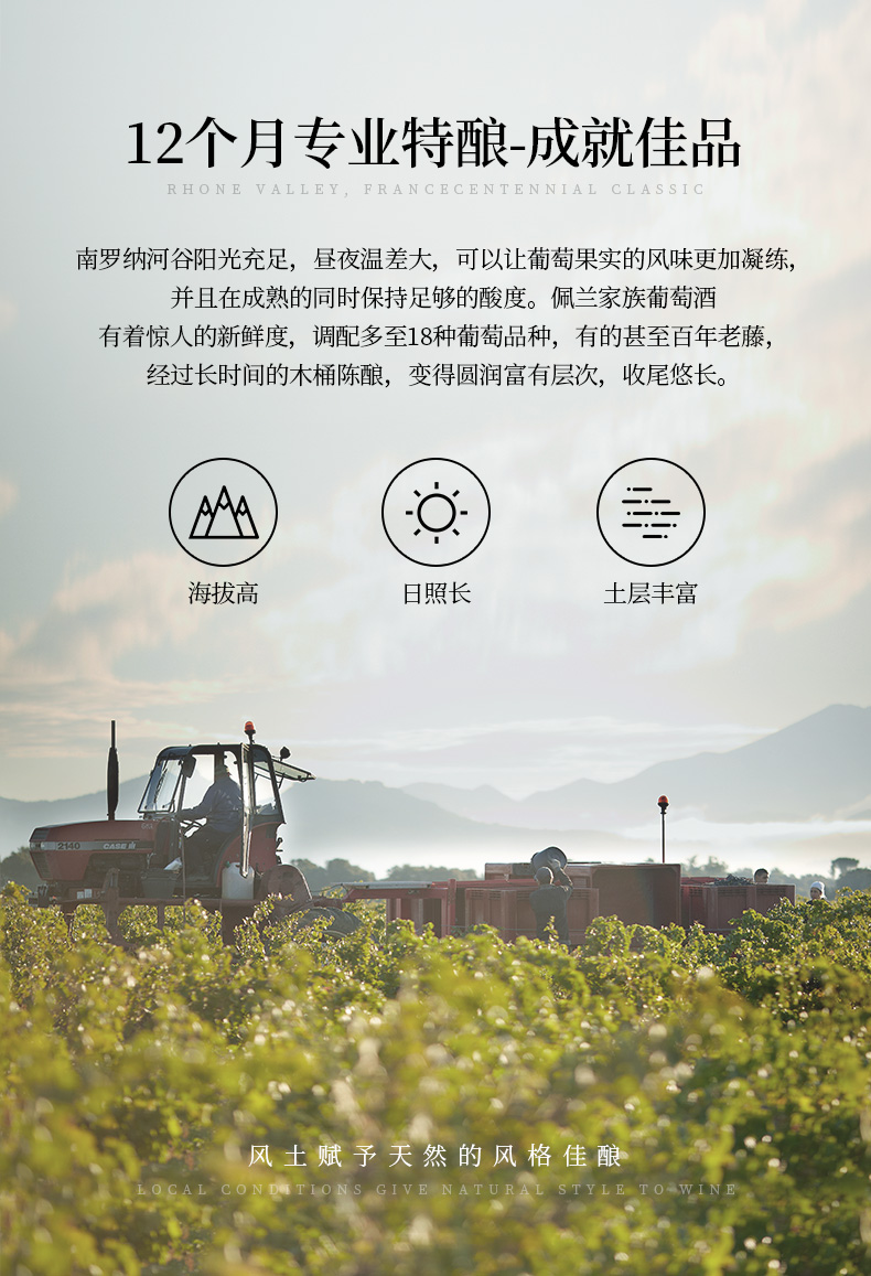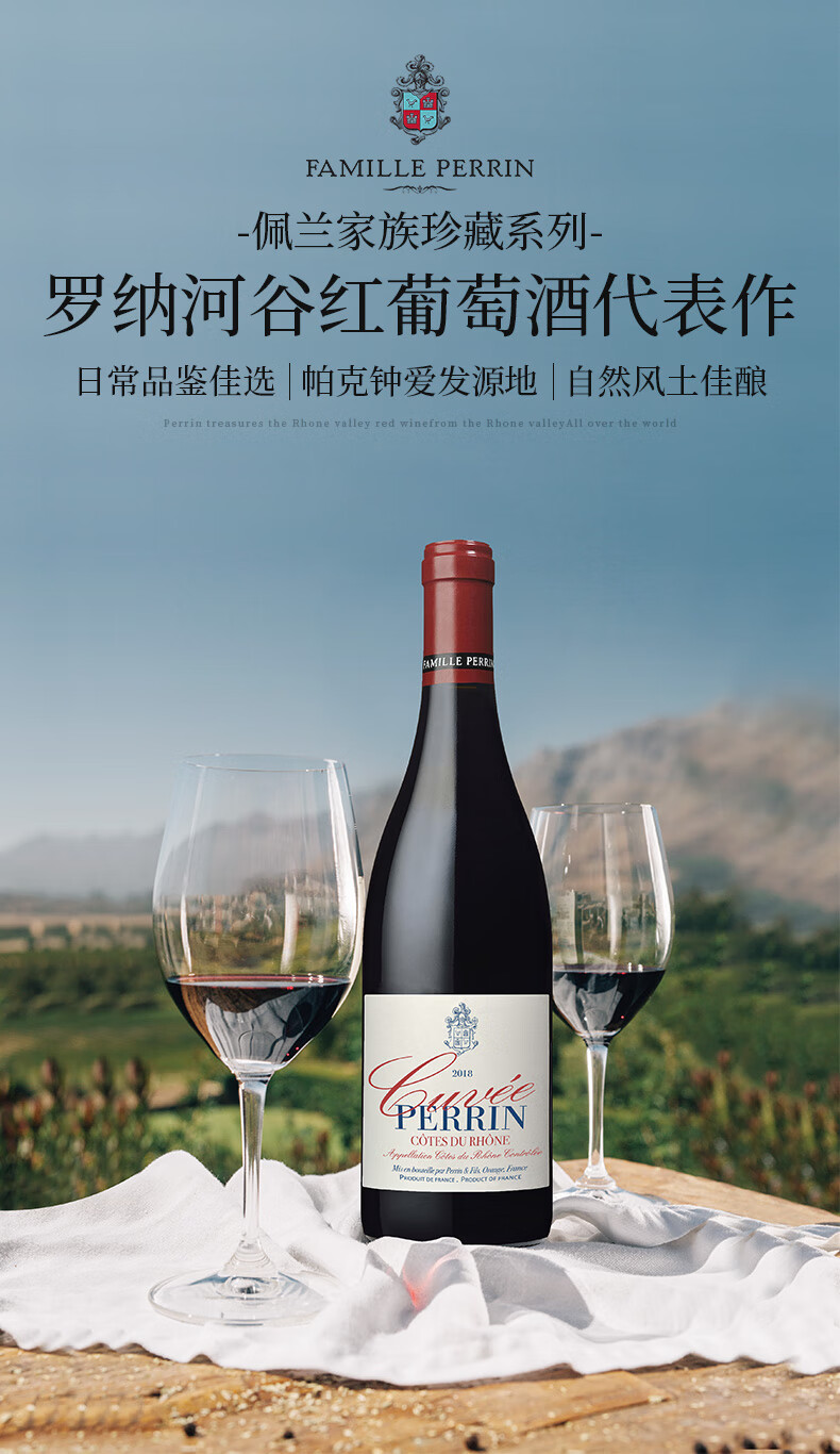 佩兰家族旗舰店 法国原瓶进口红酒 罗纳河谷丘AOC 珍藏特酿系列葡萄酒 干红750ml*2