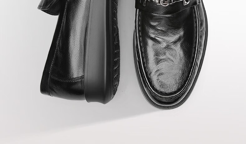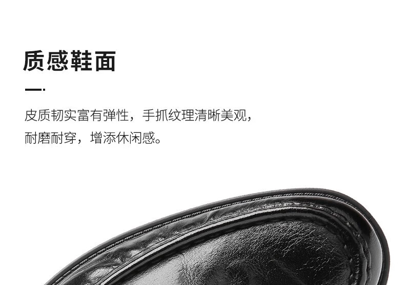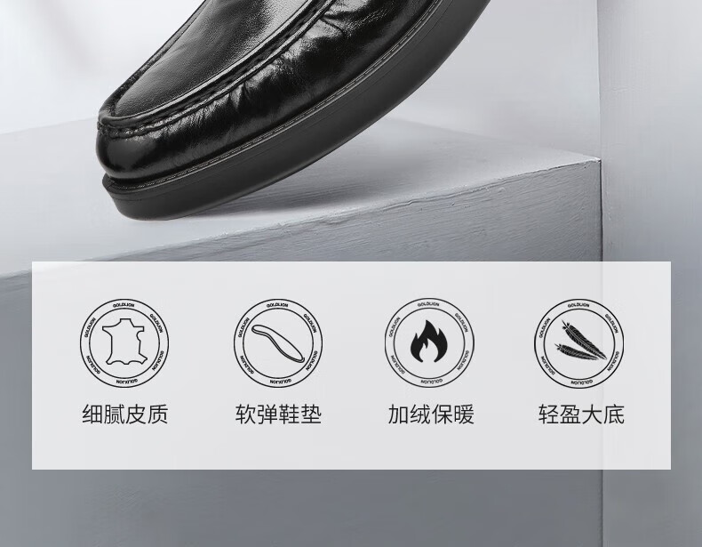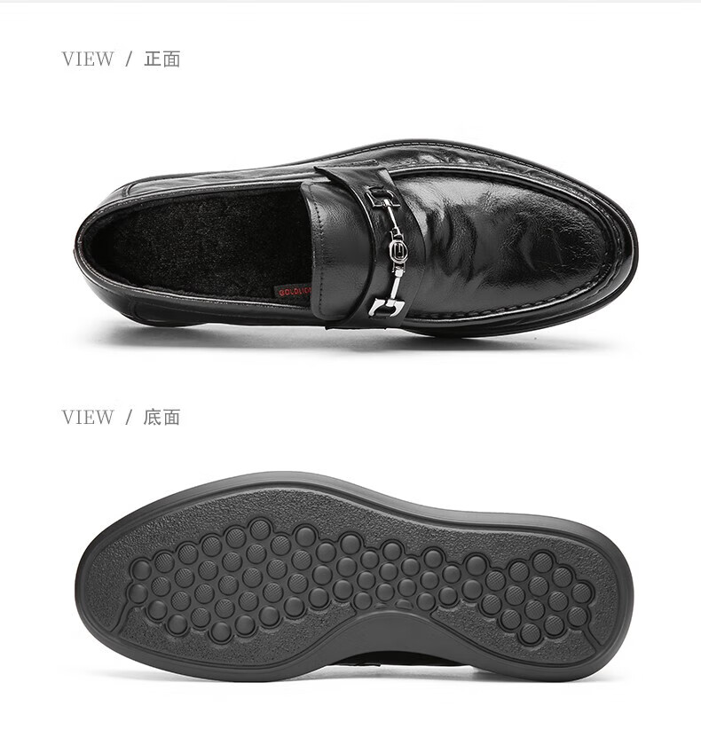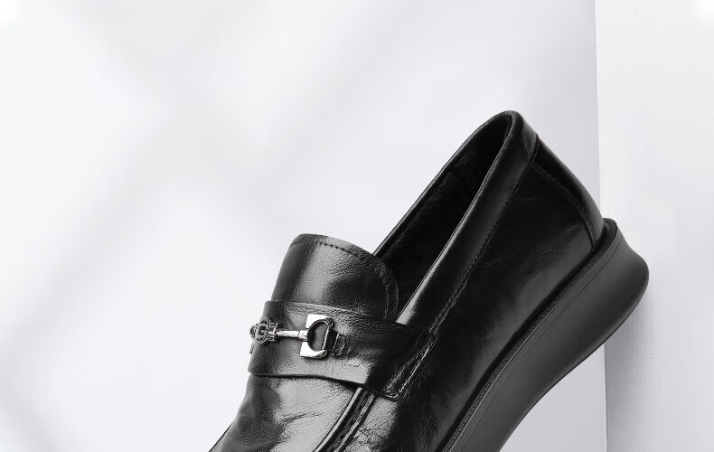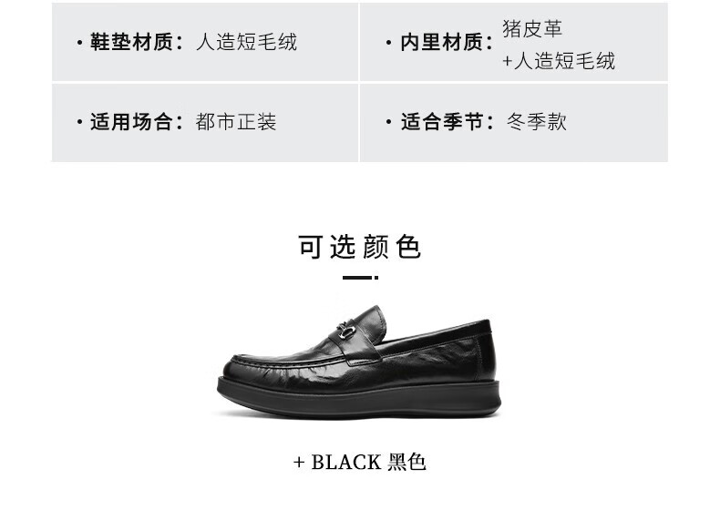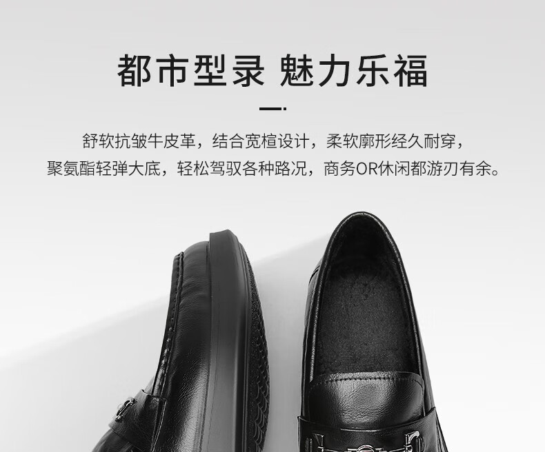 金利来(Goldlion)男鞋商务正装鞋男新品加绒休闲皮鞋套脚乐福鞋男一脚蹬厚底皮鞋男 黑色 37