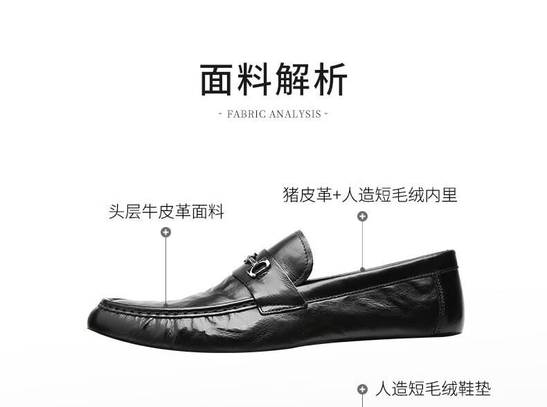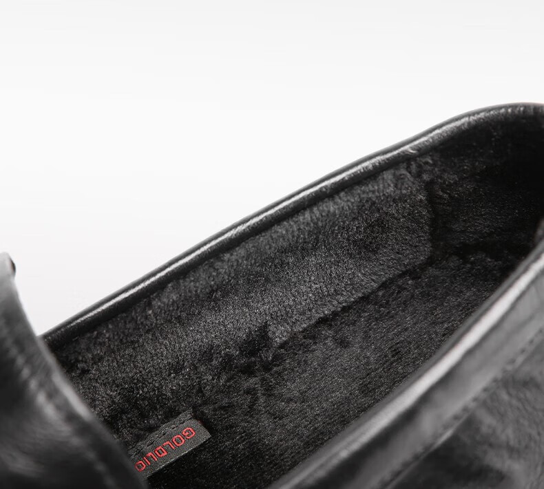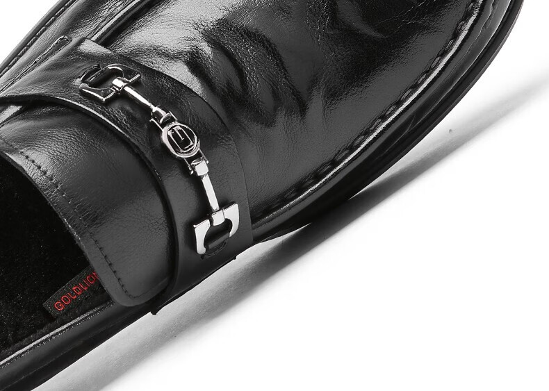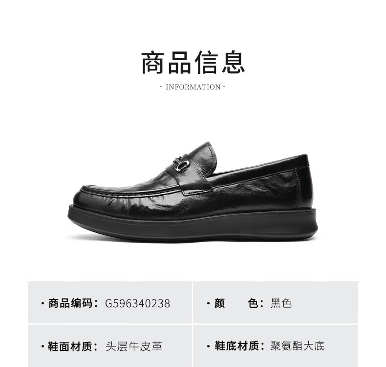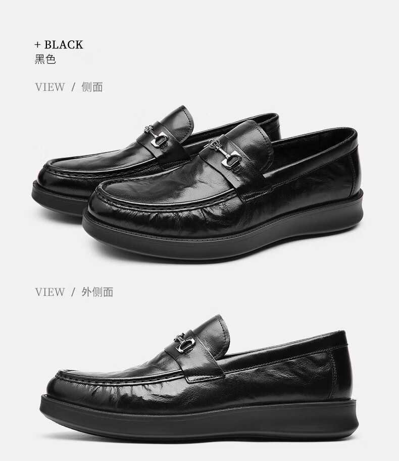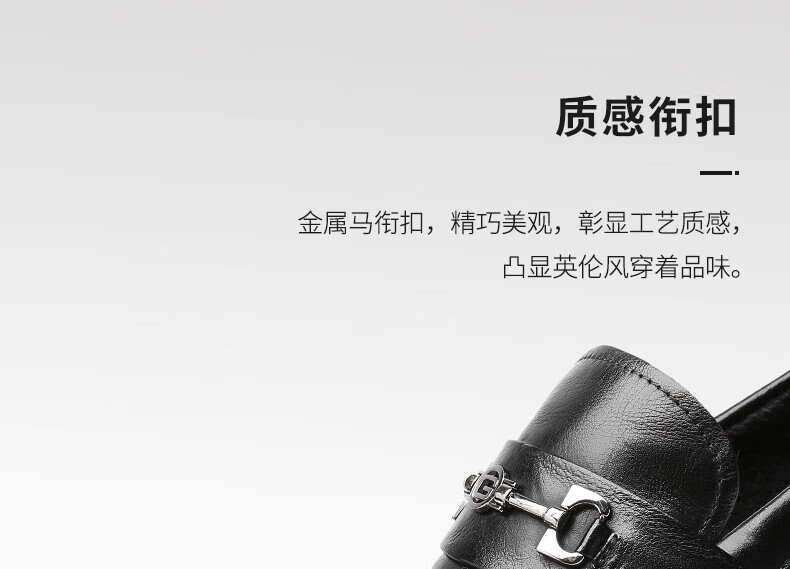 金利来(Goldlion)男鞋商务正装鞋男新品加绒休闲皮鞋套脚乐福鞋男一脚蹬厚底皮鞋男 黑色 37