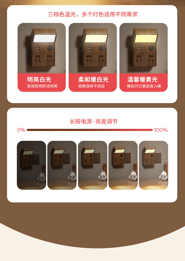 插座usb充电口插座转换器声控小夜灯智能语音控制LED灯宿舍学生 906【智能语音灯】