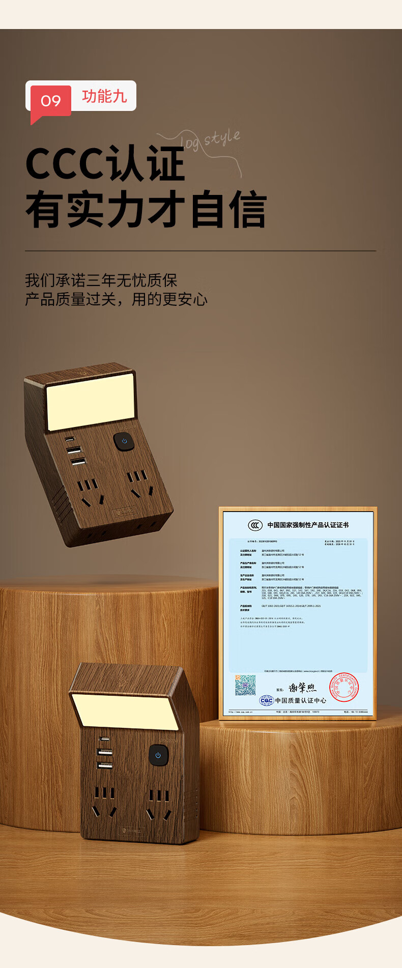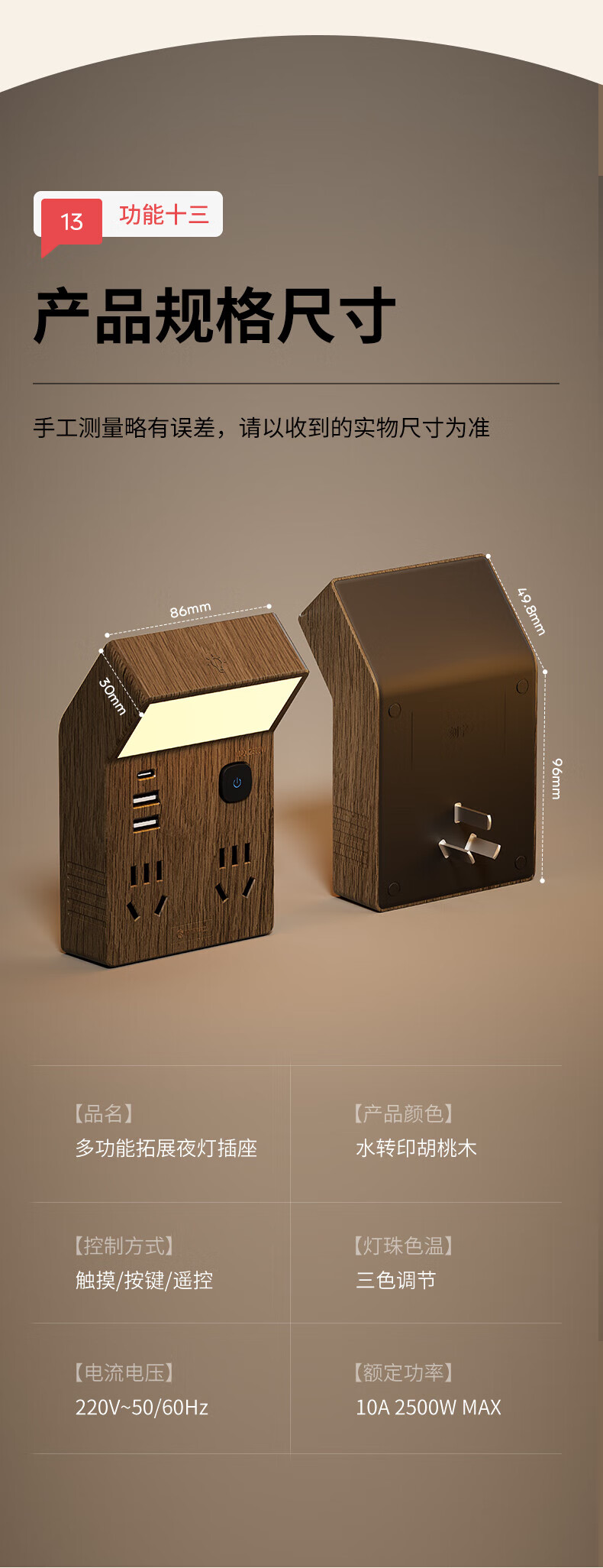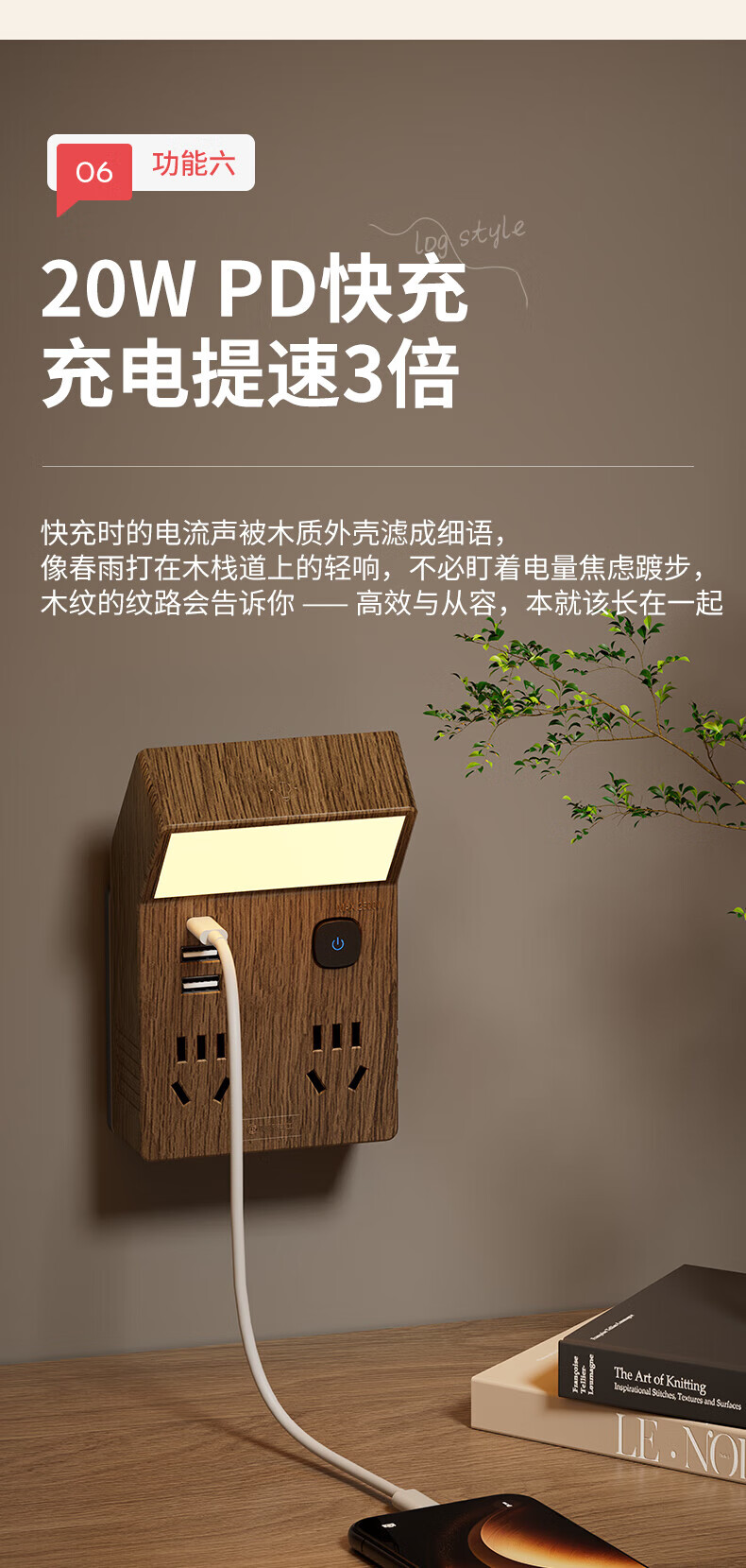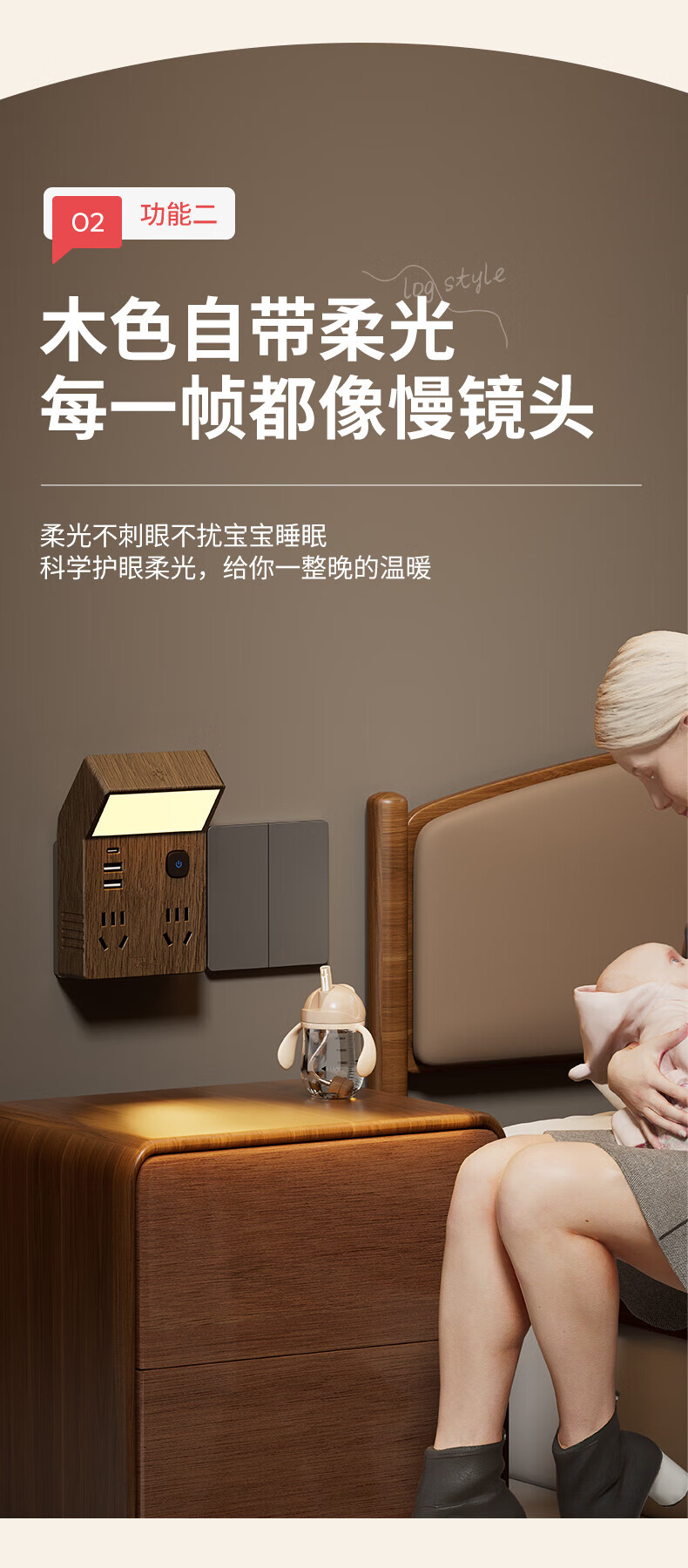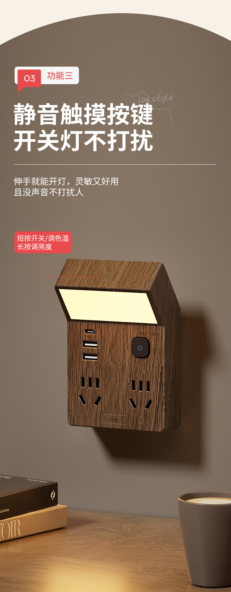 国际电工遥控照明灯床头书桌复古86型一转四多功能扩展插座直插式转换插头 【木纹】一转四带灯扩展插座
