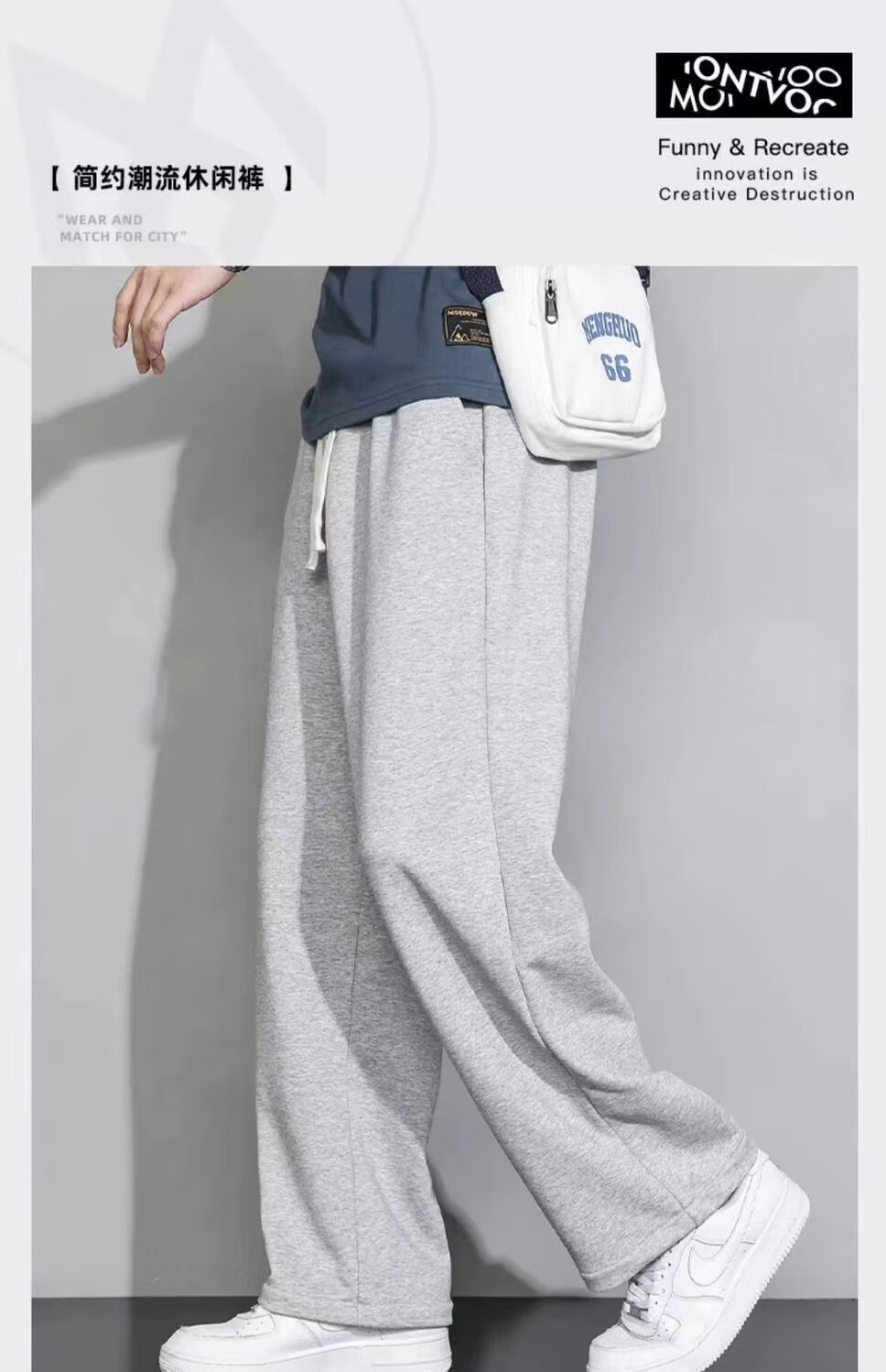 燠阳秋季2025新款直筒宽松卫裤男韩版时尚运动裤子简约百搭垂感休闲裤 【春秋款】直筒灰色 2XL (适合130-145斤)