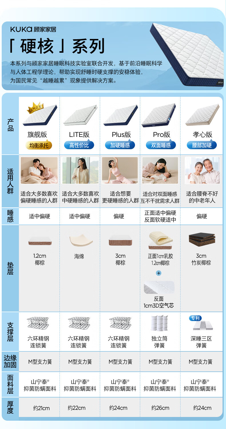 顾家家居京东家具防螨弹簧棕榈硬床垫宝石蓝席梦思M0083【京仓闪发】1.8*2