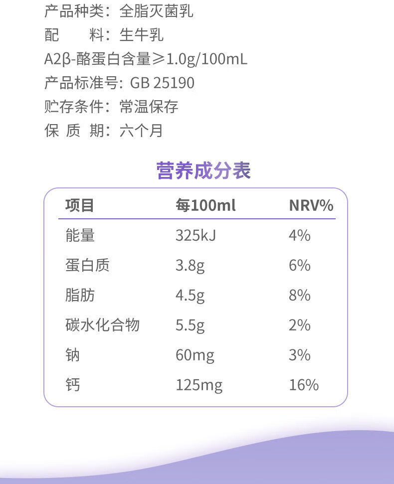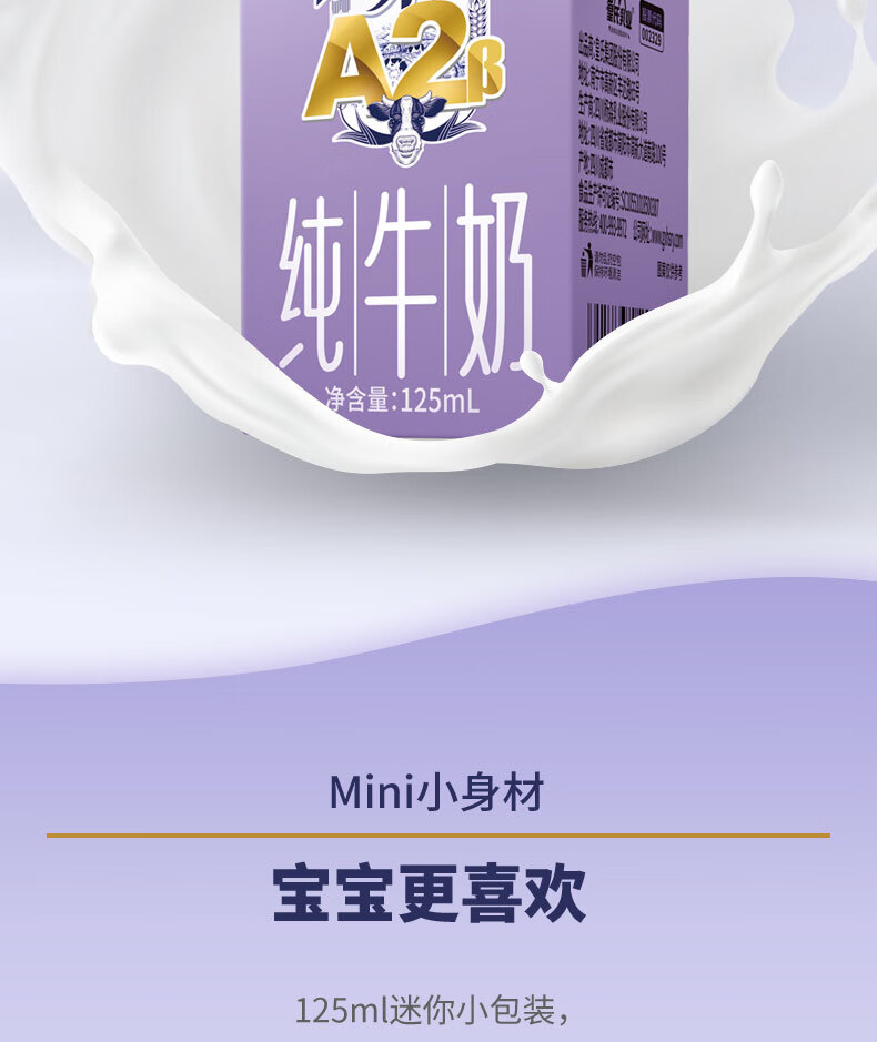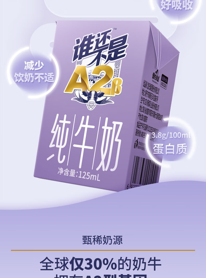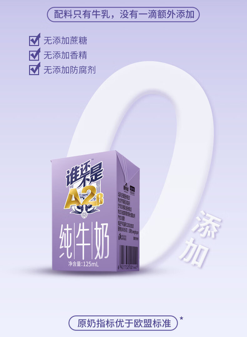 一只水牛皇氏A2β-酪蛋白儿童纯牛奶易吸收早餐奶 【125ml*20盒】A2纯牛奶
