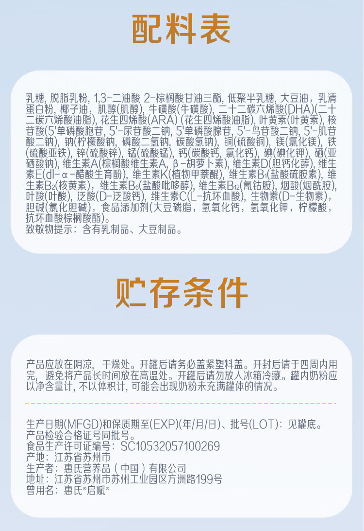 惠氏官方授权】启赋蓝钻婴幼儿配方奶粉国产加量装2段850g6-12月 6罐