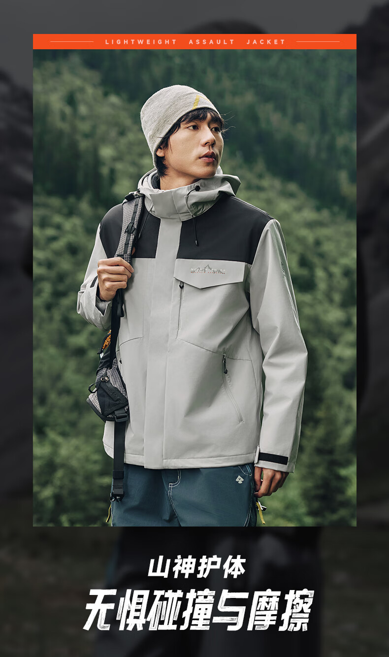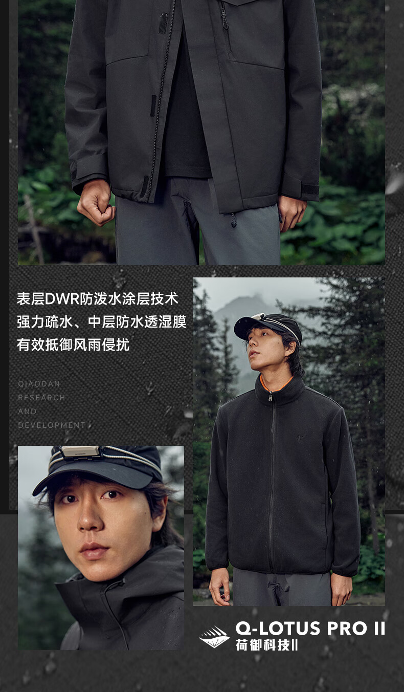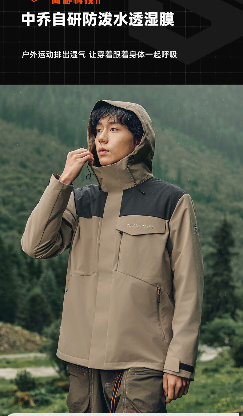 乔丹山神三合一外套男风衣冬季保暖防泼水防风加绒运动户外冲锋夹克 玉髓绿/黑色 5XL