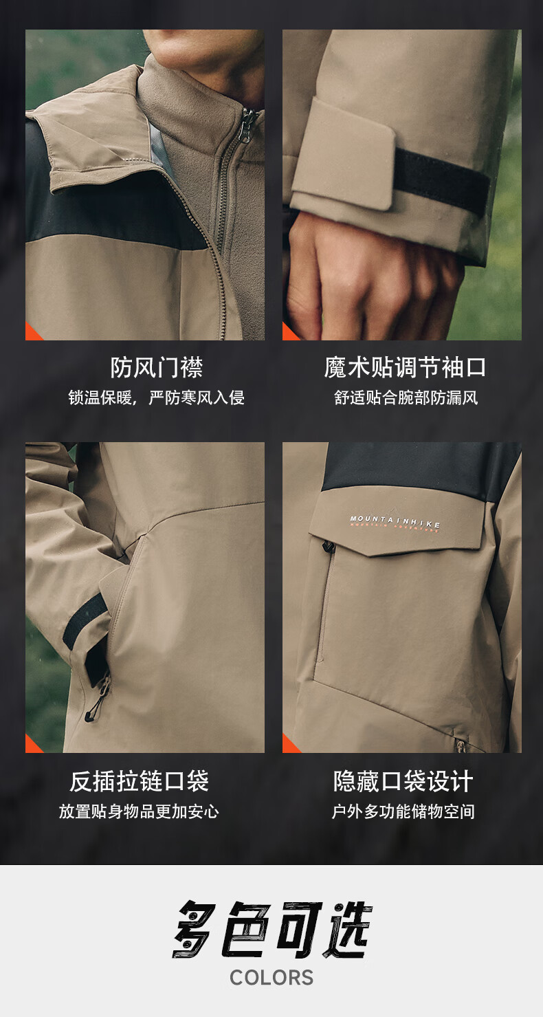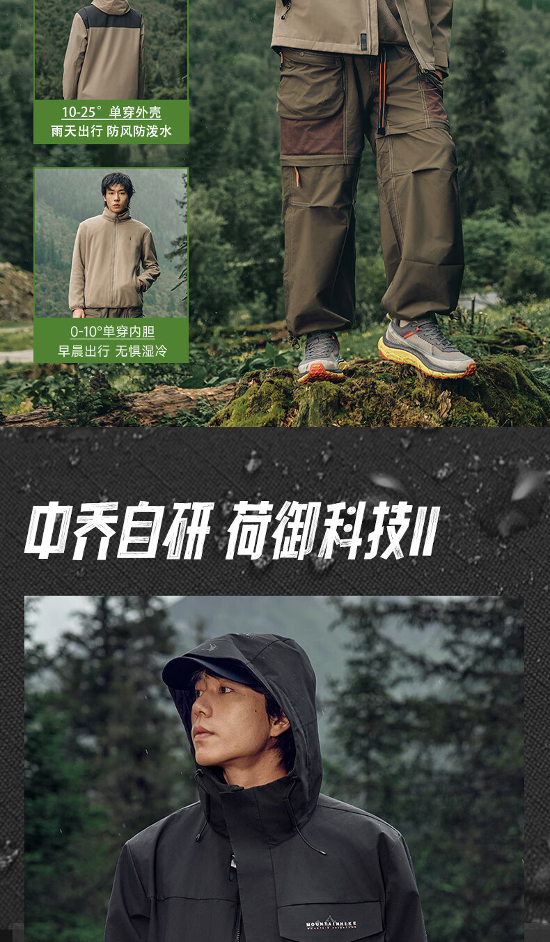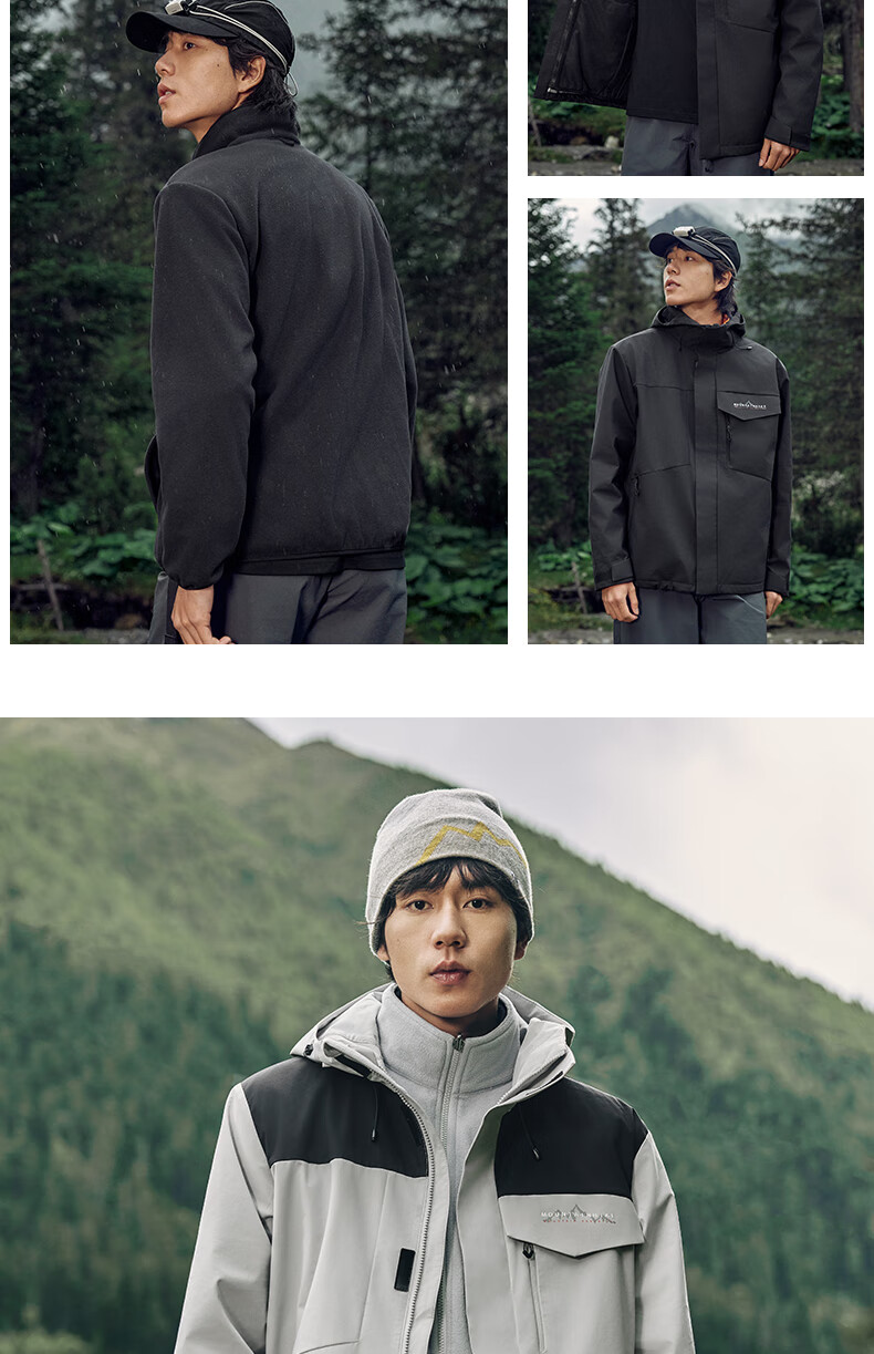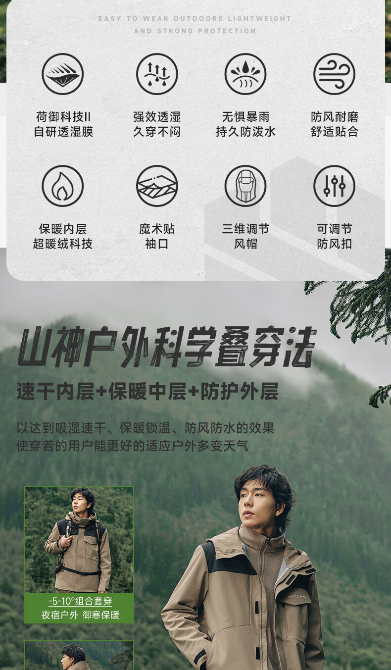 乔丹山神三合一外套男风衣冬季保暖防泼水防风加绒运动户外冲锋夹克 玉髓绿/黑色 5XL