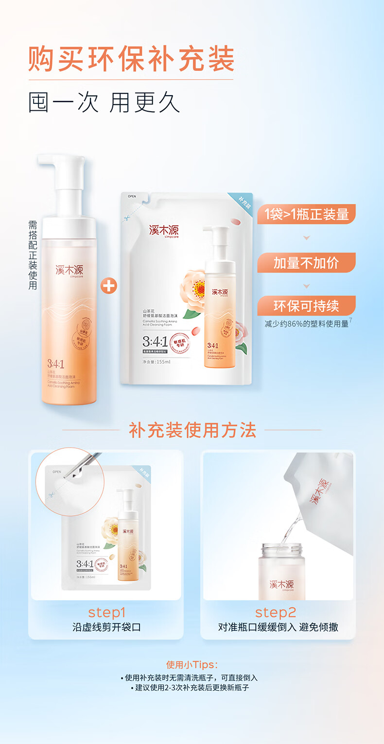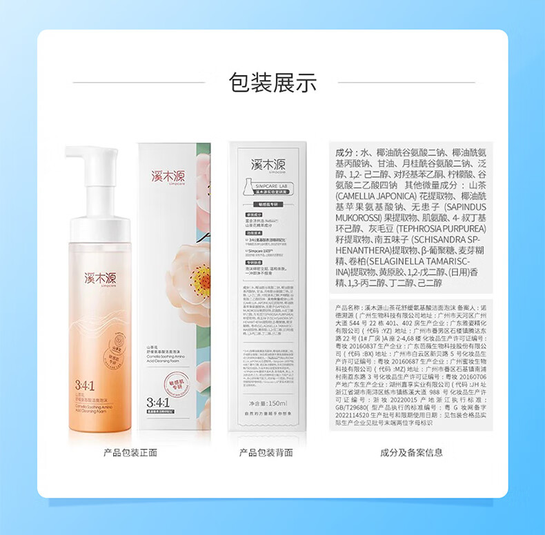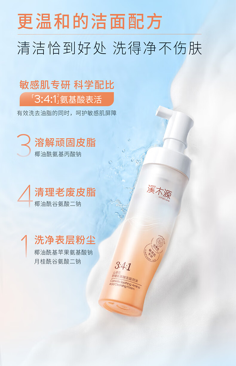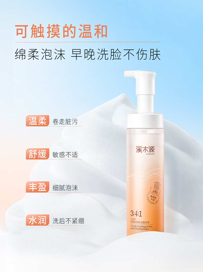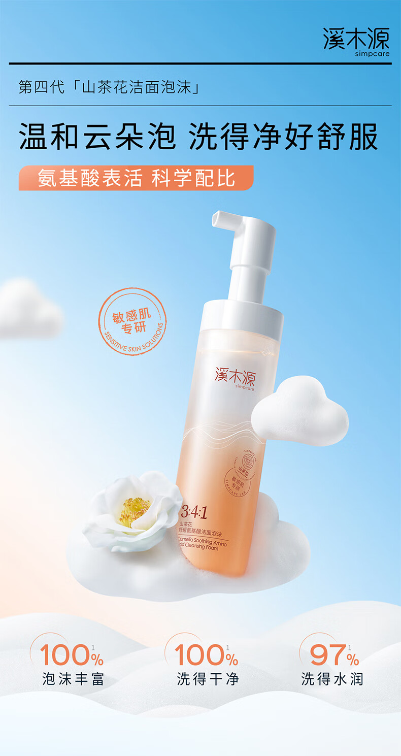 溪木源山茶花氨基酸洁面泡沫慕斯绵密舒缓敏感肌温和深度清洁洗面奶礼物 【TOP1王牌洁面】洁面泡沫150ml