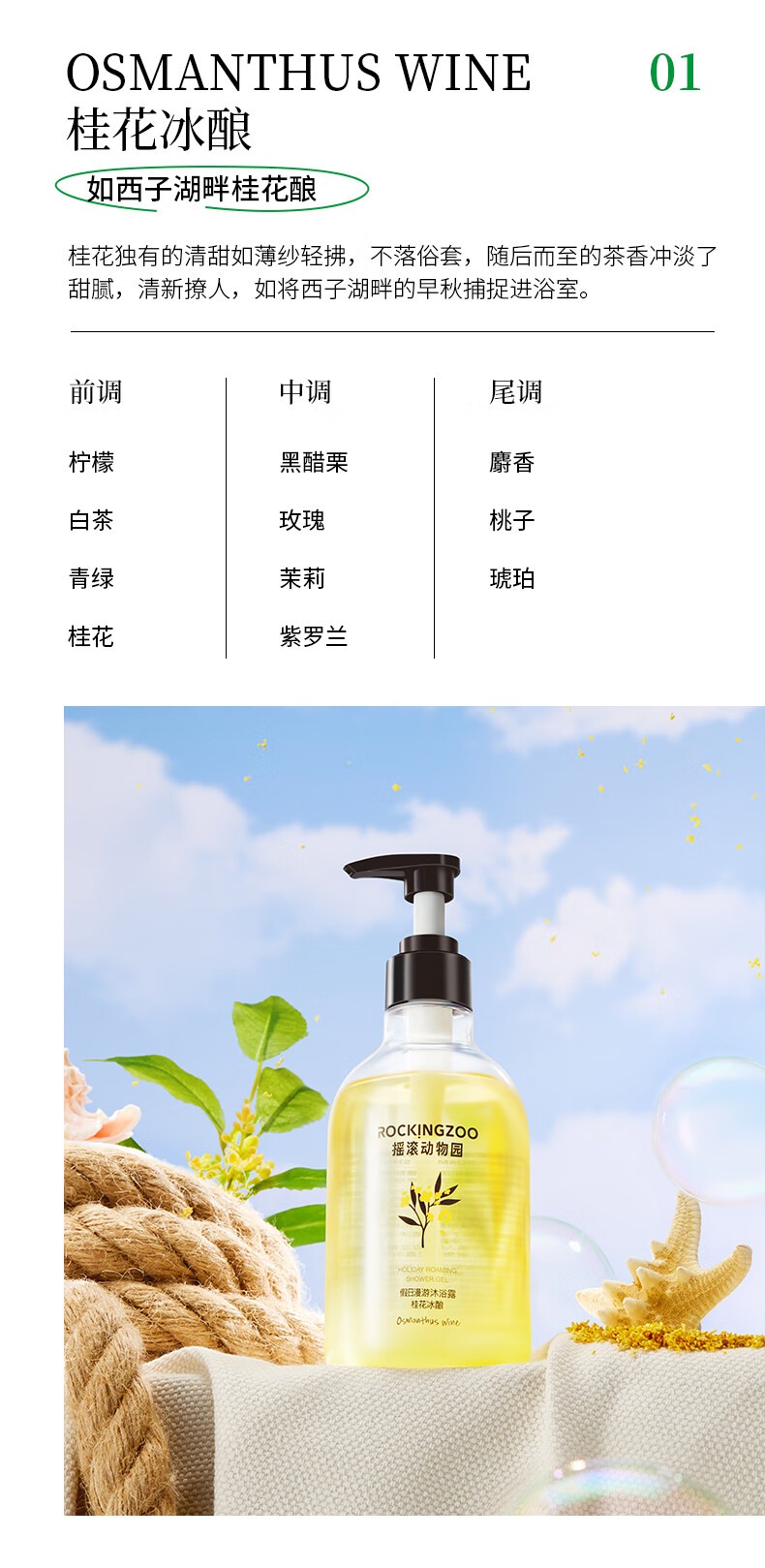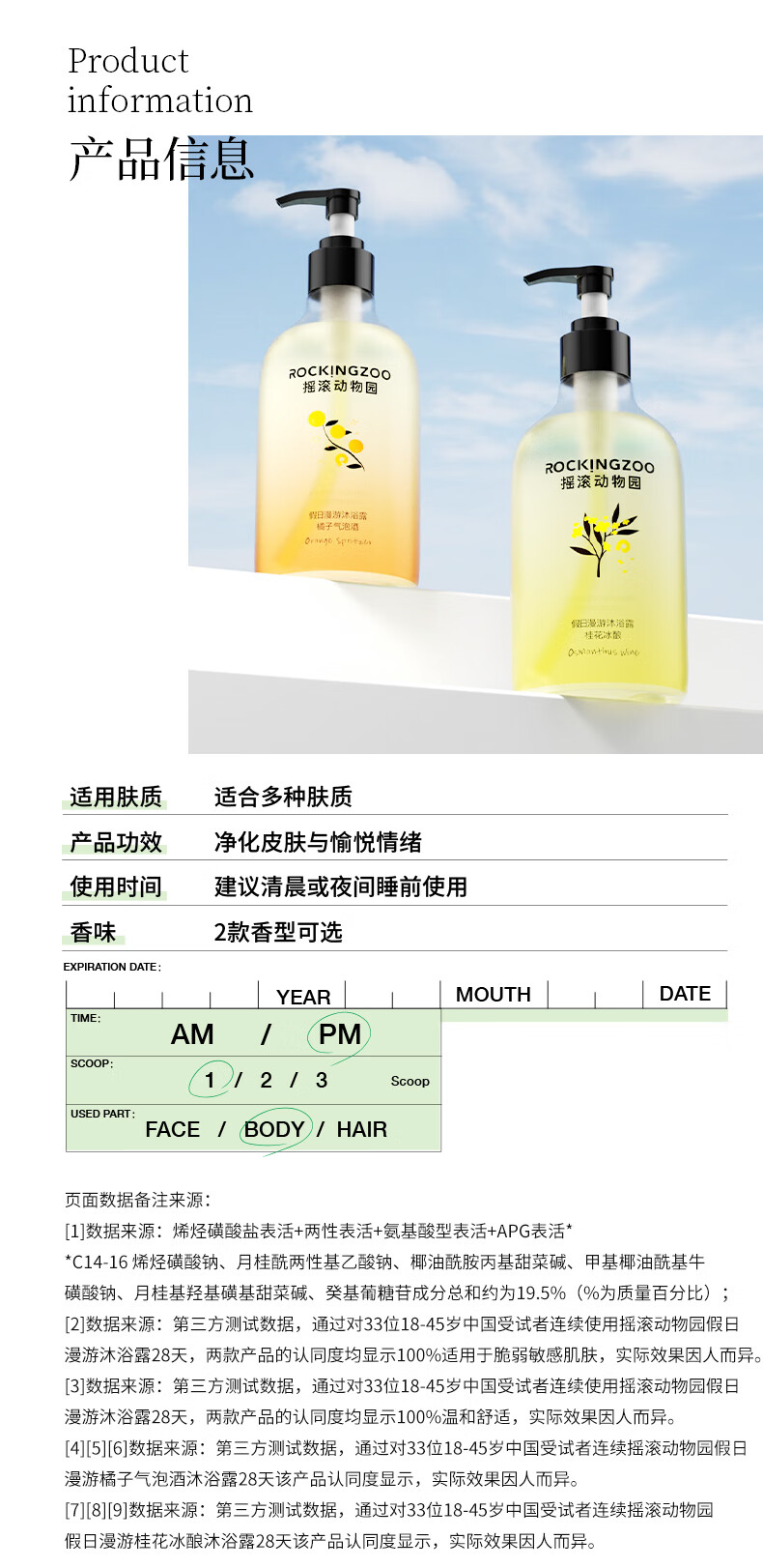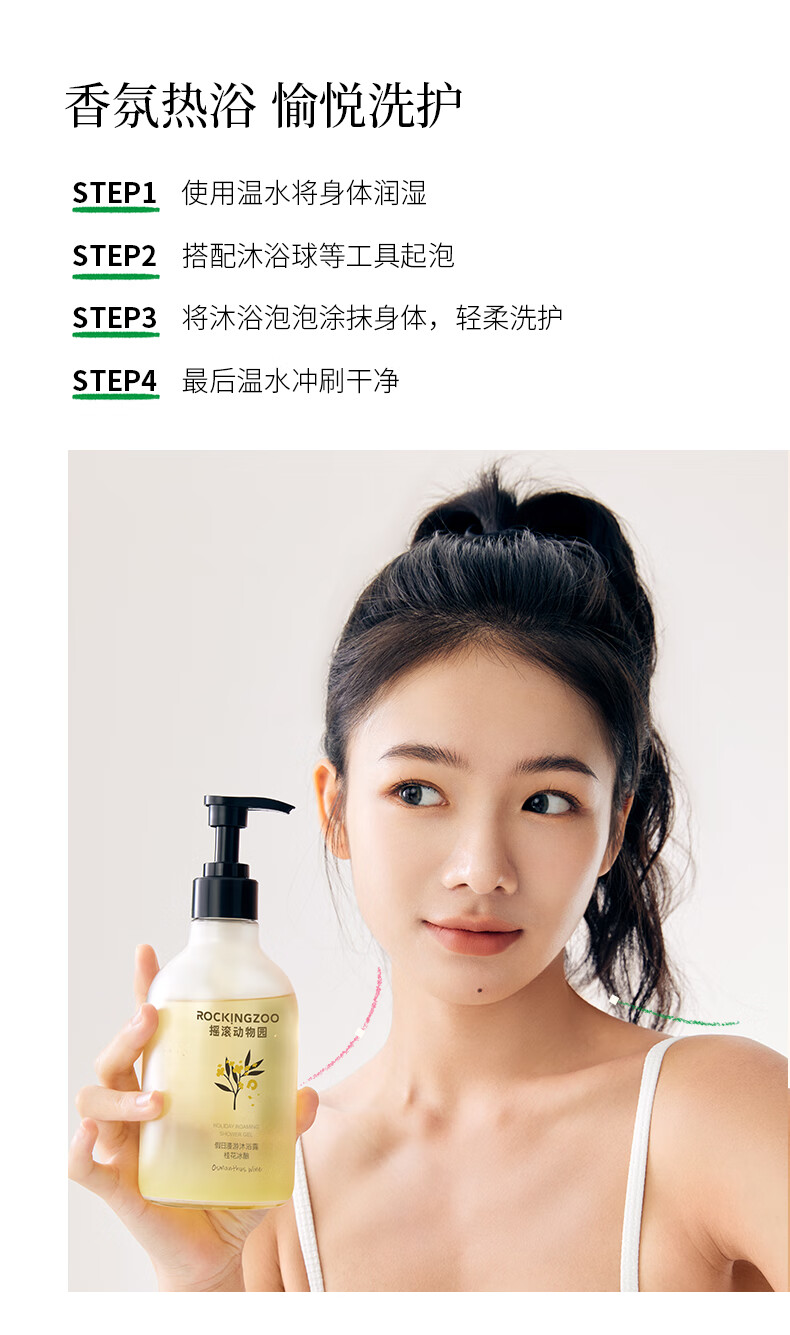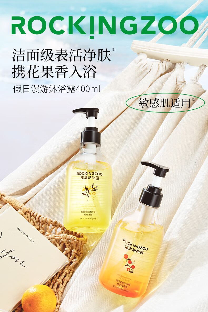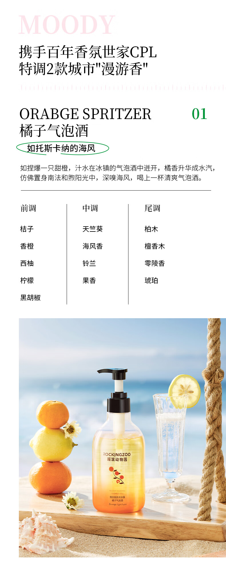 摇滚动物园夏季清洁保湿香氛沐浴液易洗留香大容量女男 假日漫游沐浴露400ml 橘子气泡酒沐浴露 400ml 1瓶