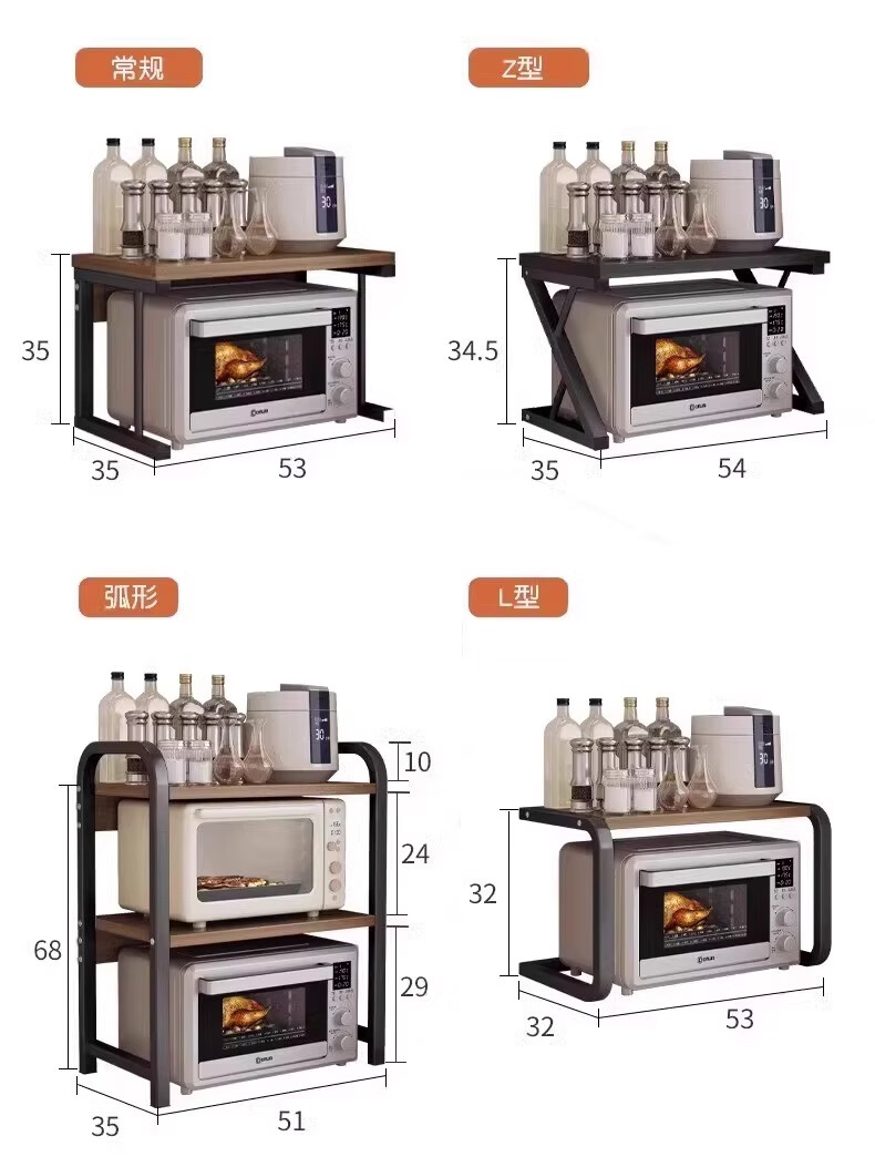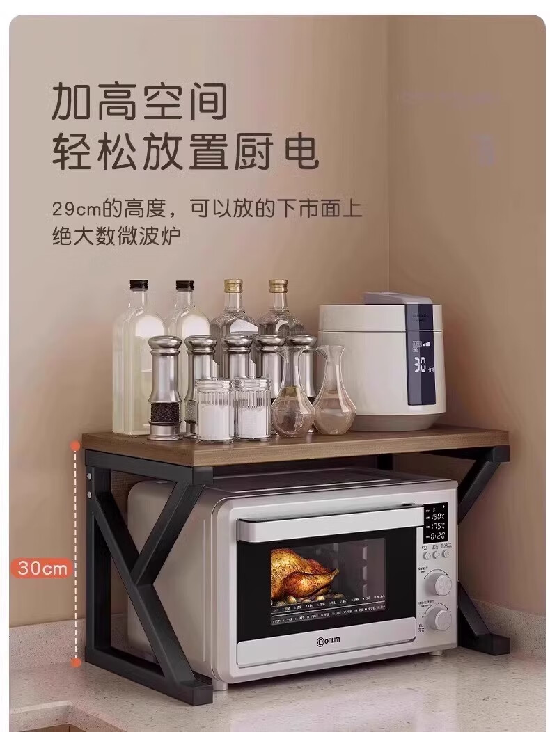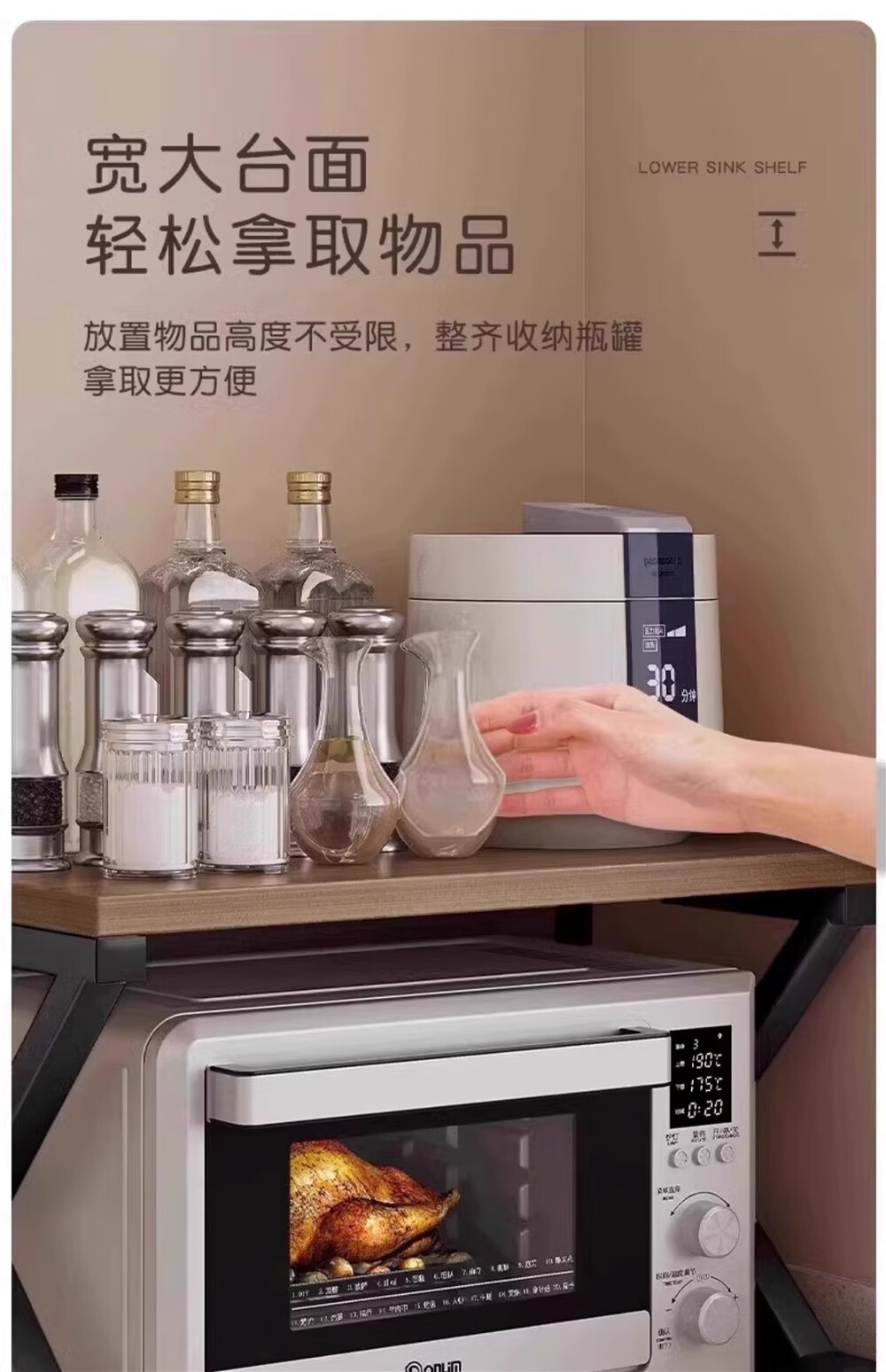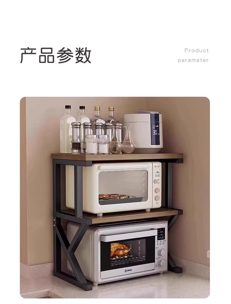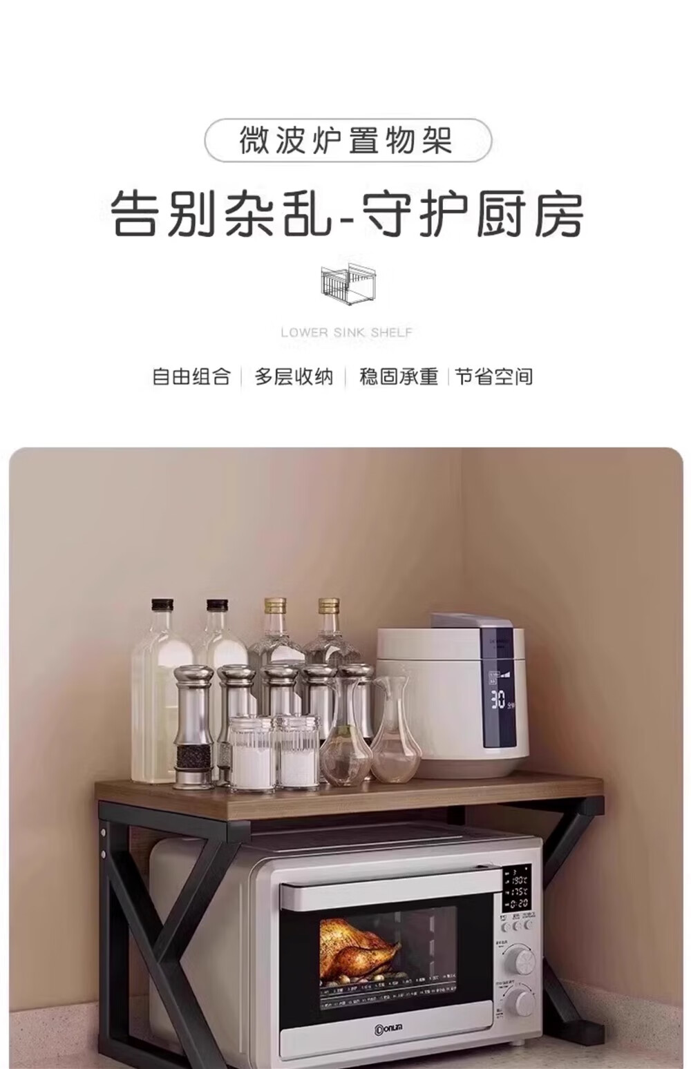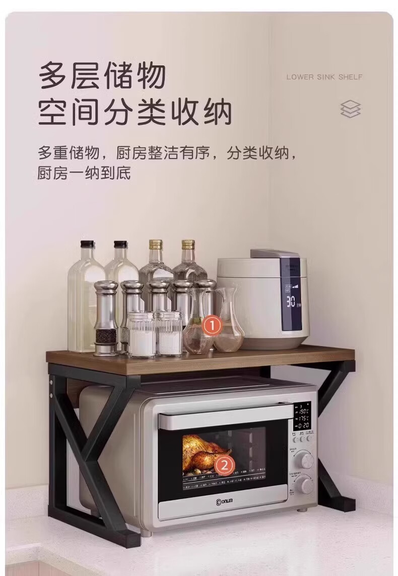 馨婺家微波炉置物架厨房多功能台面烤箱架子家用电饭煲专用多层收纳支架 【双层】常规款L型-拉丝黑橡木