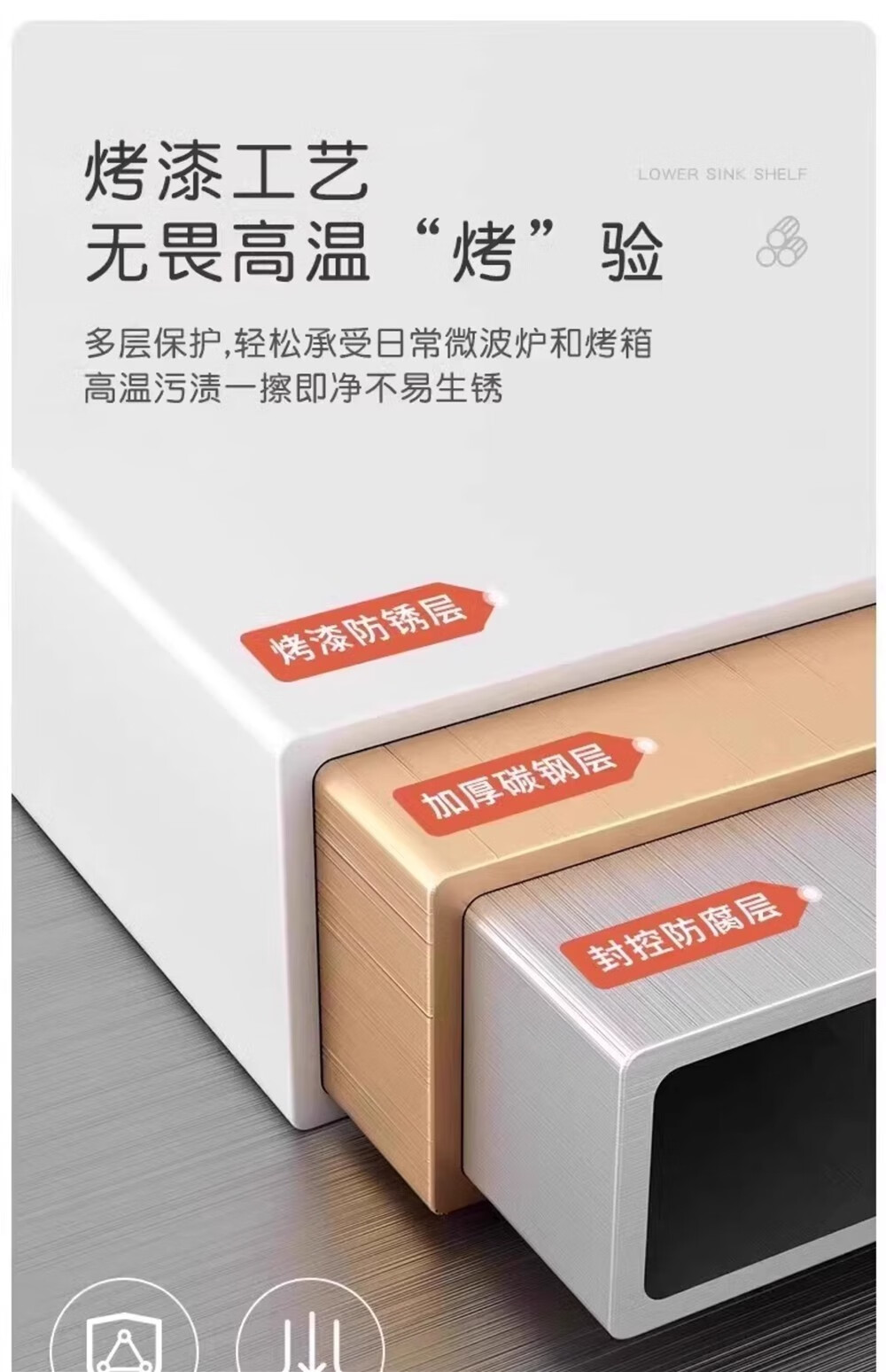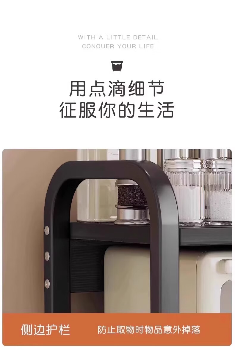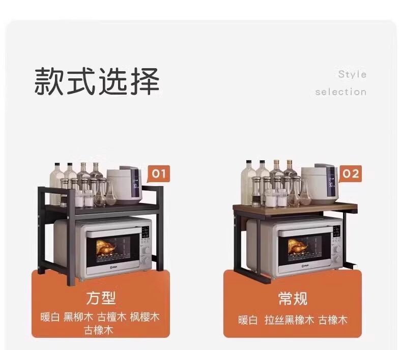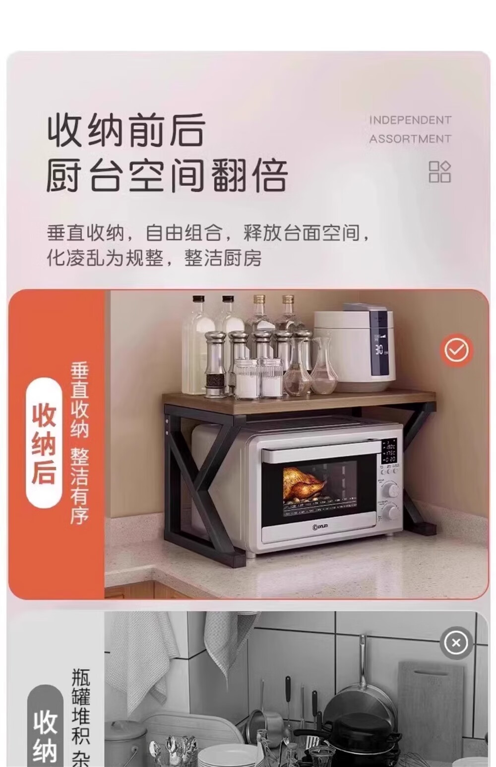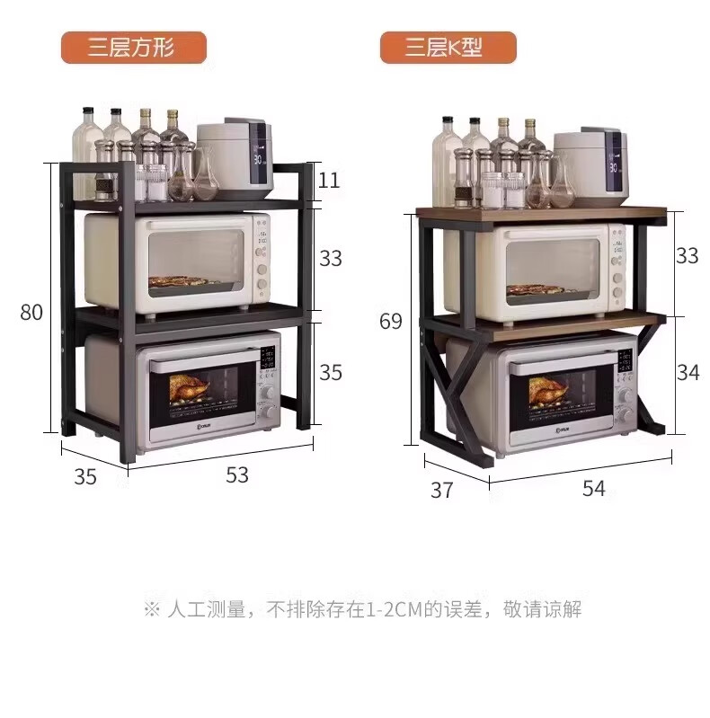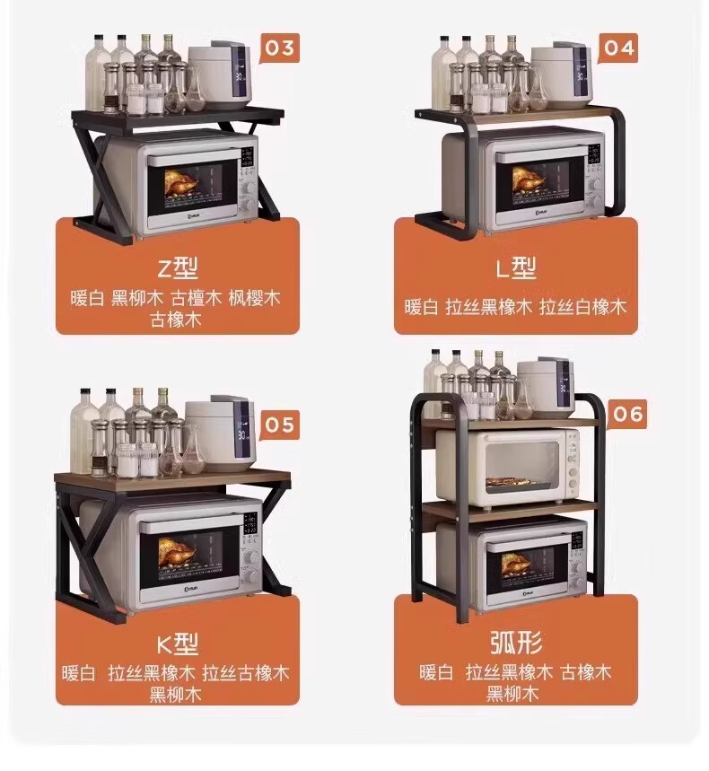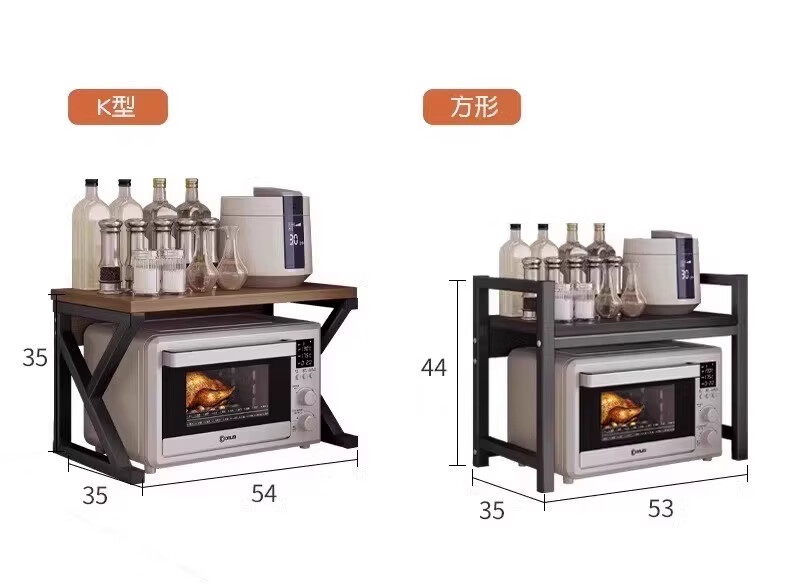馨婺家微波炉置物架厨房多功能台面烤箱架子家用电饭煲专用多层收纳支架 【双层】常规款L型-拉丝黑橡木