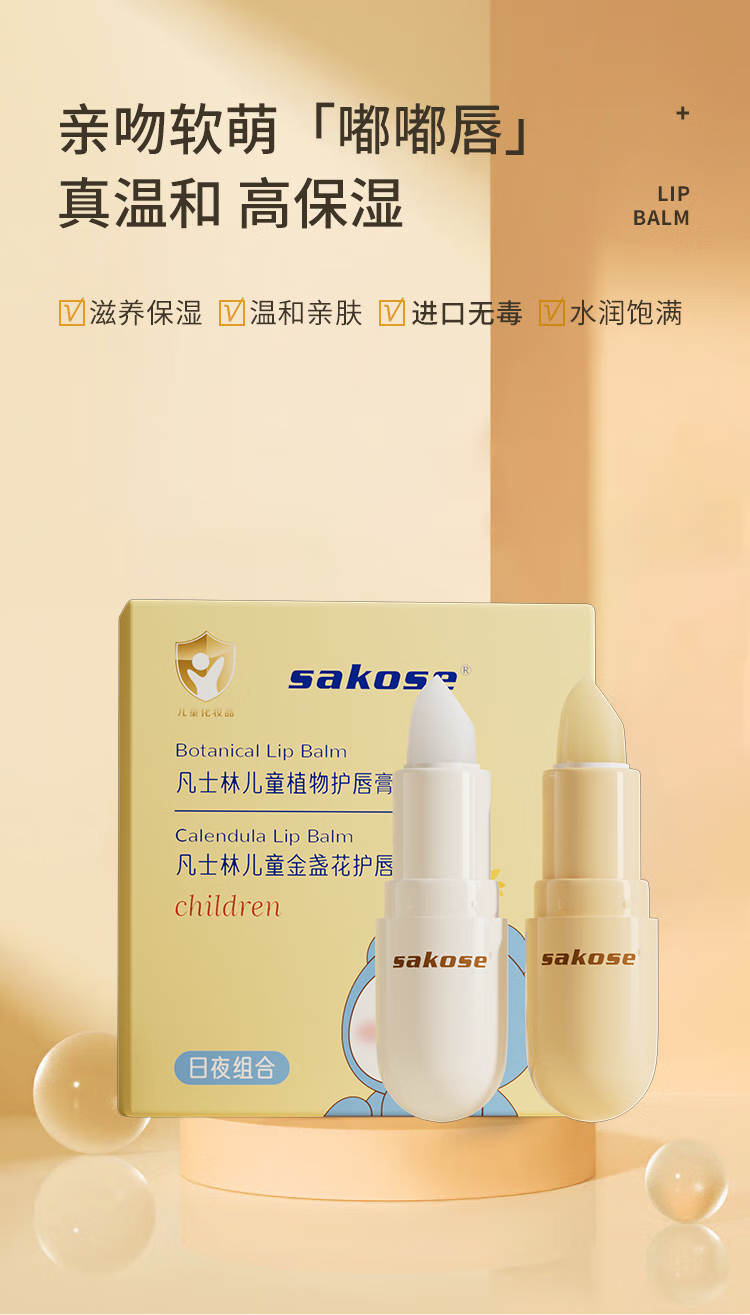 sakose凡士林儿童植物润唇膏两只装共4g四季护唇保湿有效期至2026.11.19