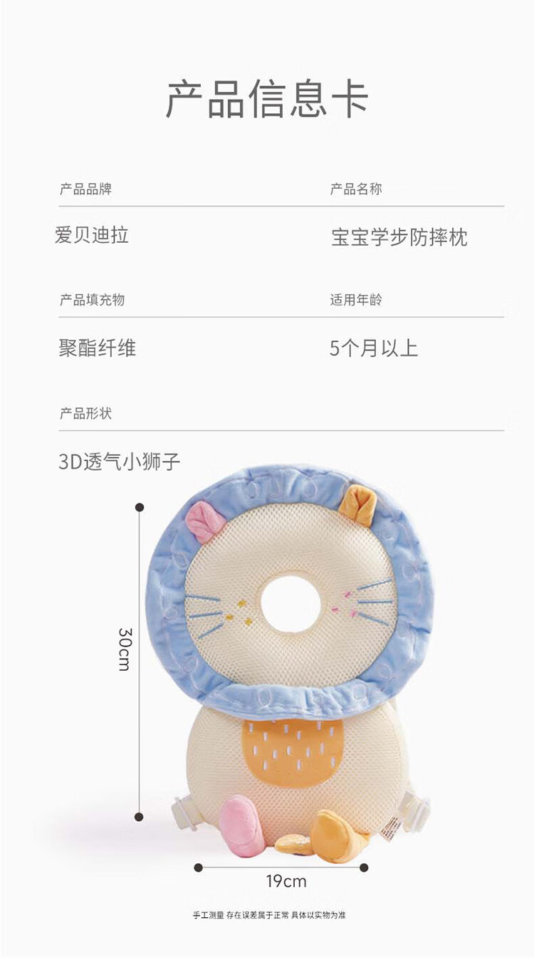 爱贝迪拉 宝宝防摔神器透气婴儿护头防摔枕儿童学步防撞保护垫元气小狮子