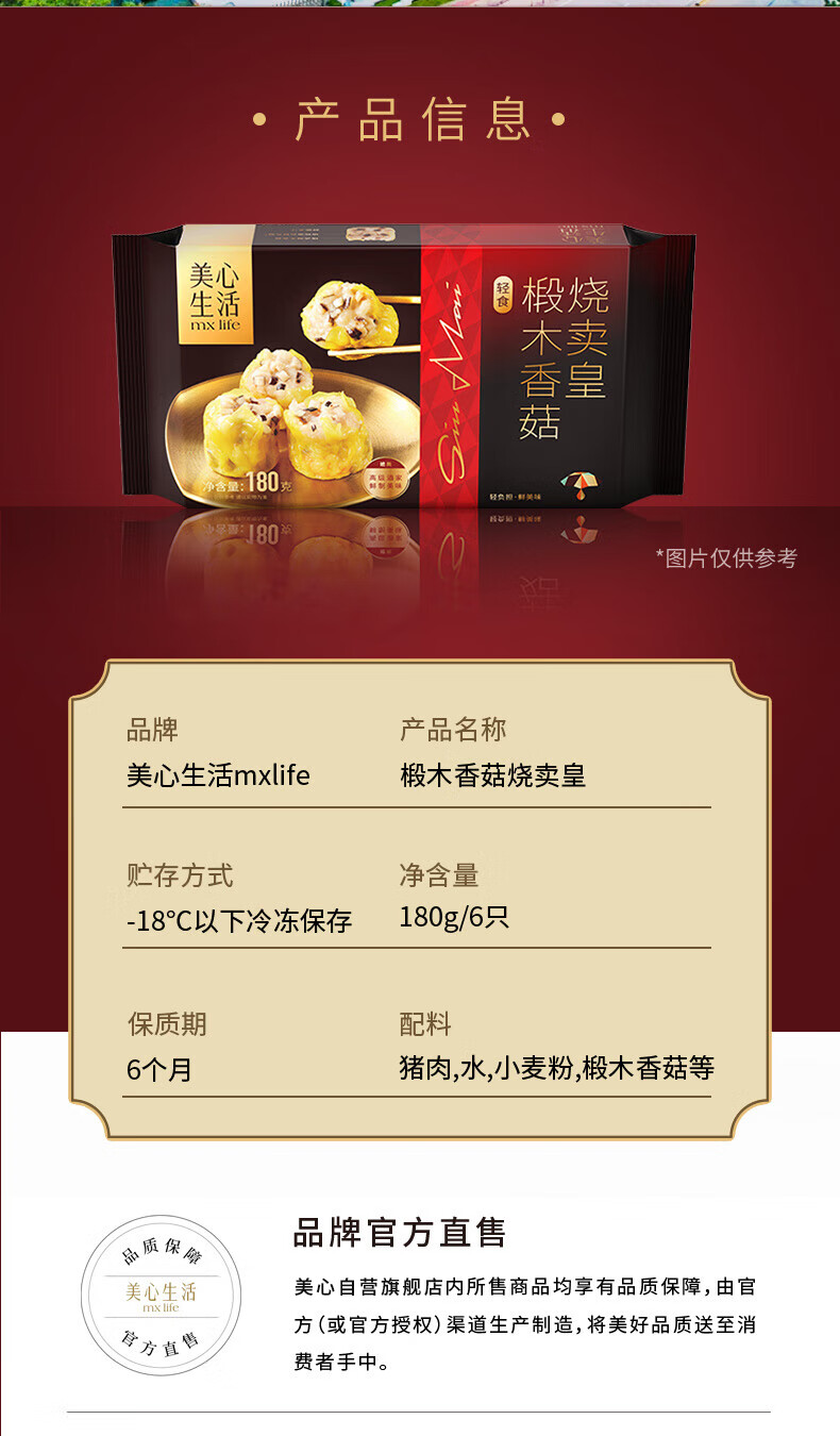 美心生活(MX Life)椴木香菇烧卖皇180g/6只装 粤式美味早八早餐 手工制作面点
