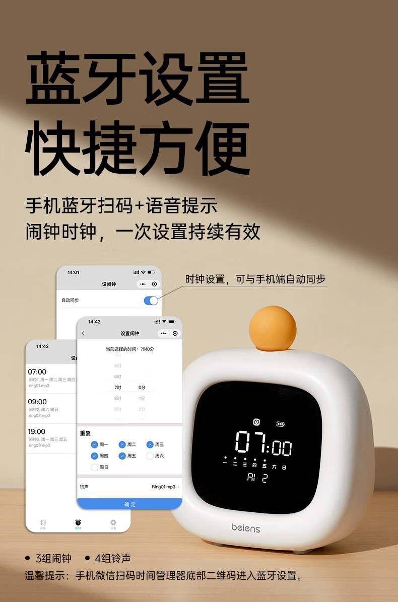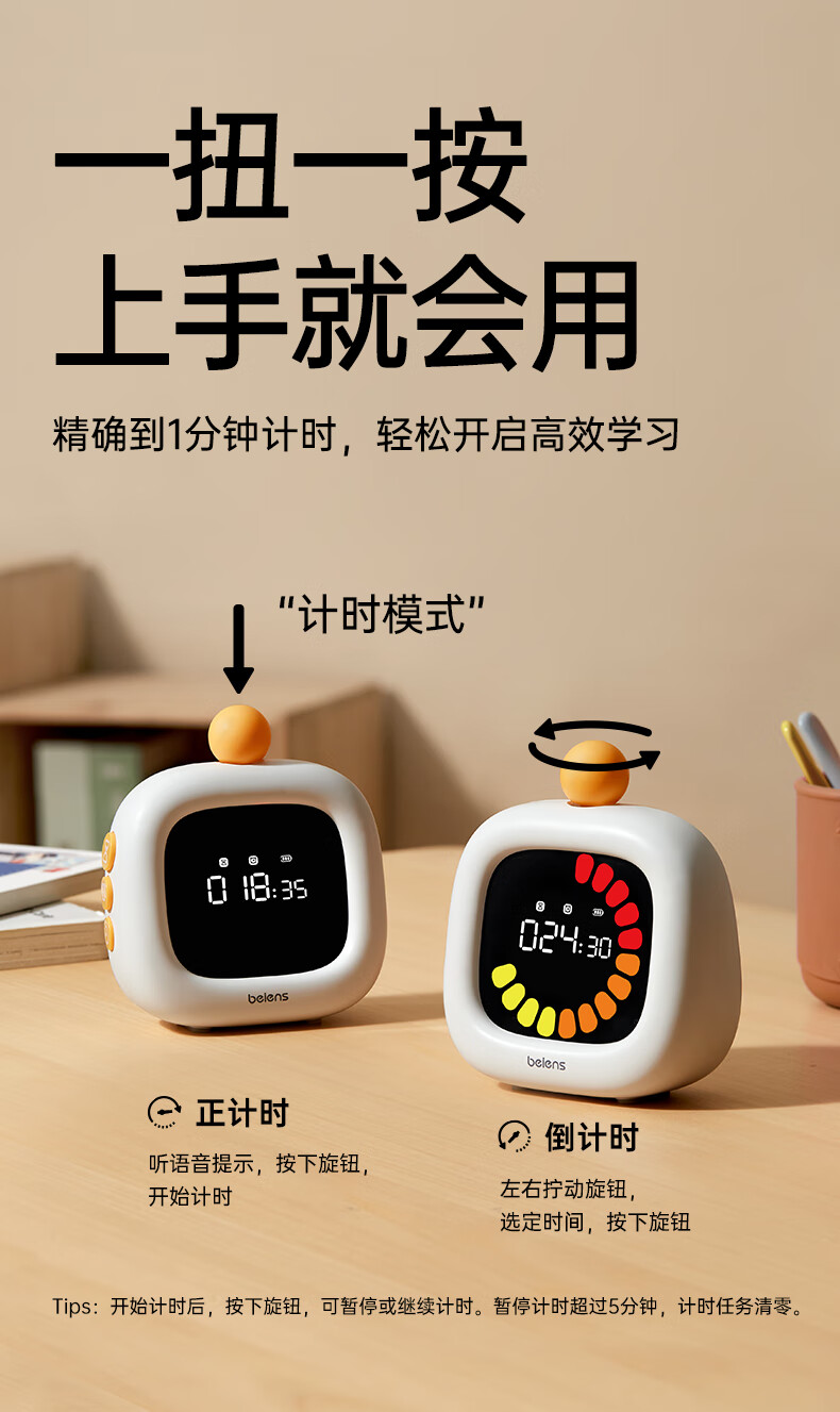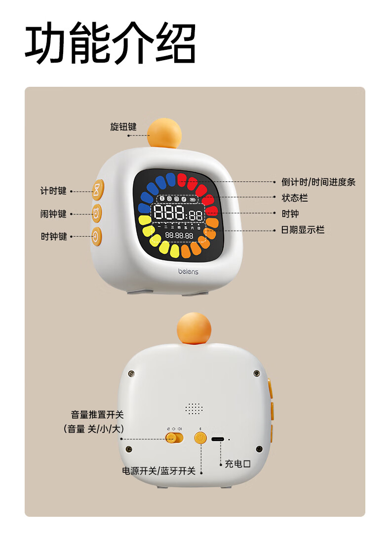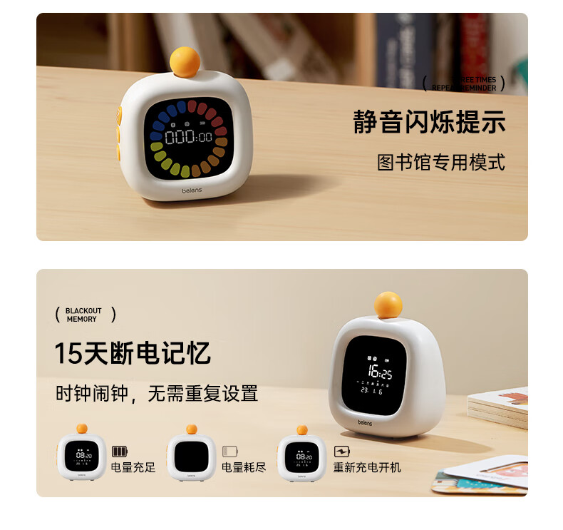贝恩施可视化计时器时间管理器中小学生学习桌面定时器闹钟毕业礼物