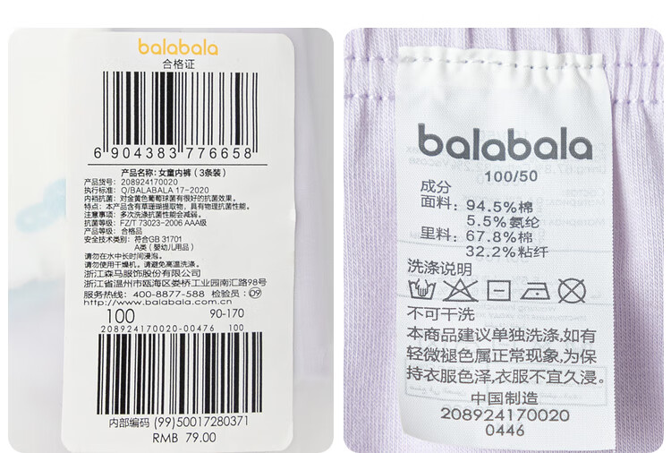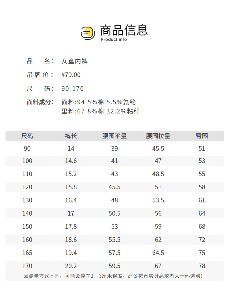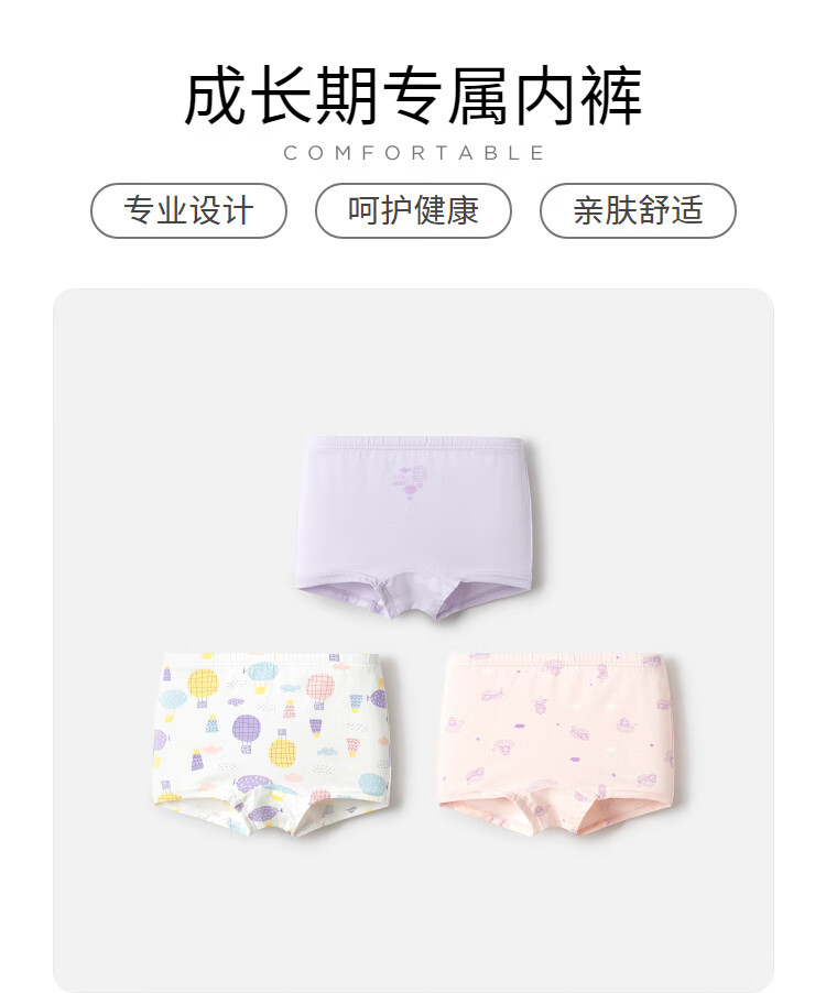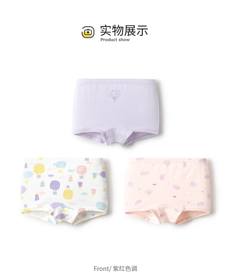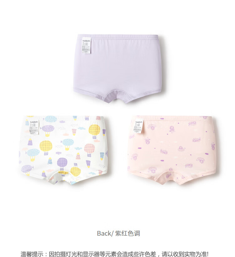 巴拉巴拉女童内裤棉平角春季新款儿童四角短裤不夹PP三条装208924170020