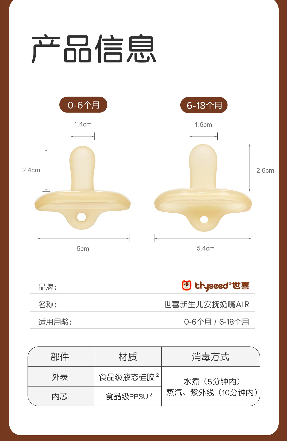 世喜安抚奶嘴6个月以上防胀气 新生婴儿夜用扁头防龅牙哄睡 超轻air款