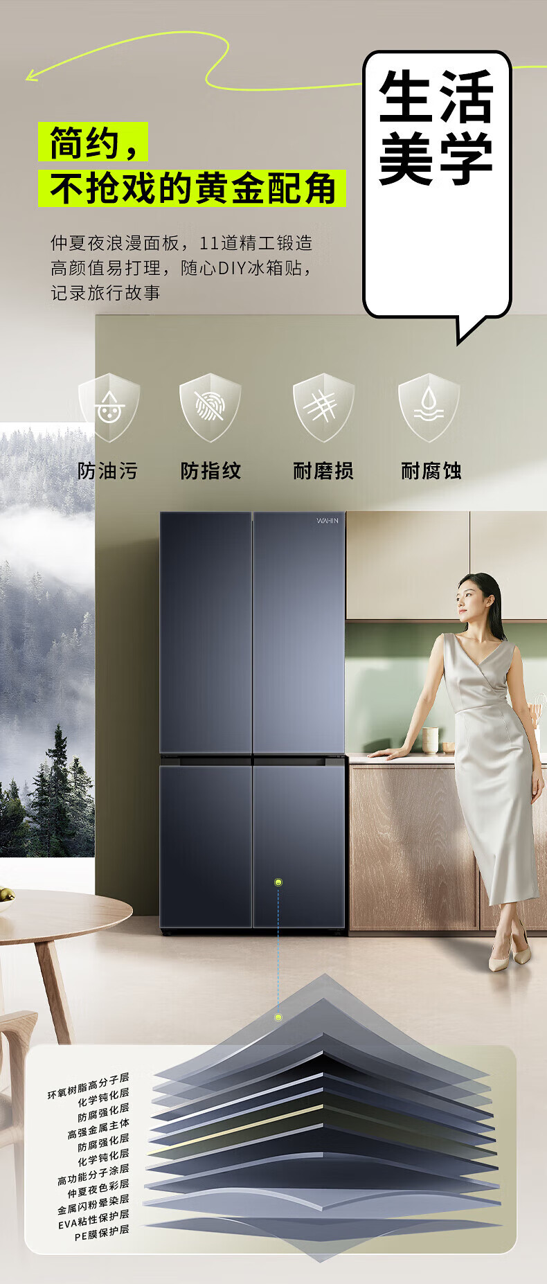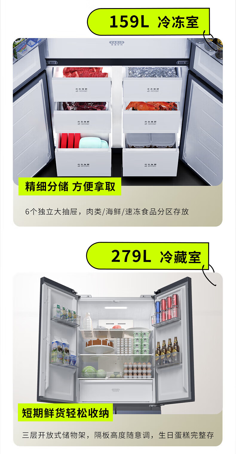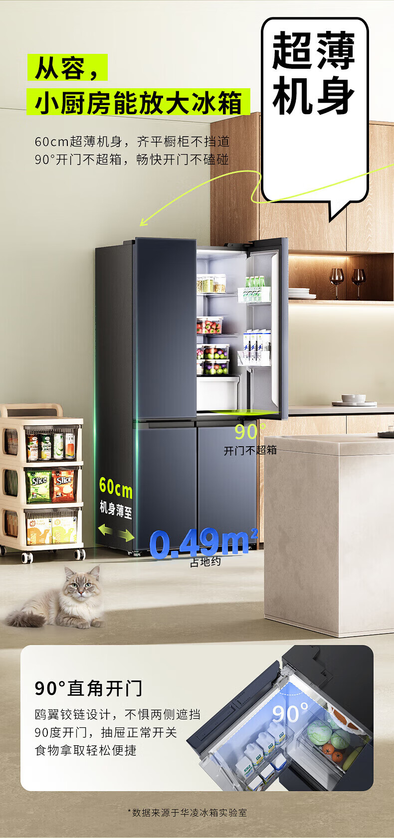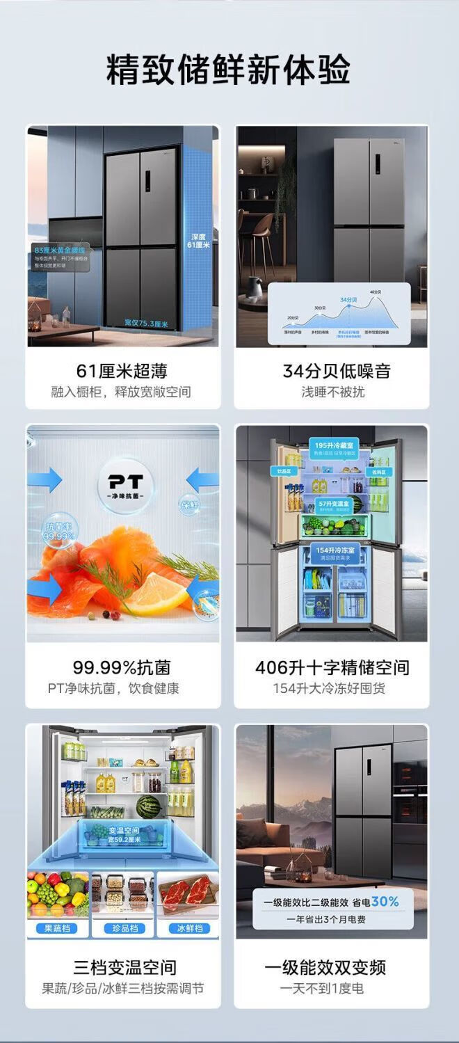 美的集团出品冰箱482升 双变频 风冷无霜 一级能效 双门四门 法式多门对开门超薄嵌入节能省电商用冰箱 406升一级超潜可嵌入式【美的出品华凌】 京仓就近速发 致快当日达