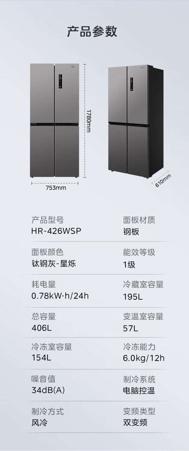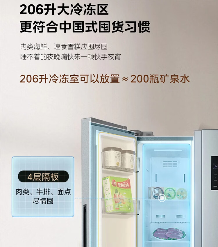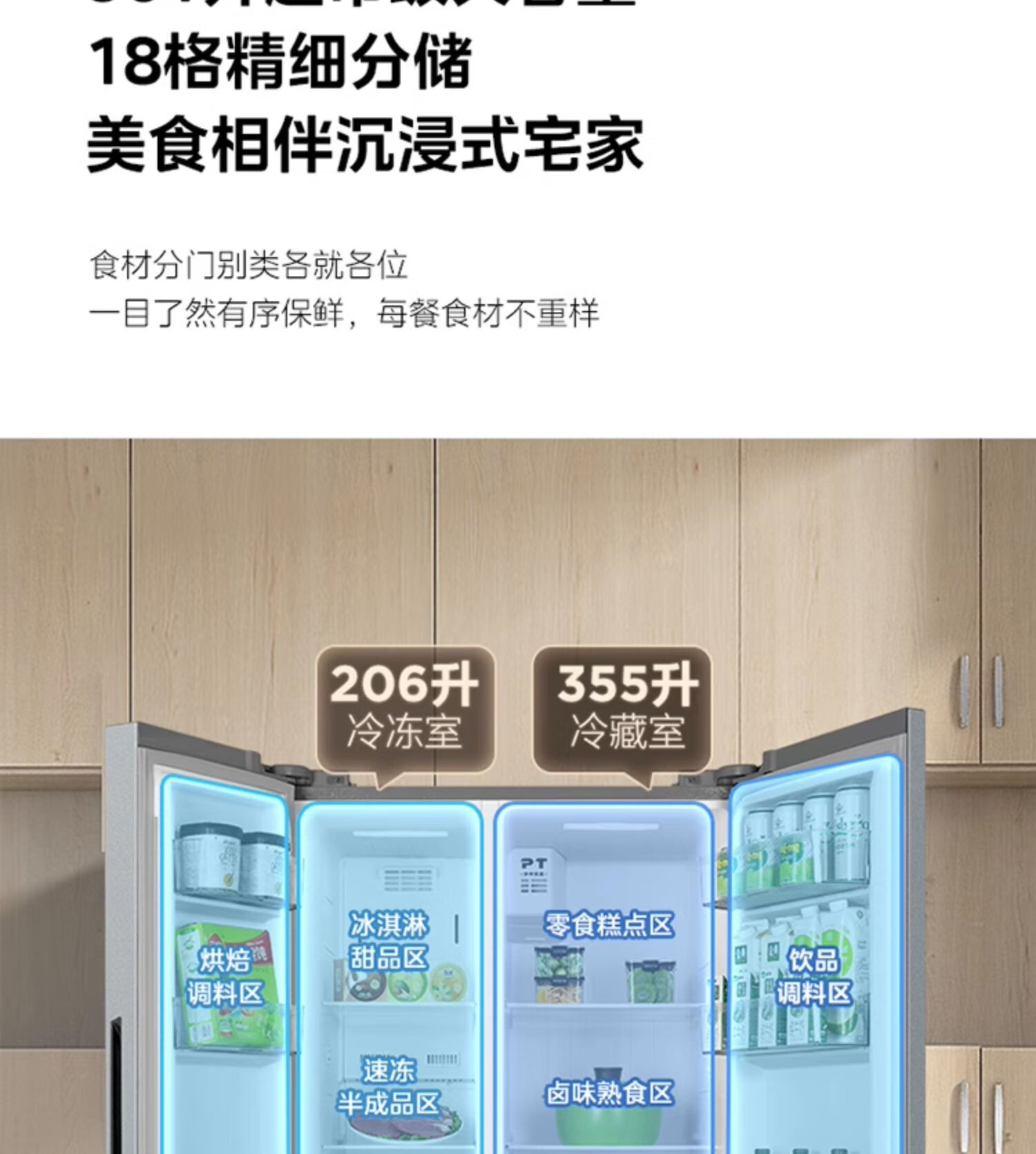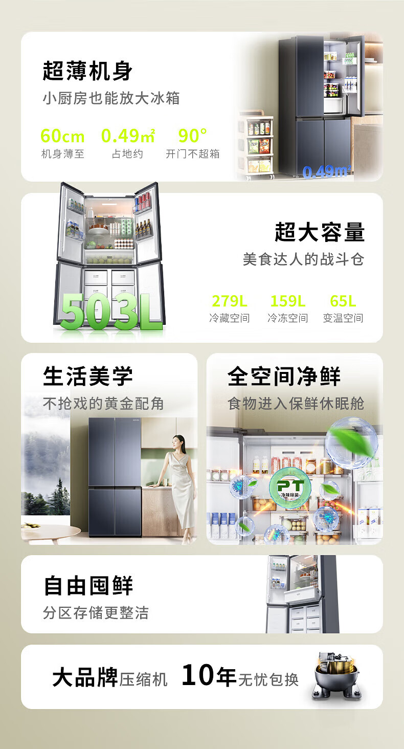 美的集团出品冰箱482升 双变频 风冷无霜 一级能效 双门四门 法式多门对开门超薄嵌入节能省电商用冰箱 406升一级超潜可嵌入式【美的出品华凌】 京仓就近速发 致快当日达