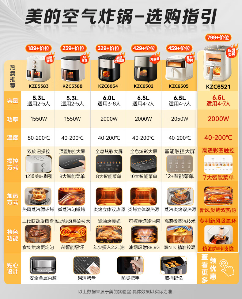 美的(Midea)空气炸锅免翻面 易用旋钮 家用实用大容量5.3L 多功能全自动 蒸烤炸一体 金属内腔 MF-KZE535J5