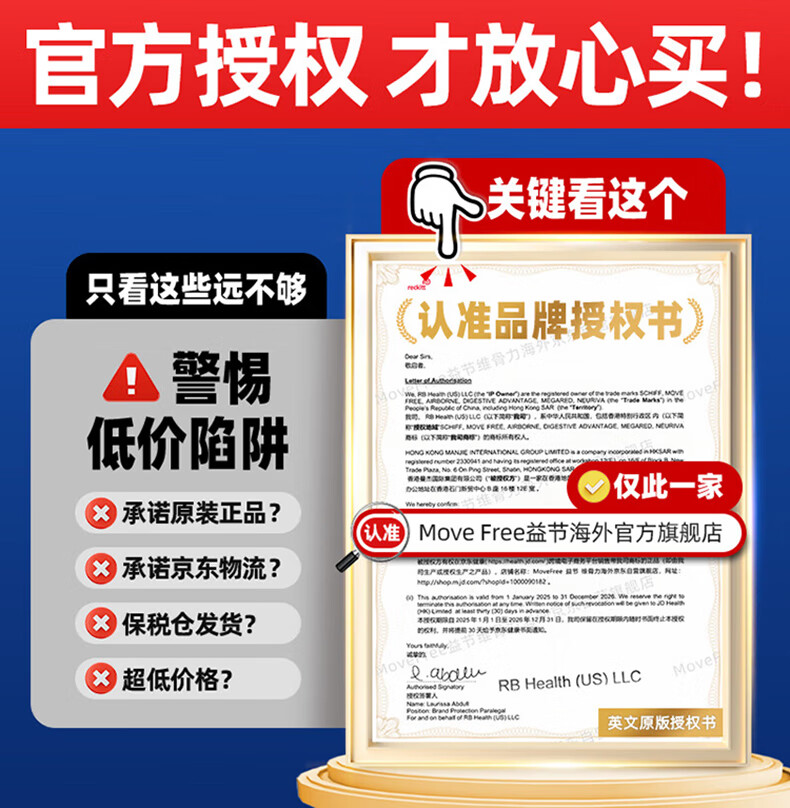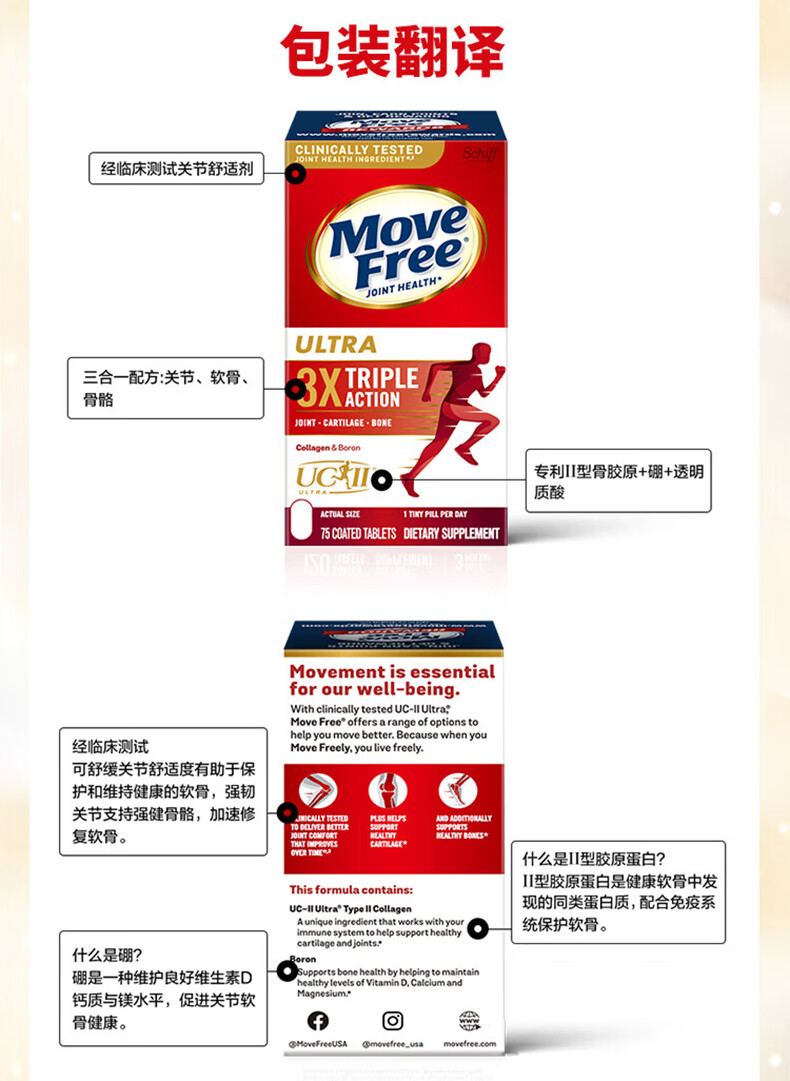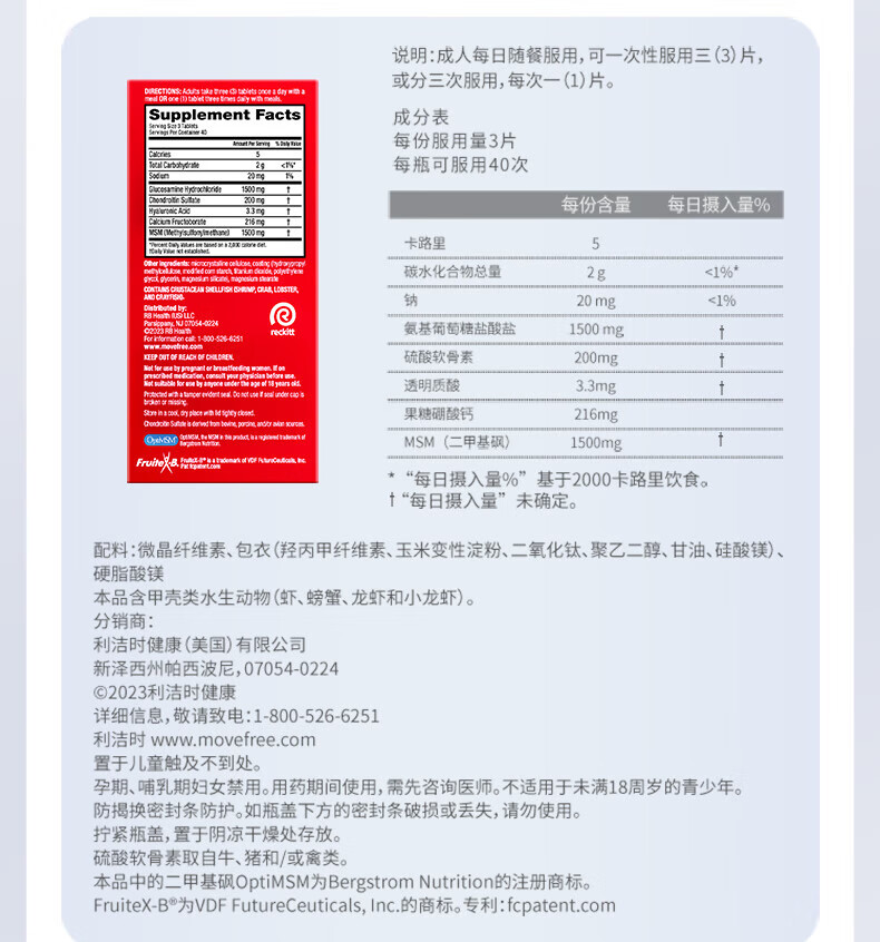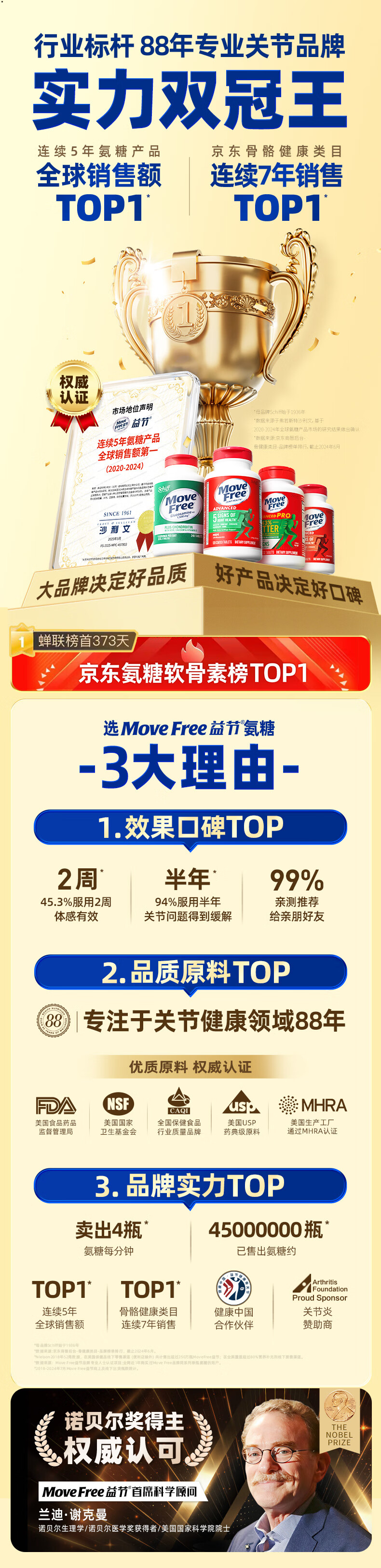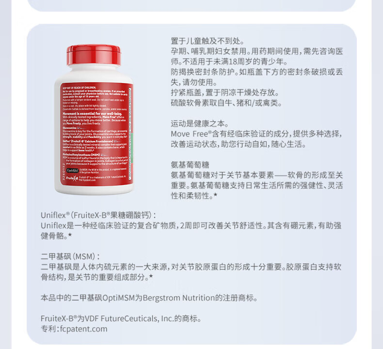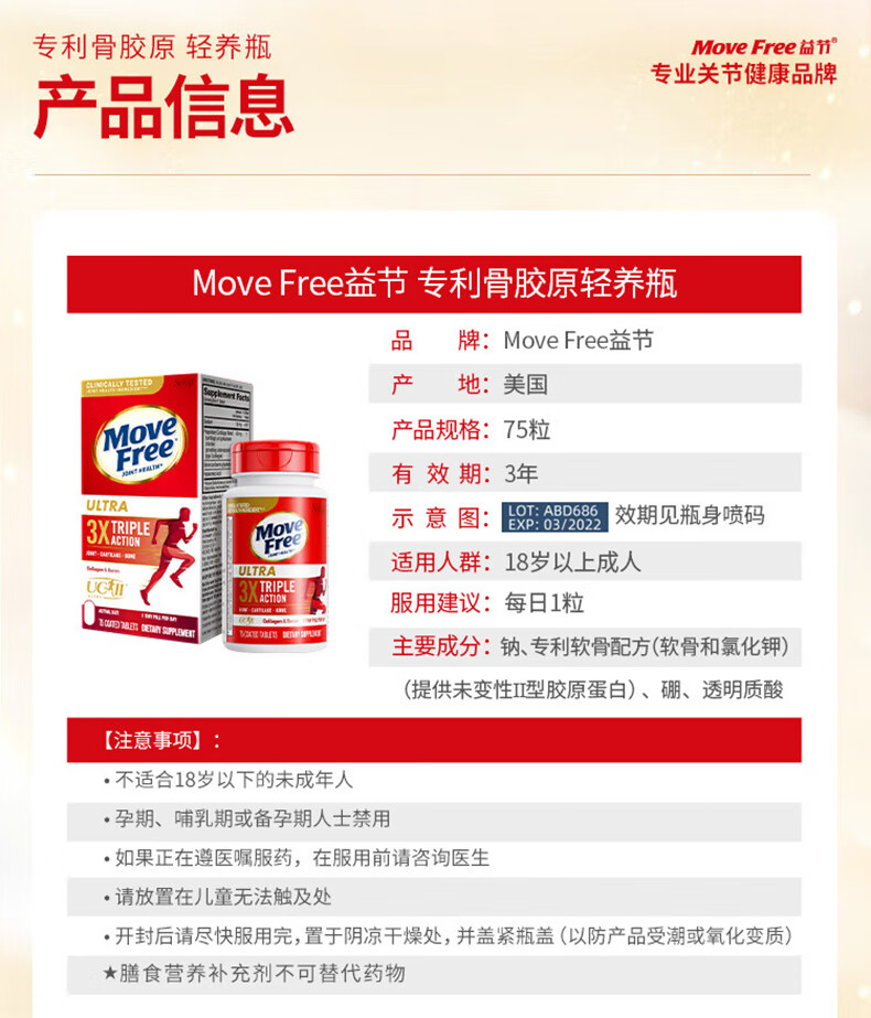Move Free益节红瓶氨糖软骨素200粒 美国原装进口维骨力 成人中老年 护关节 【足量氨糖】养护红瓶200粒大瓶装