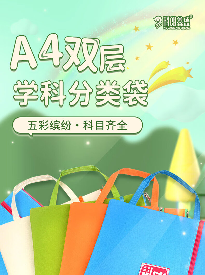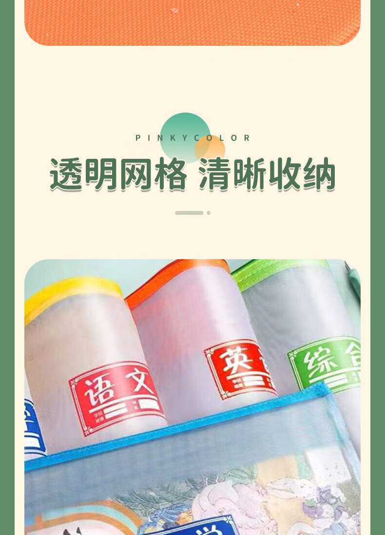 科朗鑫盛科目分类文件袋学科分类袋学生透明网格袋A4拉链袋文具收纳袋小学生文件袋 透明网格袋【5个装】