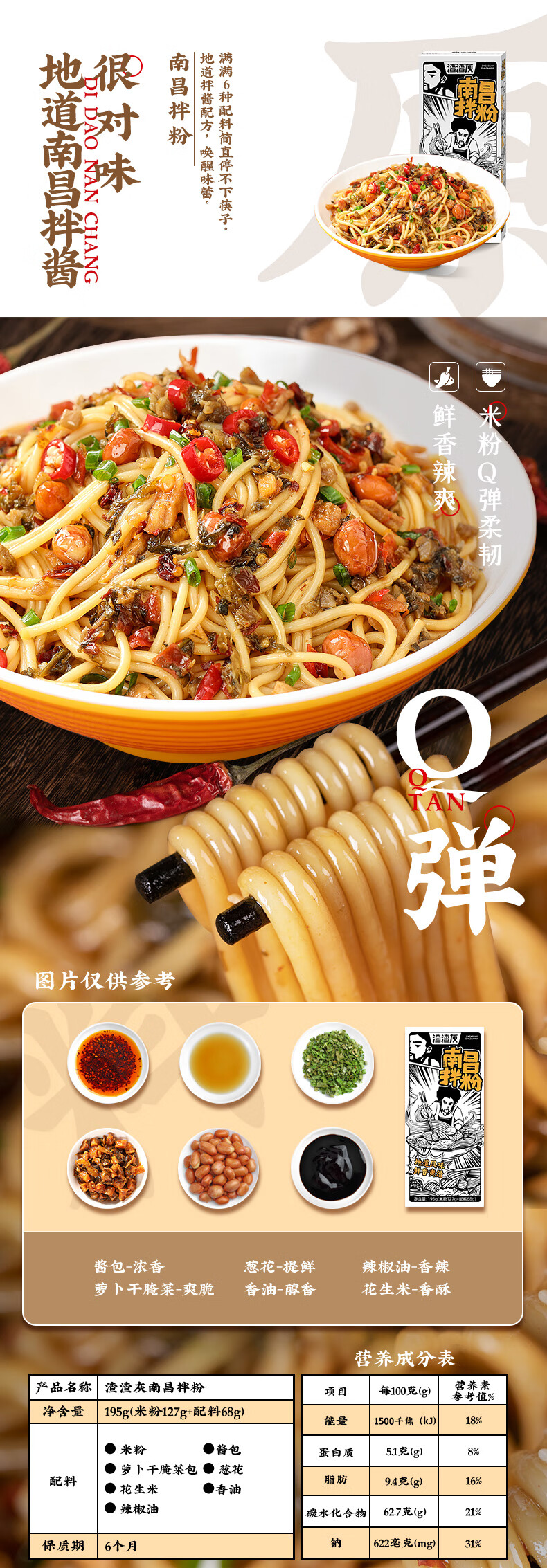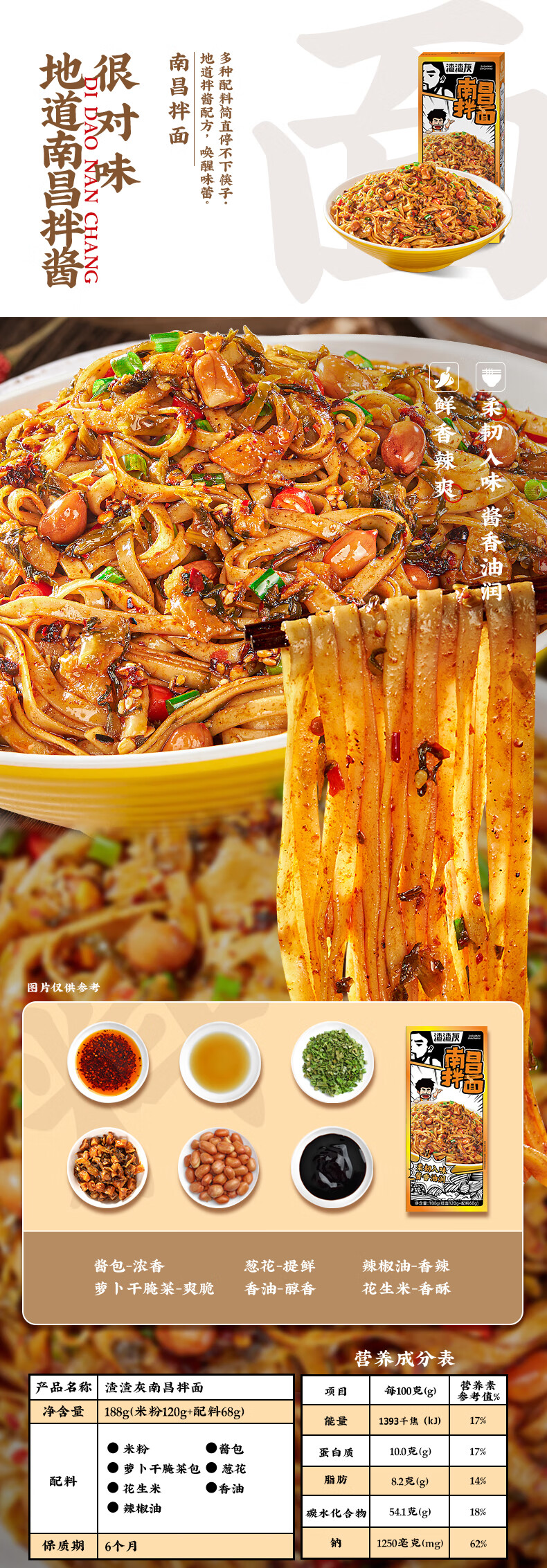 渣渣灰 南昌拌粉江西米粉米线正宗地道特产懒人早餐夜宵方便速食食品 南昌拌粉195g*6盒