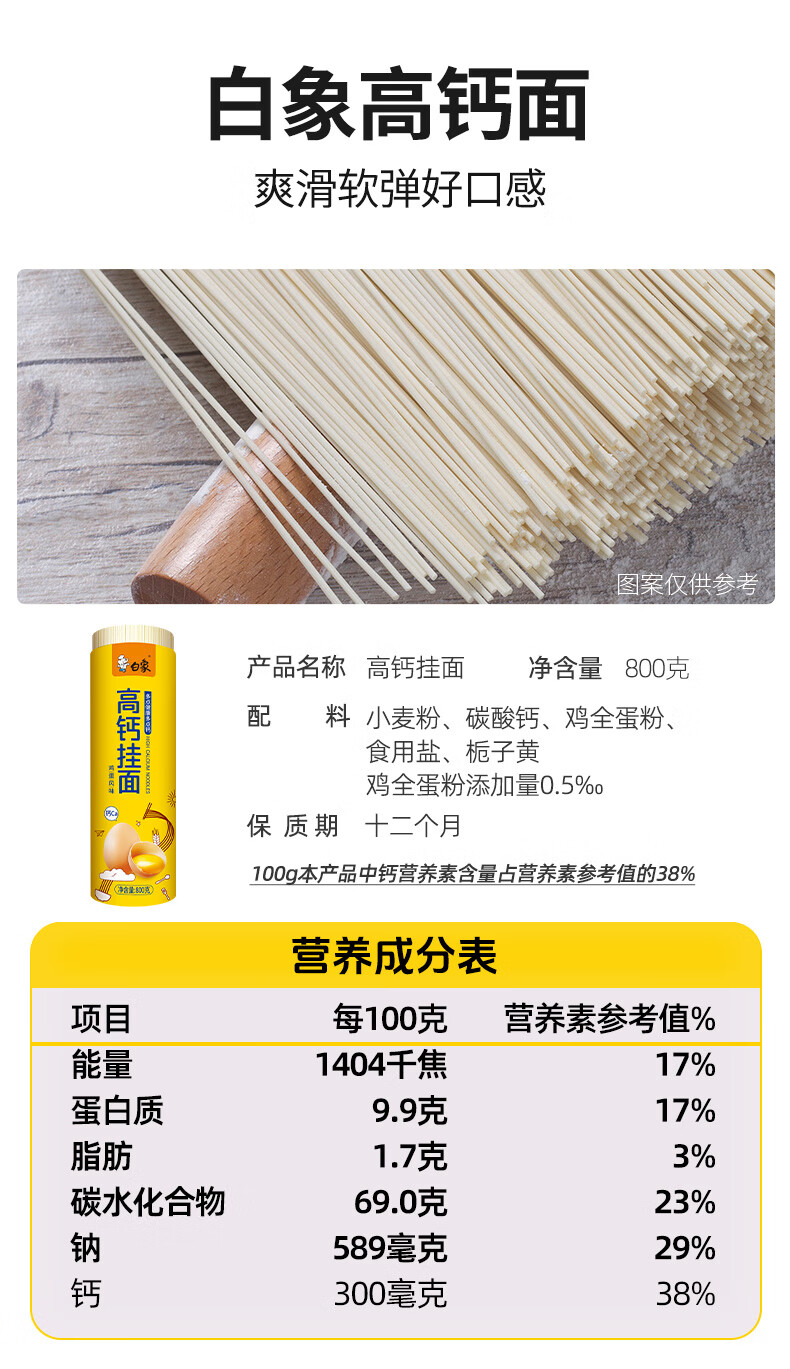 白象高钙鸡蛋挂面面条800g汤面劲道拌面