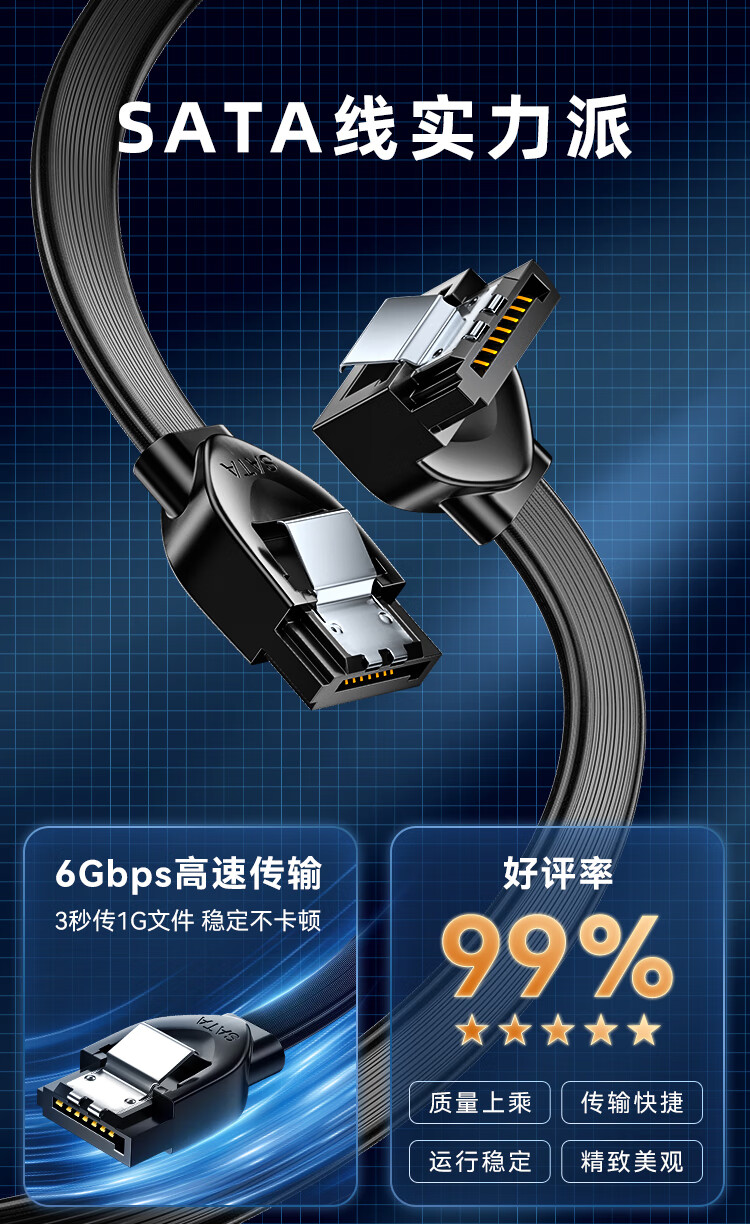 山泽 高速SATA3.0硬盘数据线 外接固态机械硬盘连接线 光驱串口线电源双通道转换线 弯头0.5米 WDZ05