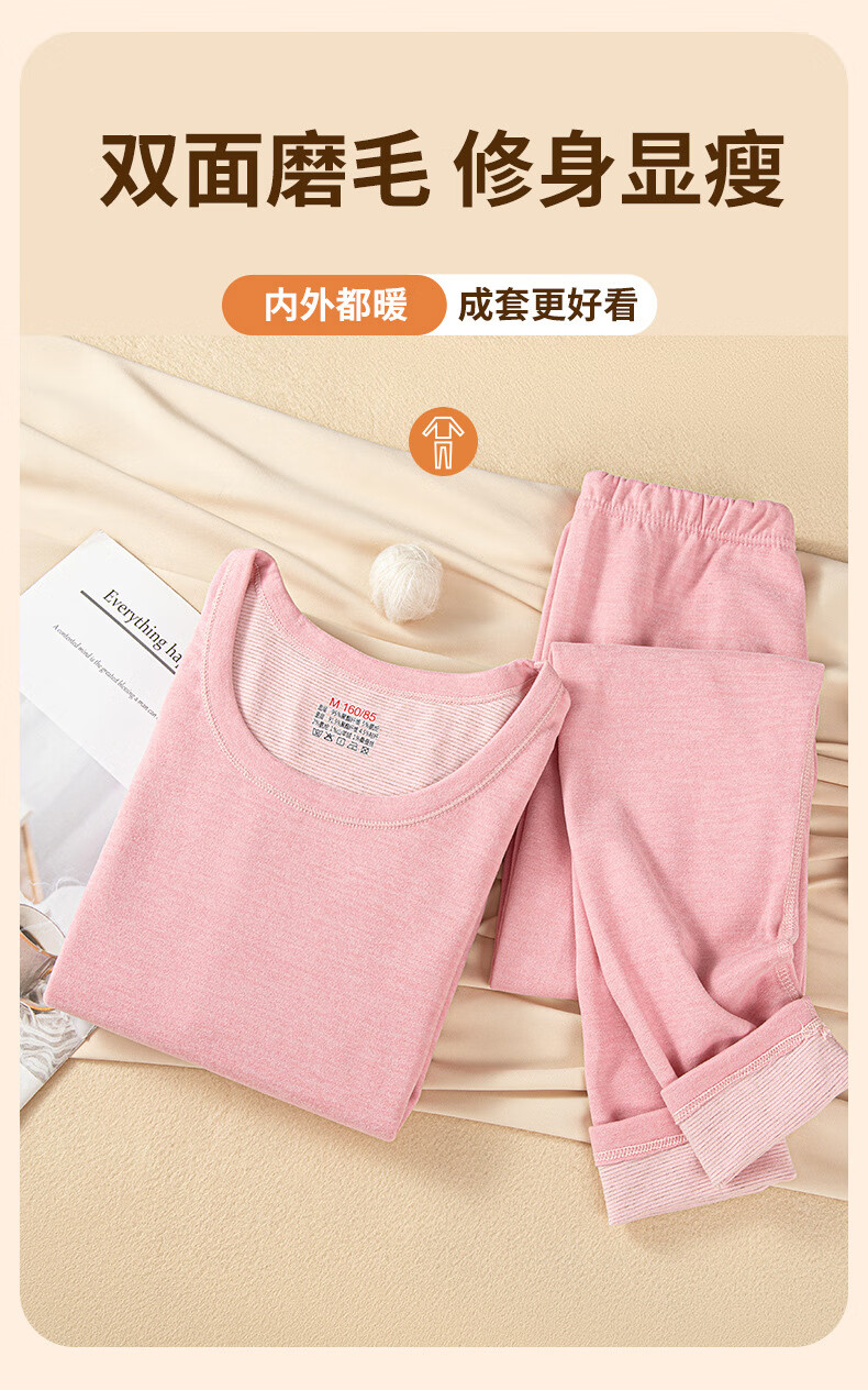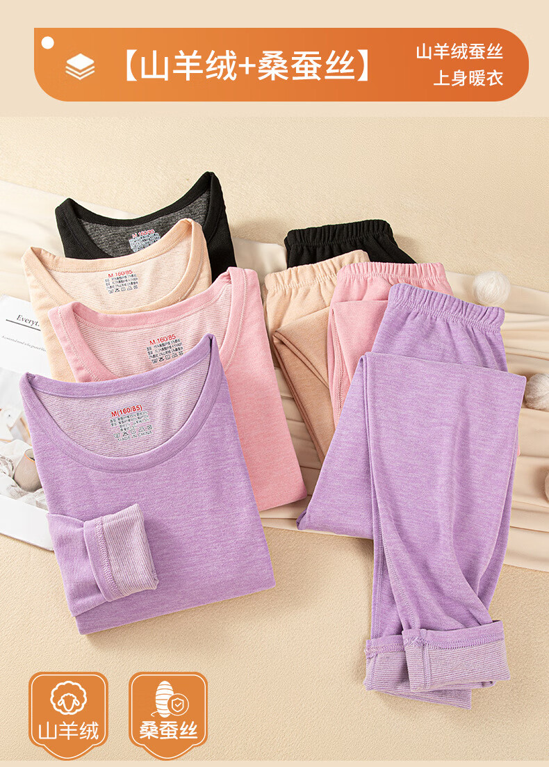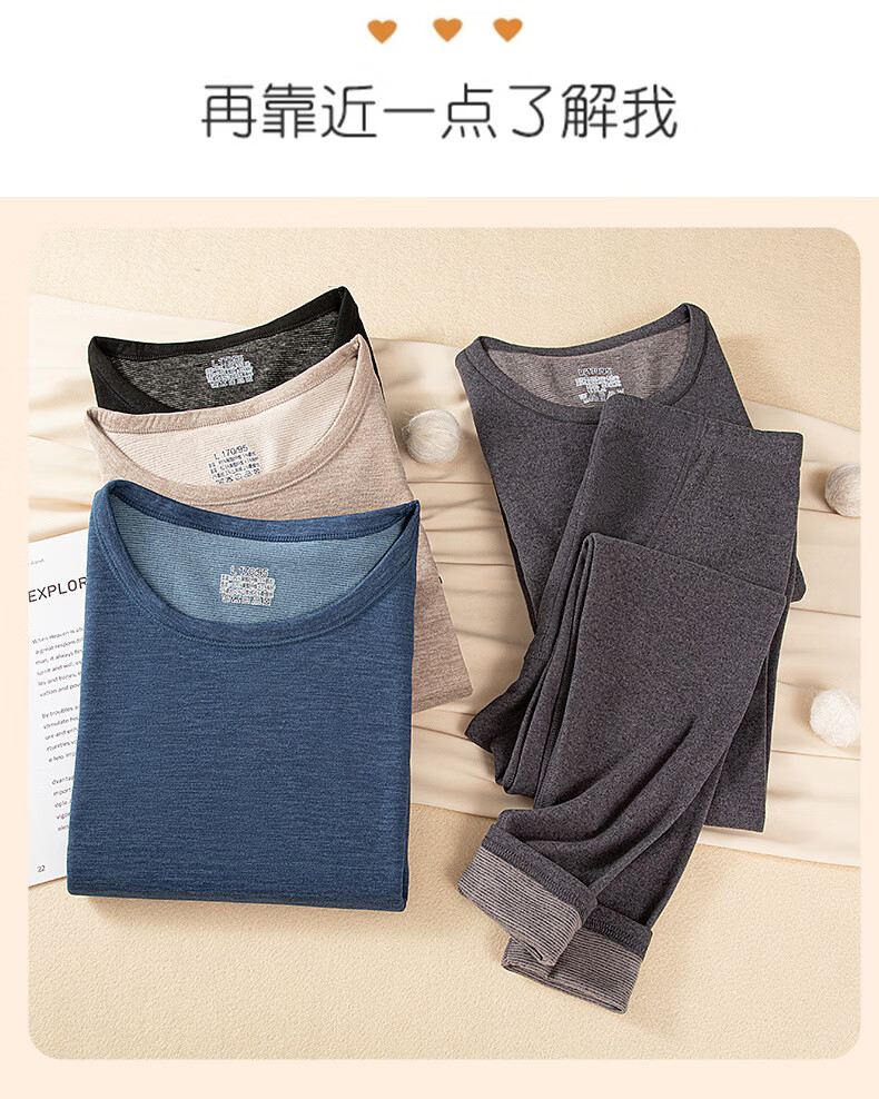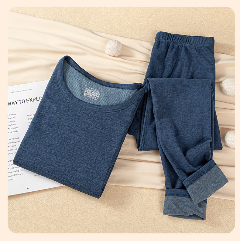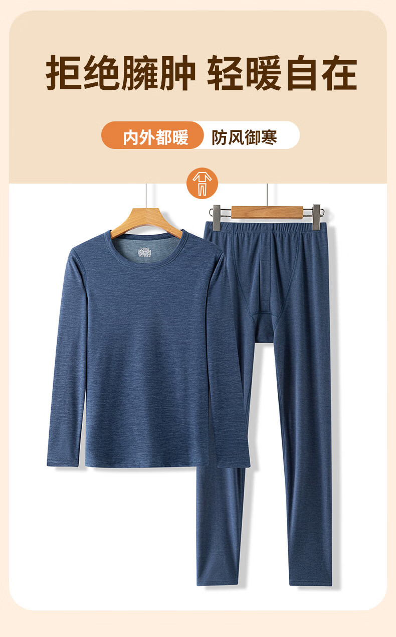 宝娜斯(BONAS)保暖内衣男士秋衣秋裤羊绒蚕丝秋冬保暖套装圆领绵毛衫磨毛浅绒 山羊绒蚕丝蓝色男 4XL 男款