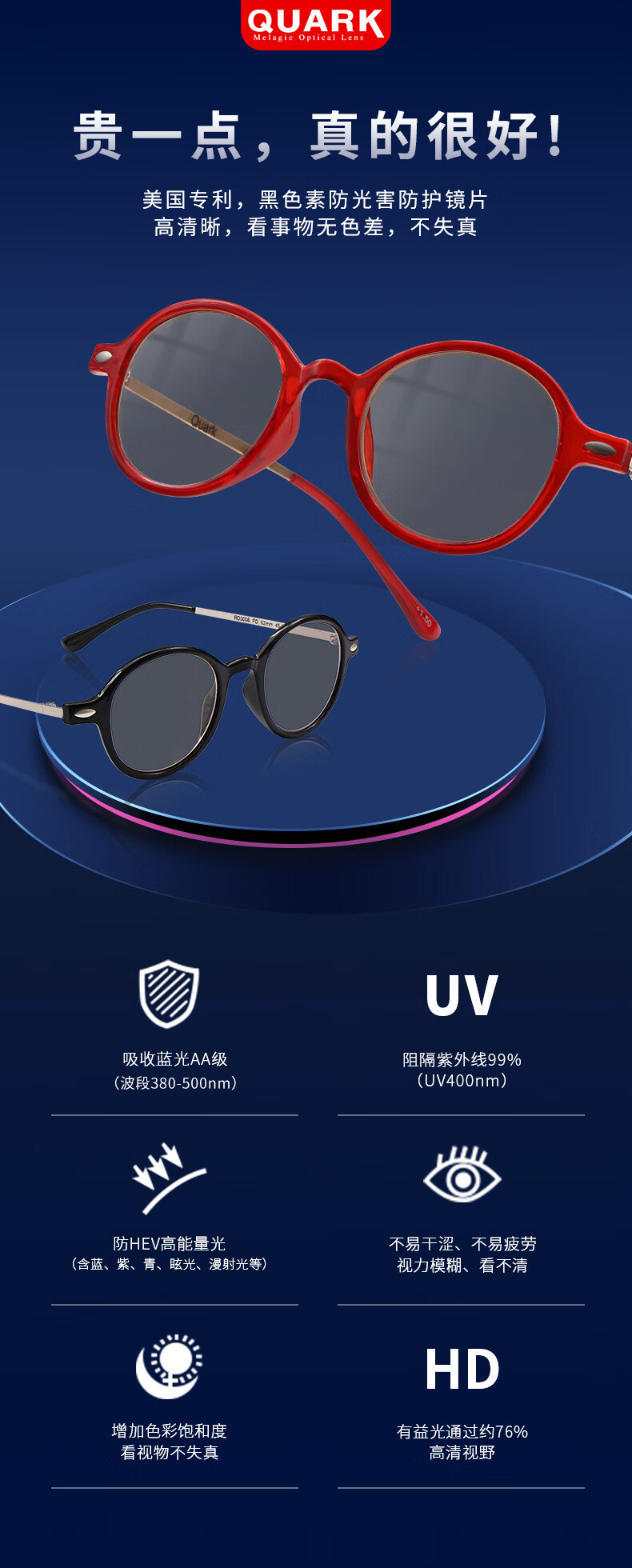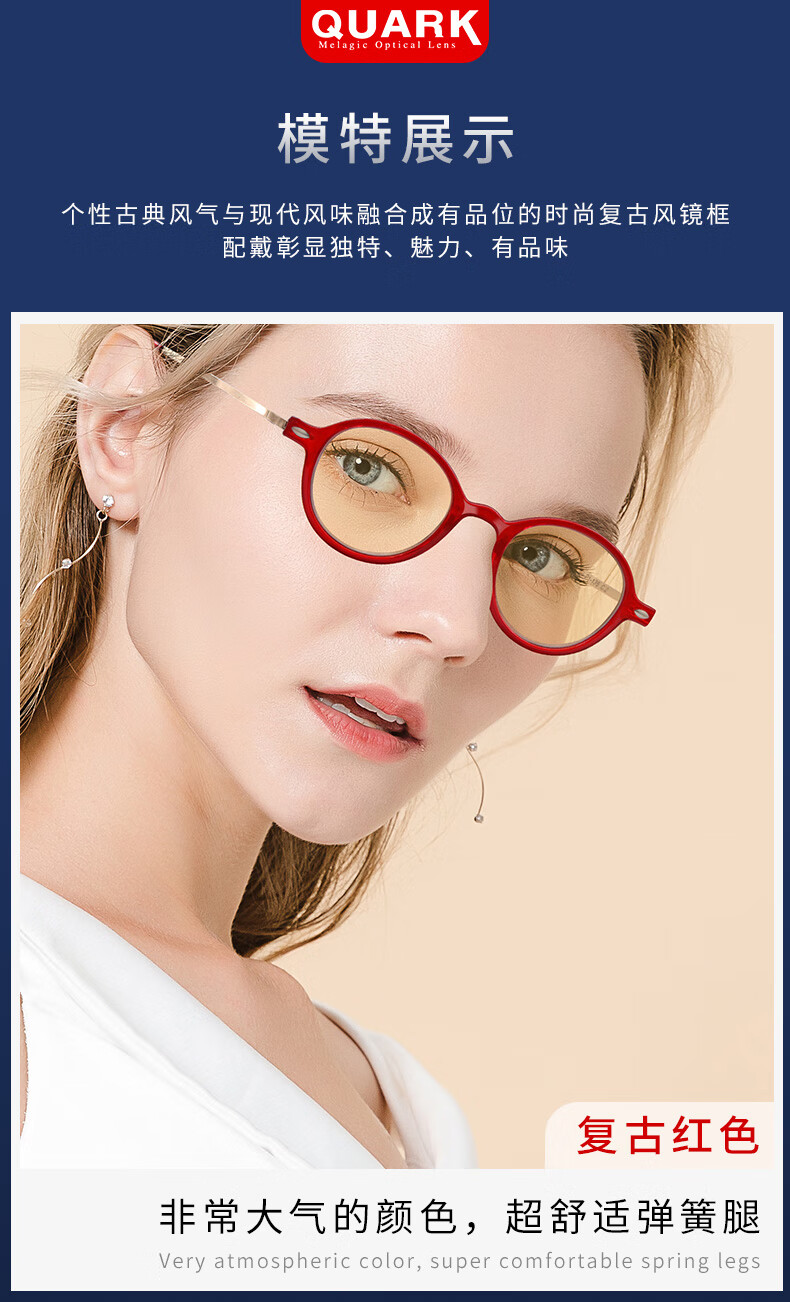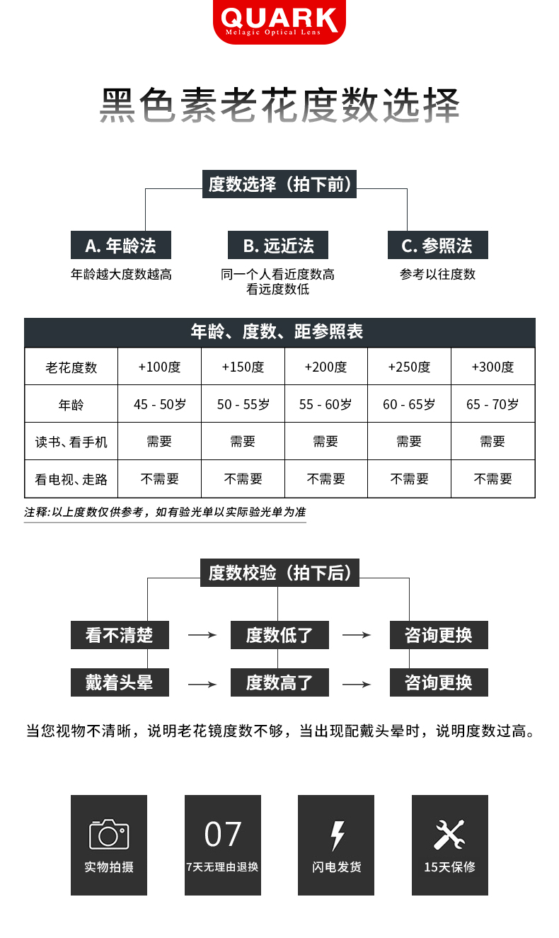 Quark防蓝光老花镜手机辐射高清疲劳中老年人老化眼镜男女RD30081 +250