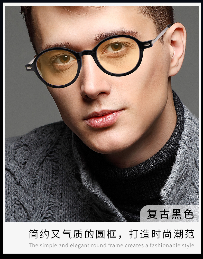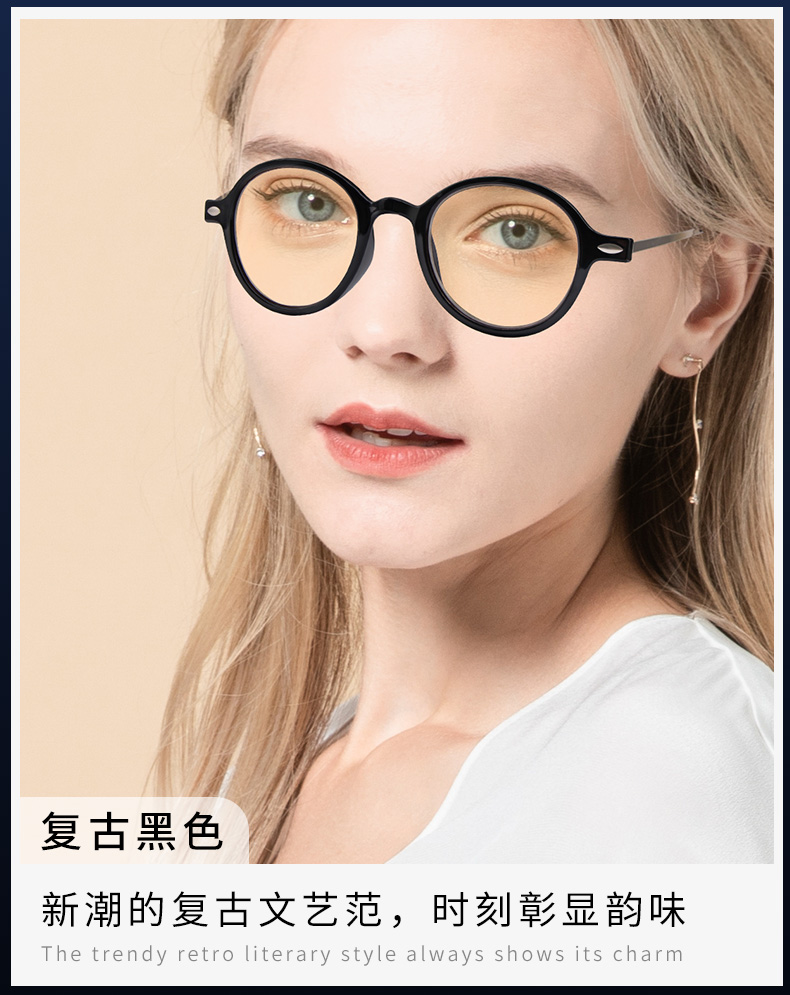 米奇啵啵近视眼镜配镜 全框百搭 【可定制】 标准度数非球 男女款复古圆框 M7165款-茶灰色 双眼近视100度