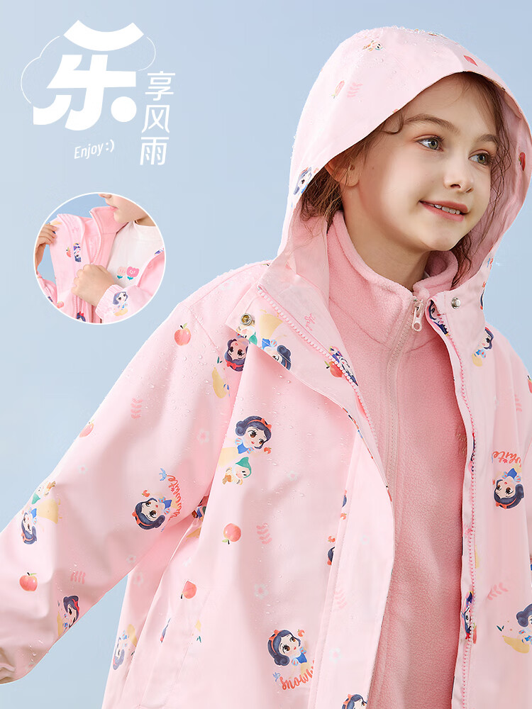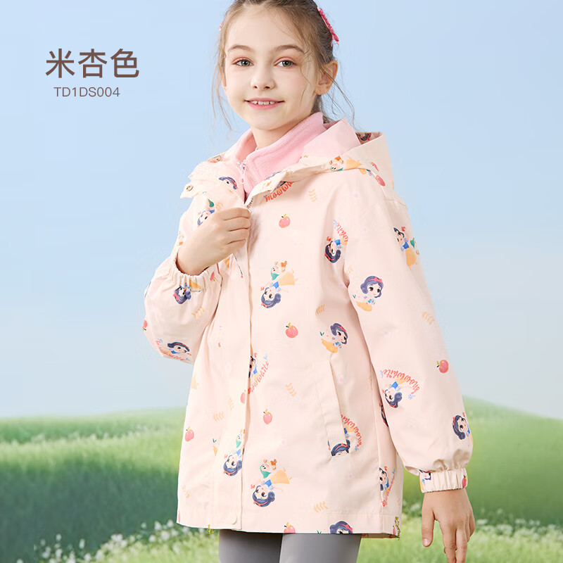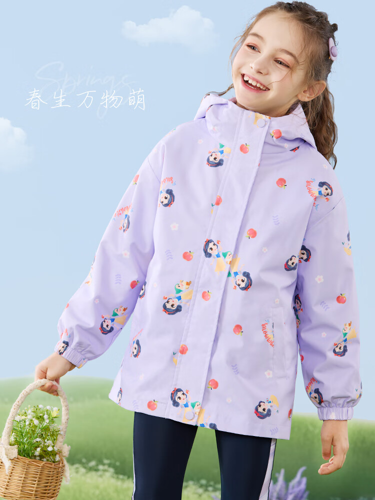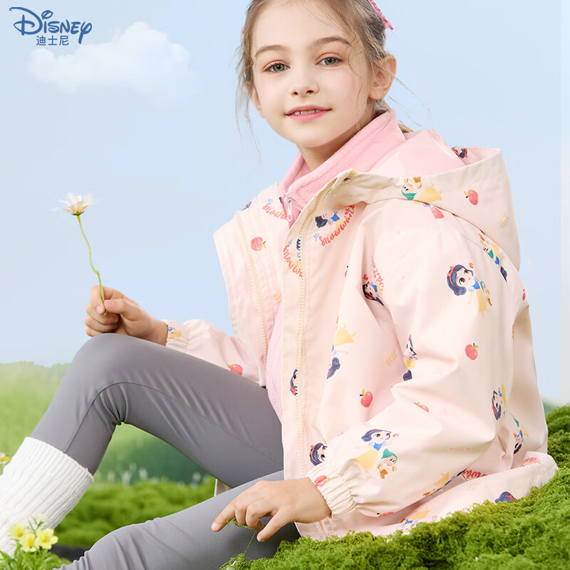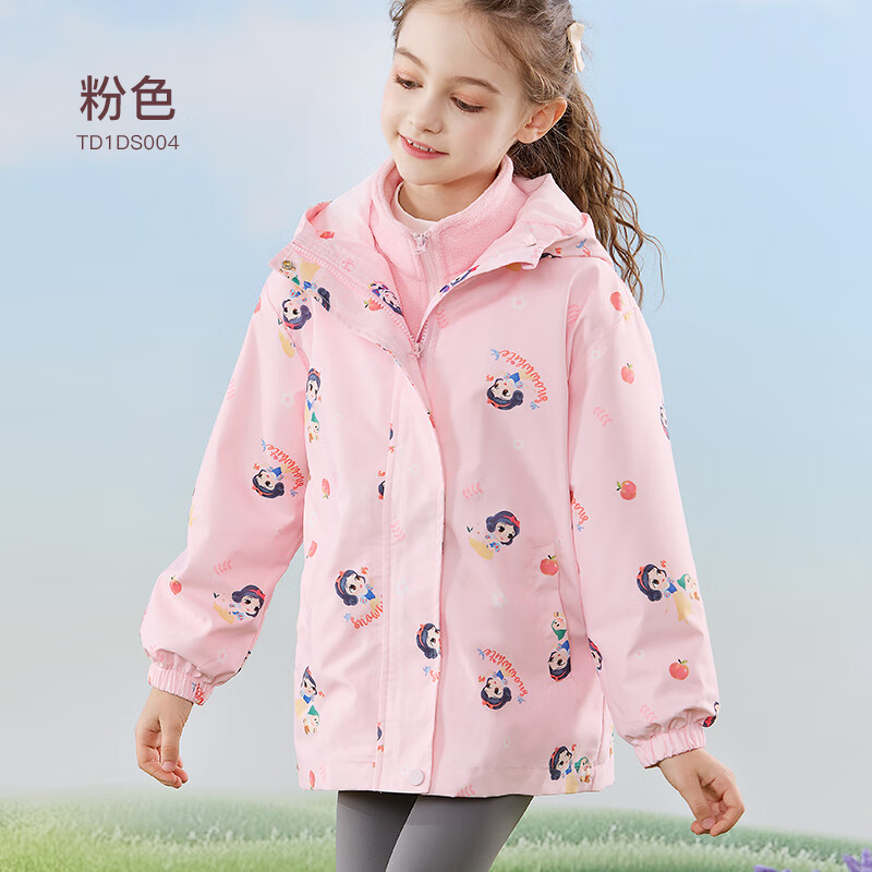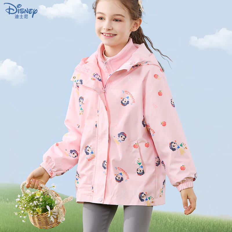 迪士尼女童冲锋衣款外套春装新款公主防风衣三合一摇粒绒洋气童装 紫色TD1DS004 130