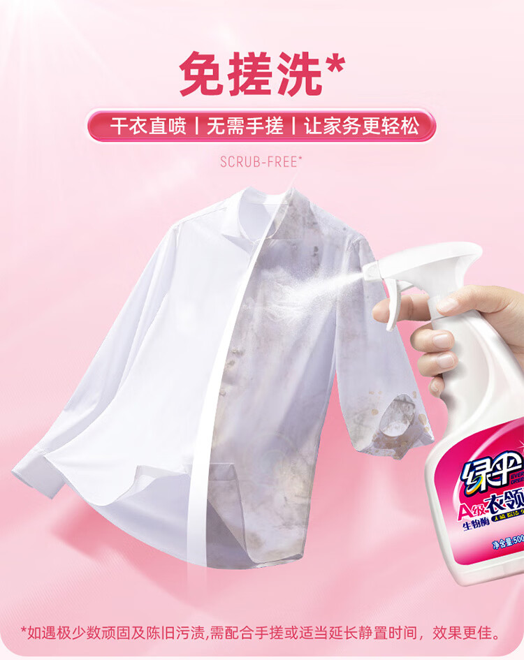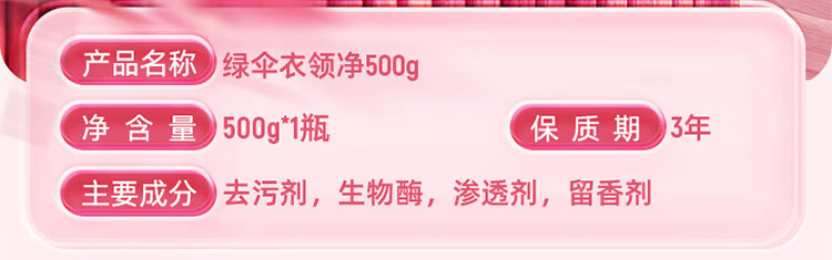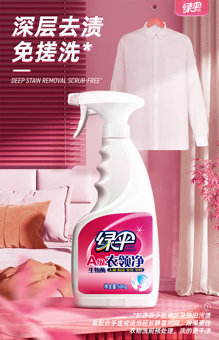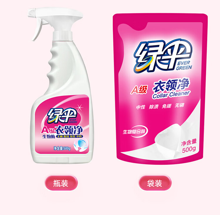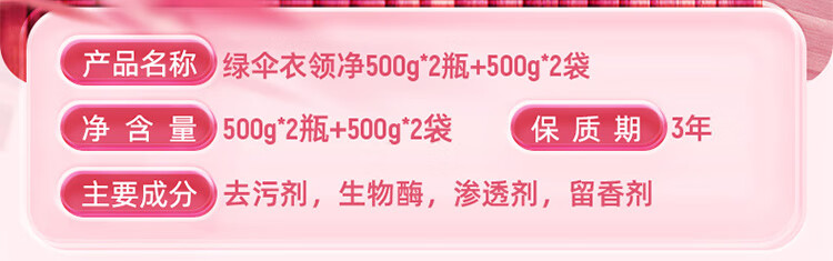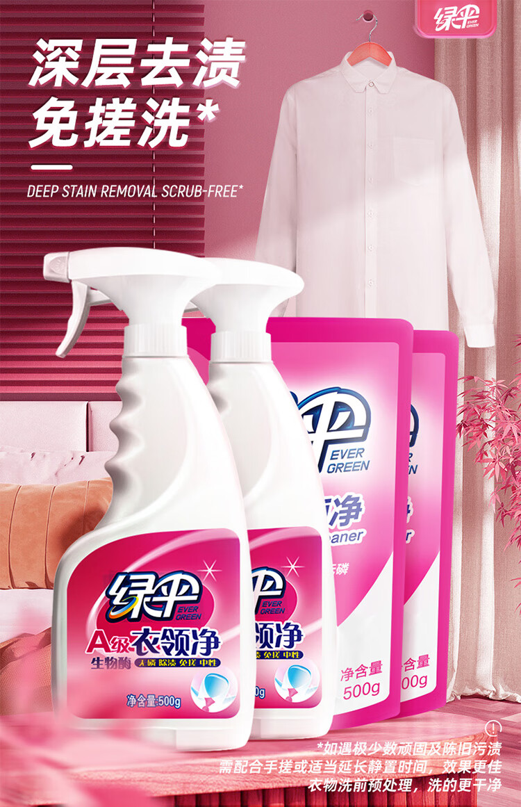 绿伞衣领净 衣领袖口助洗 去黄去渍 白衬衫校服清洁剂 【家庭装】500g*2瓶+500g*2袋