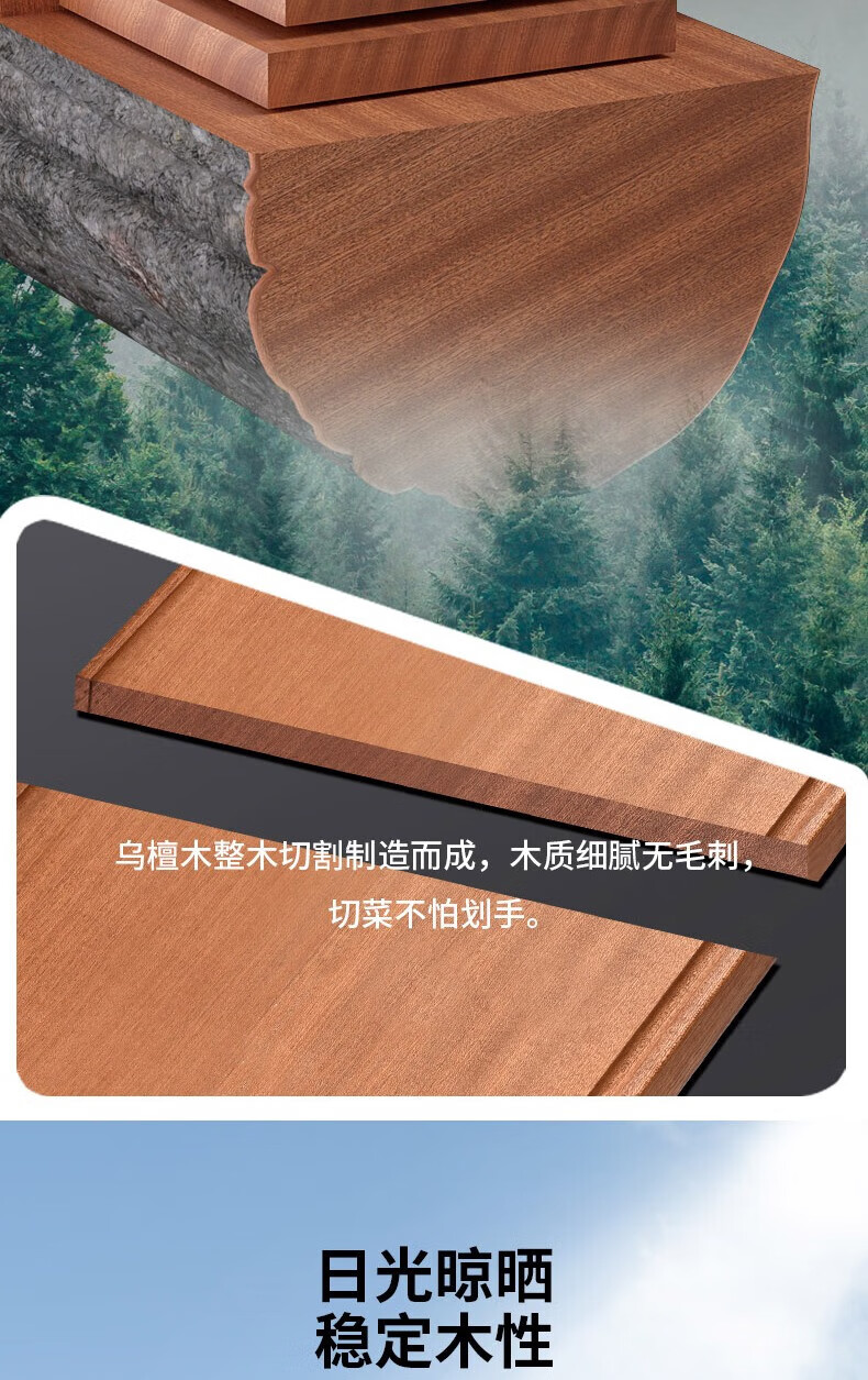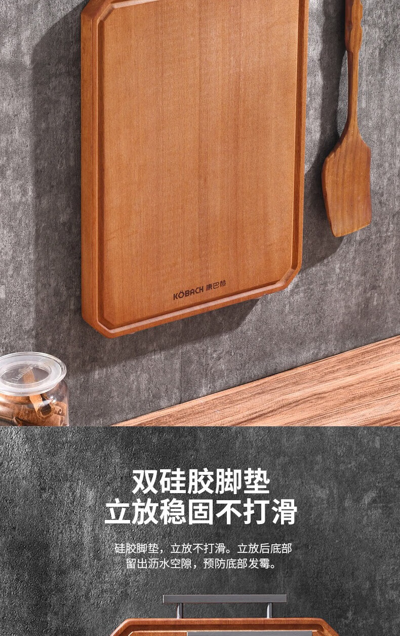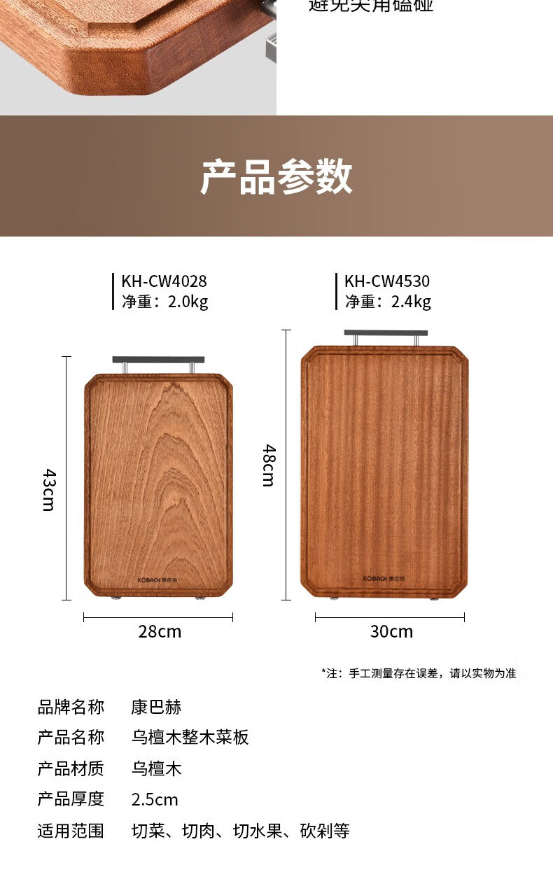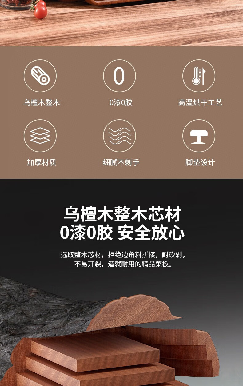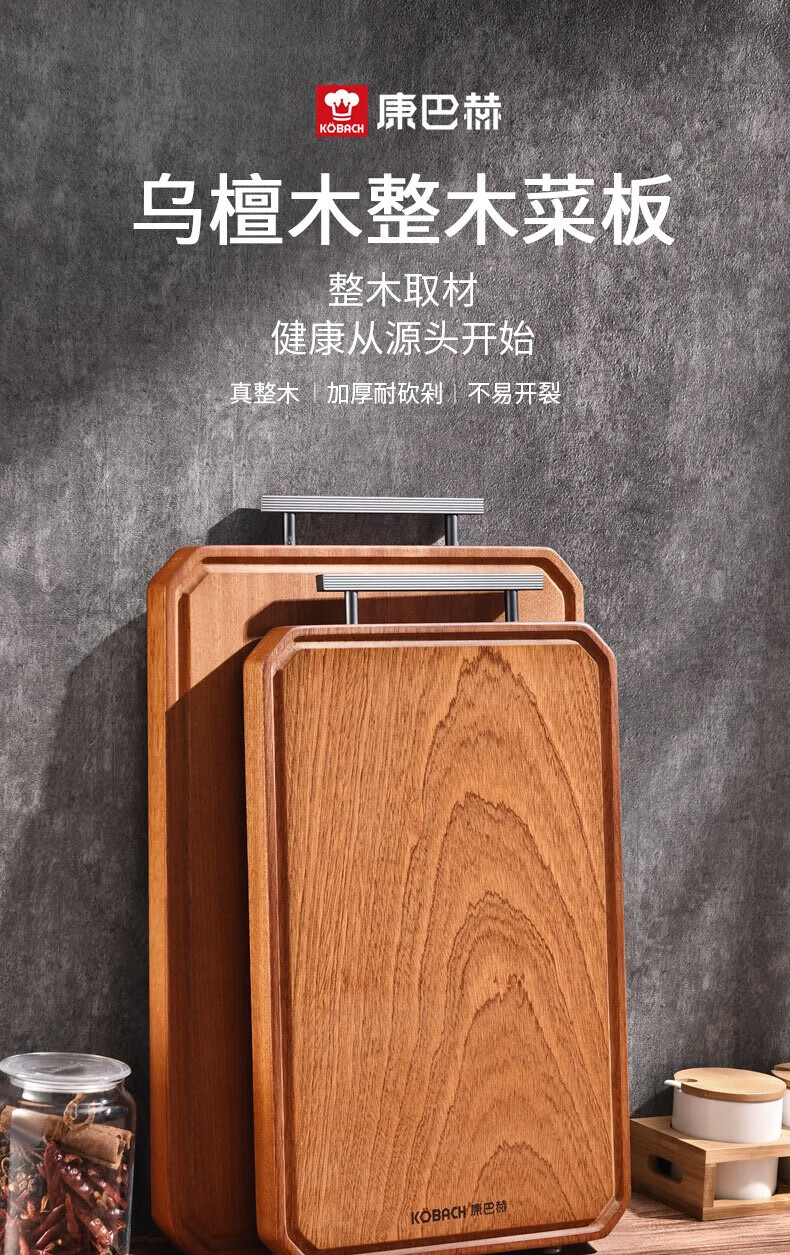 康巴赫(KBH) 整木乌檀木菜板加厚砧板实木切菜板家用擀面案板剁骨板 特大号45*30cm