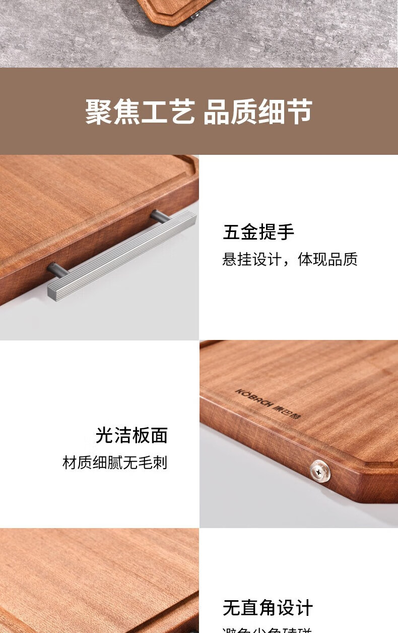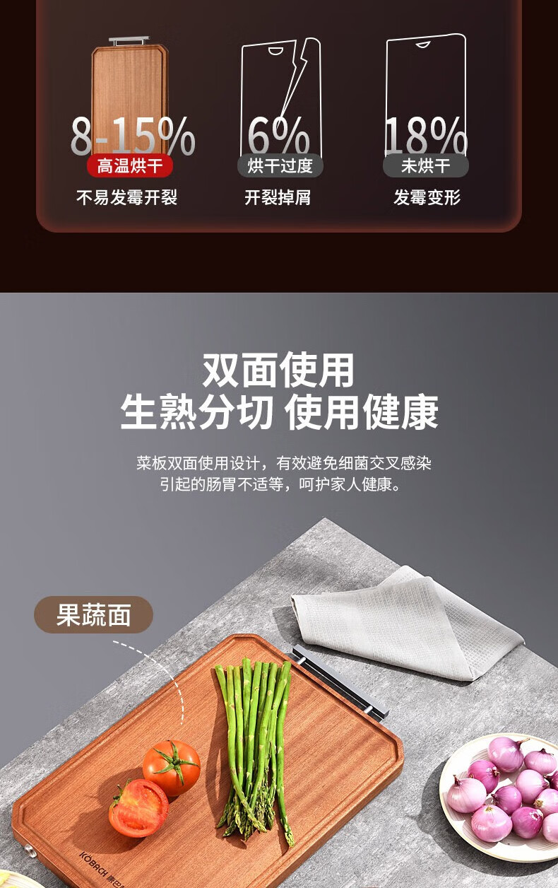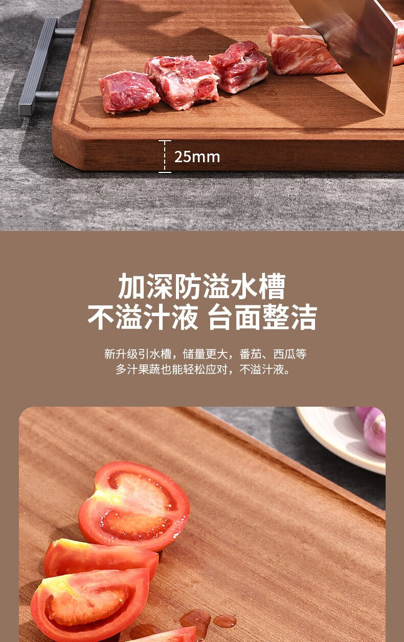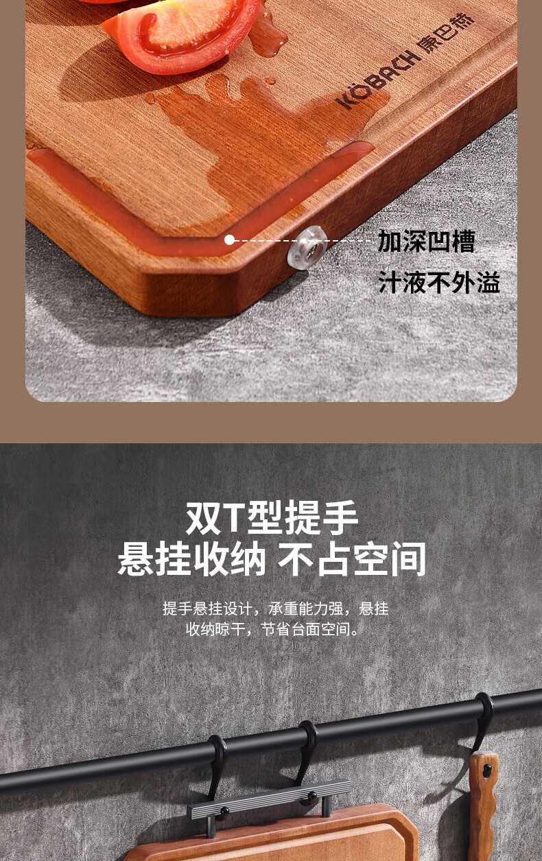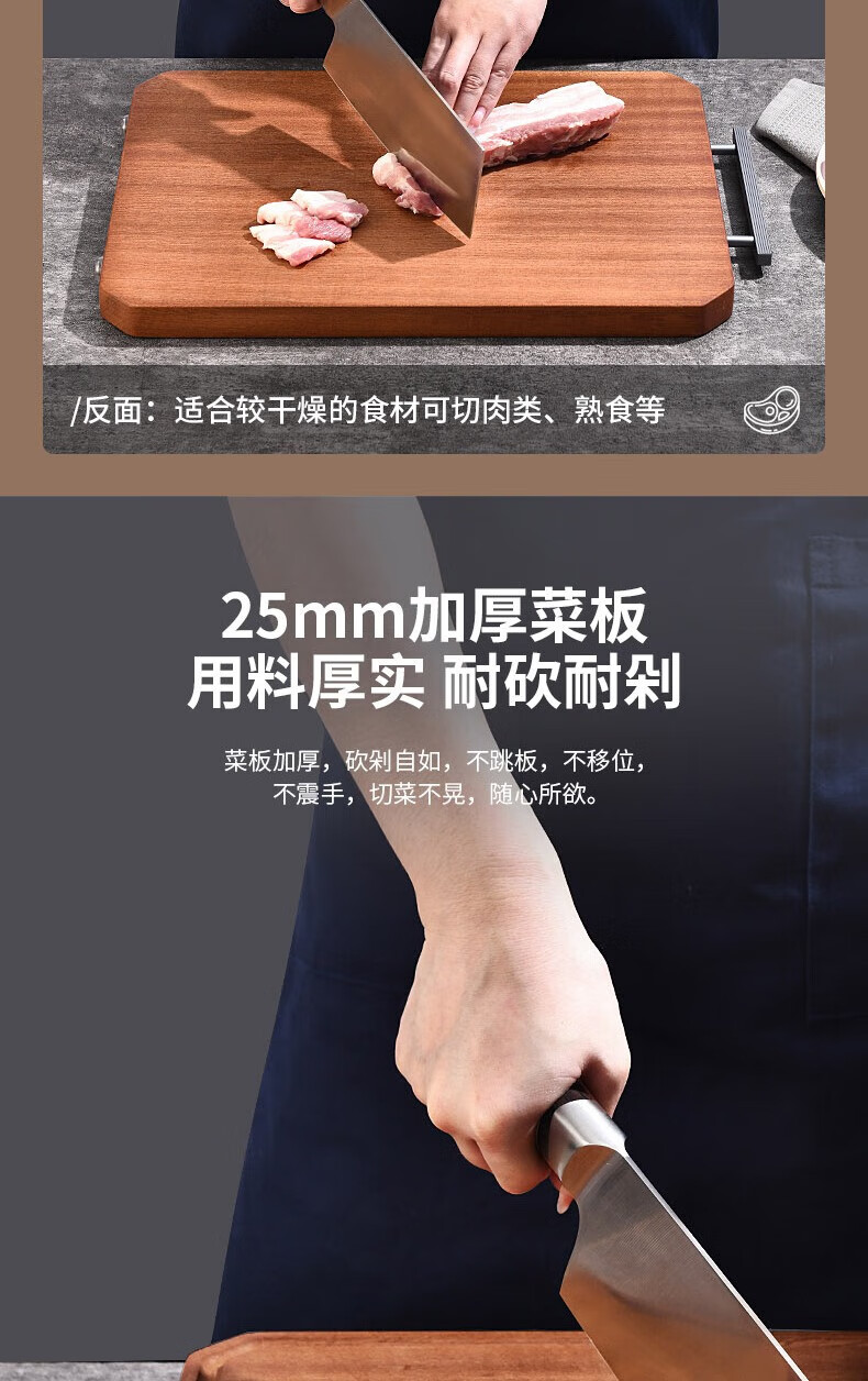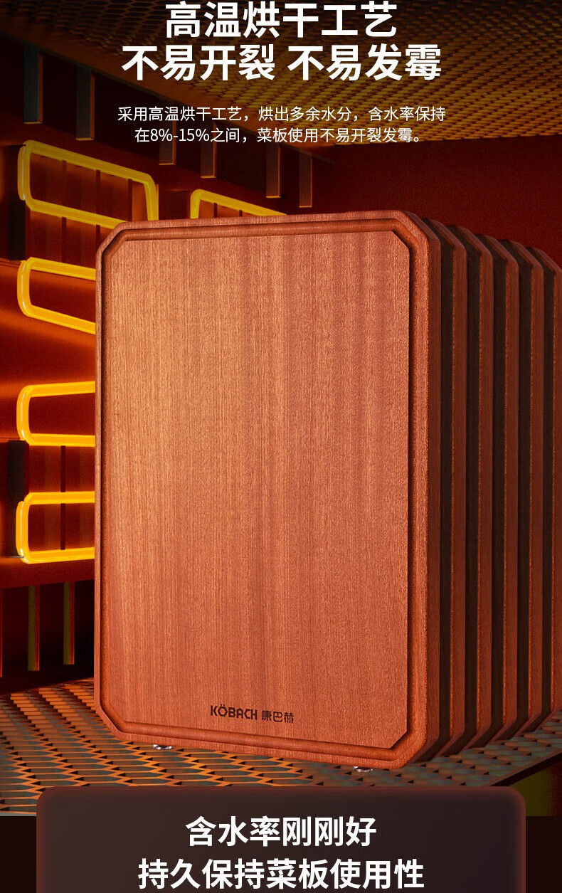康巴赫(KBH) 整木乌檀木菜板加厚砧板实木切菜板家用擀面案板剁骨板 特大号45*30cm