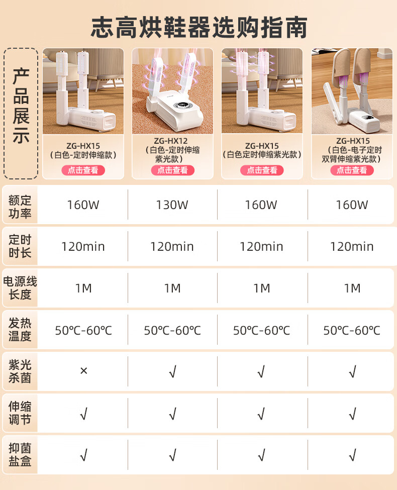 志高(CHIGO)烘干鞋器除味杀菌家用多功能烘鞋机加热器紫外线通用暖鞋神器