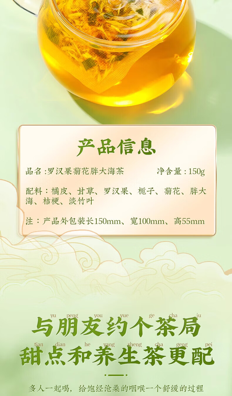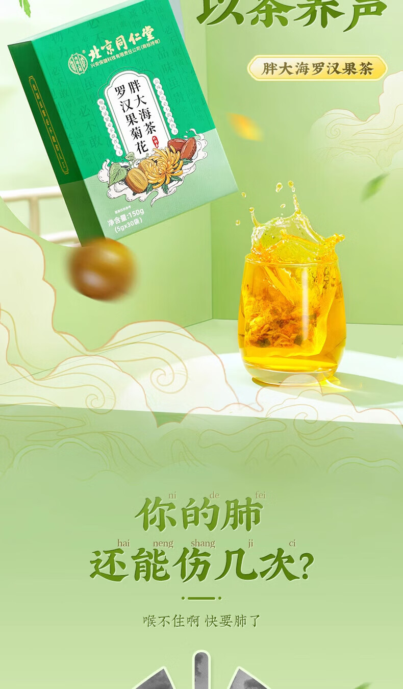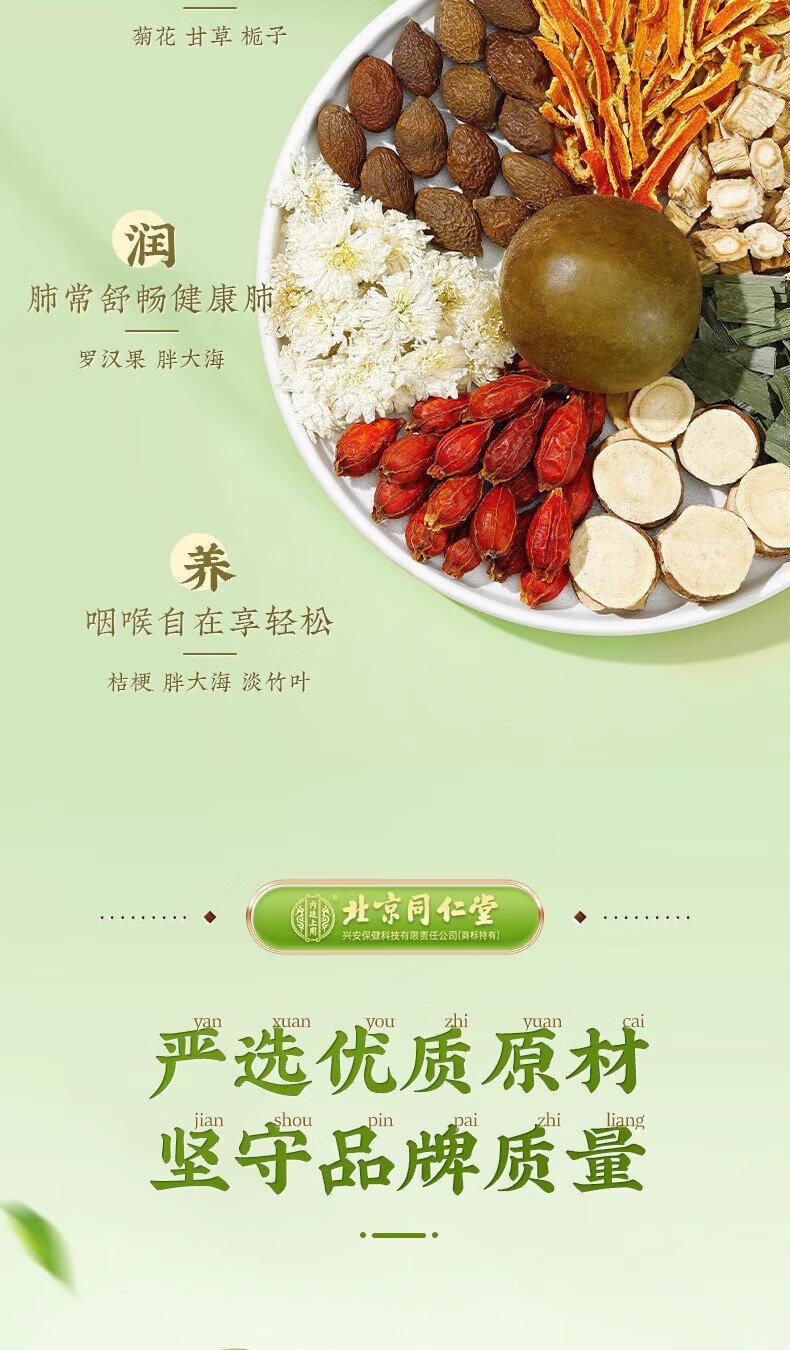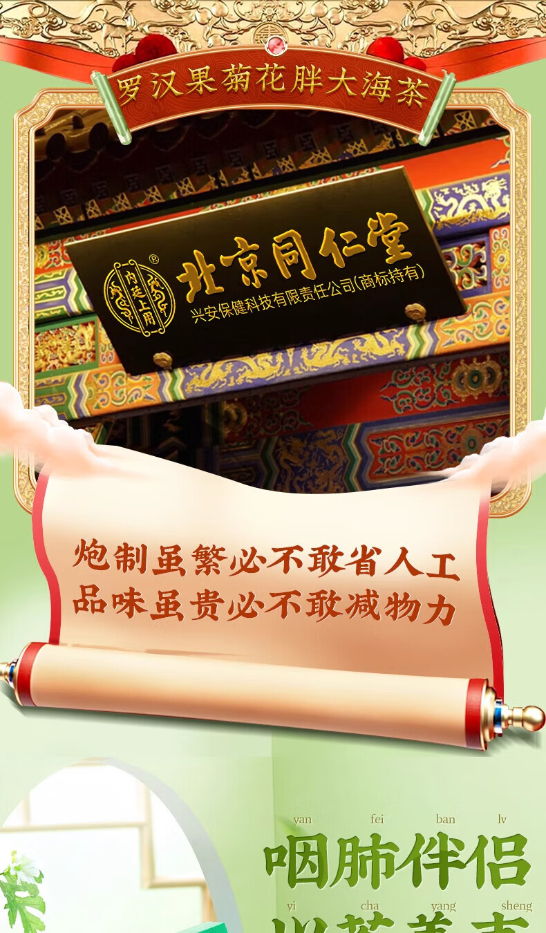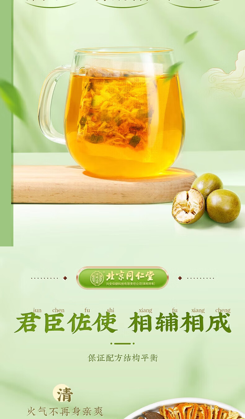 内廷上用北京同仁堂胖大海罗汉果雪梨茶咽非炎茶清肺化痰润喉养生茶包 【1盒体验装】30袋/盒