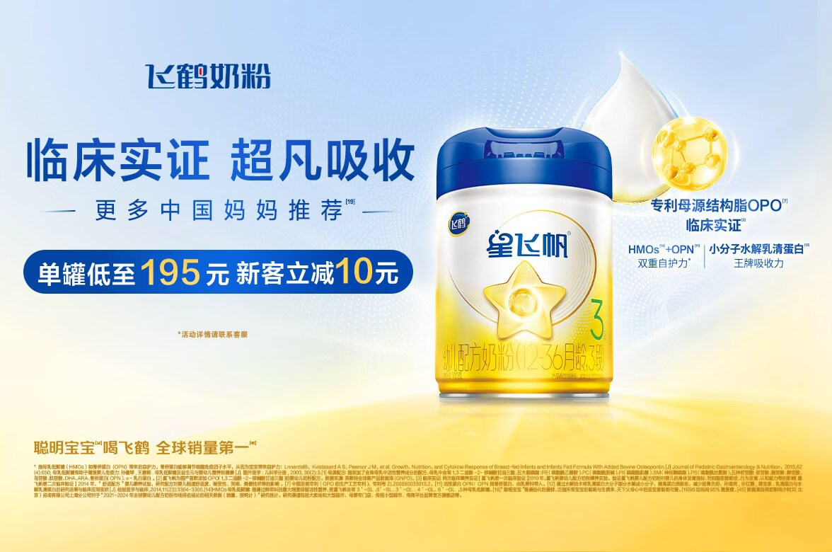 飞鹤星飞帆 婴幼儿配方奶粉3段(1-3岁) 700g 专利OPO 育儿补贴