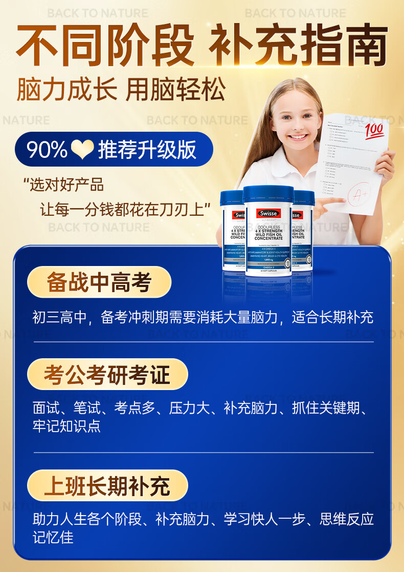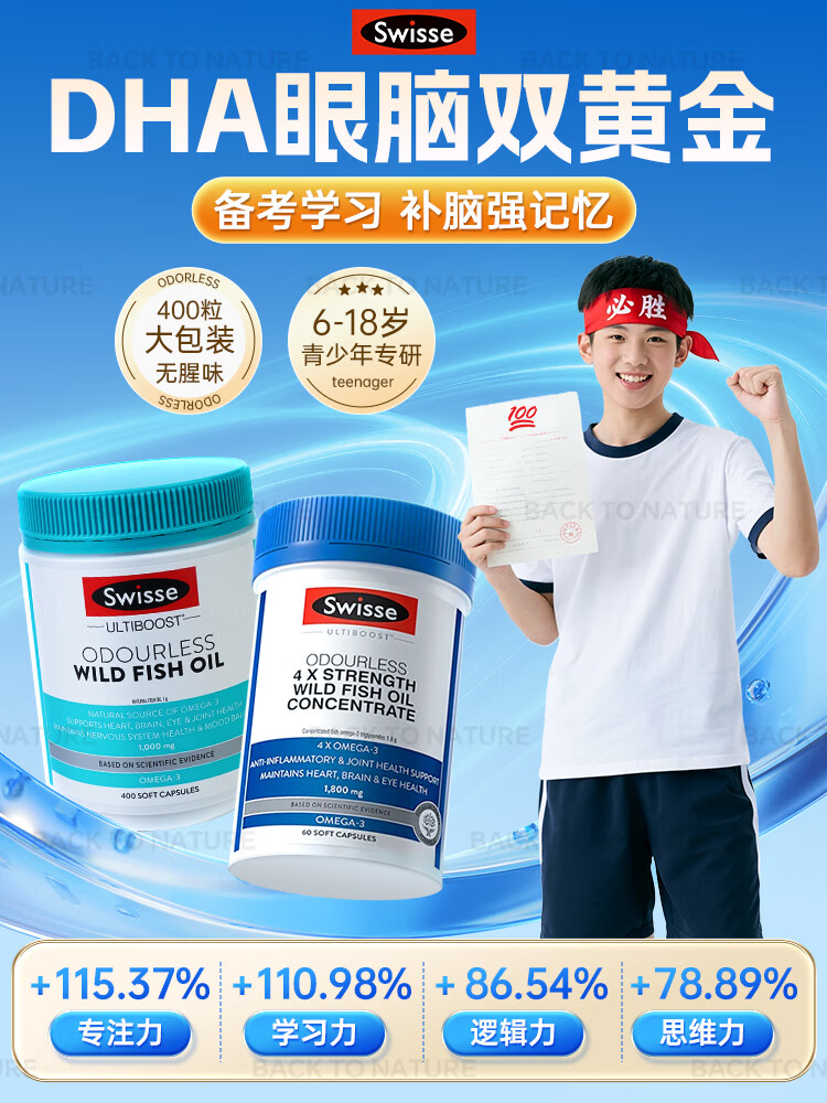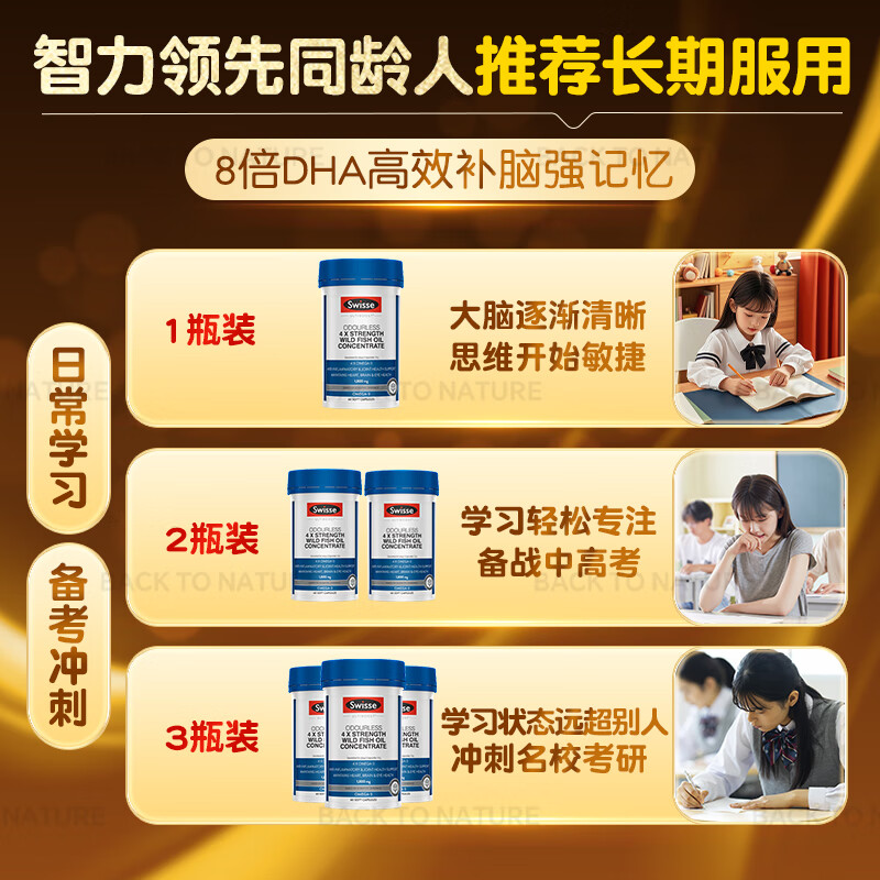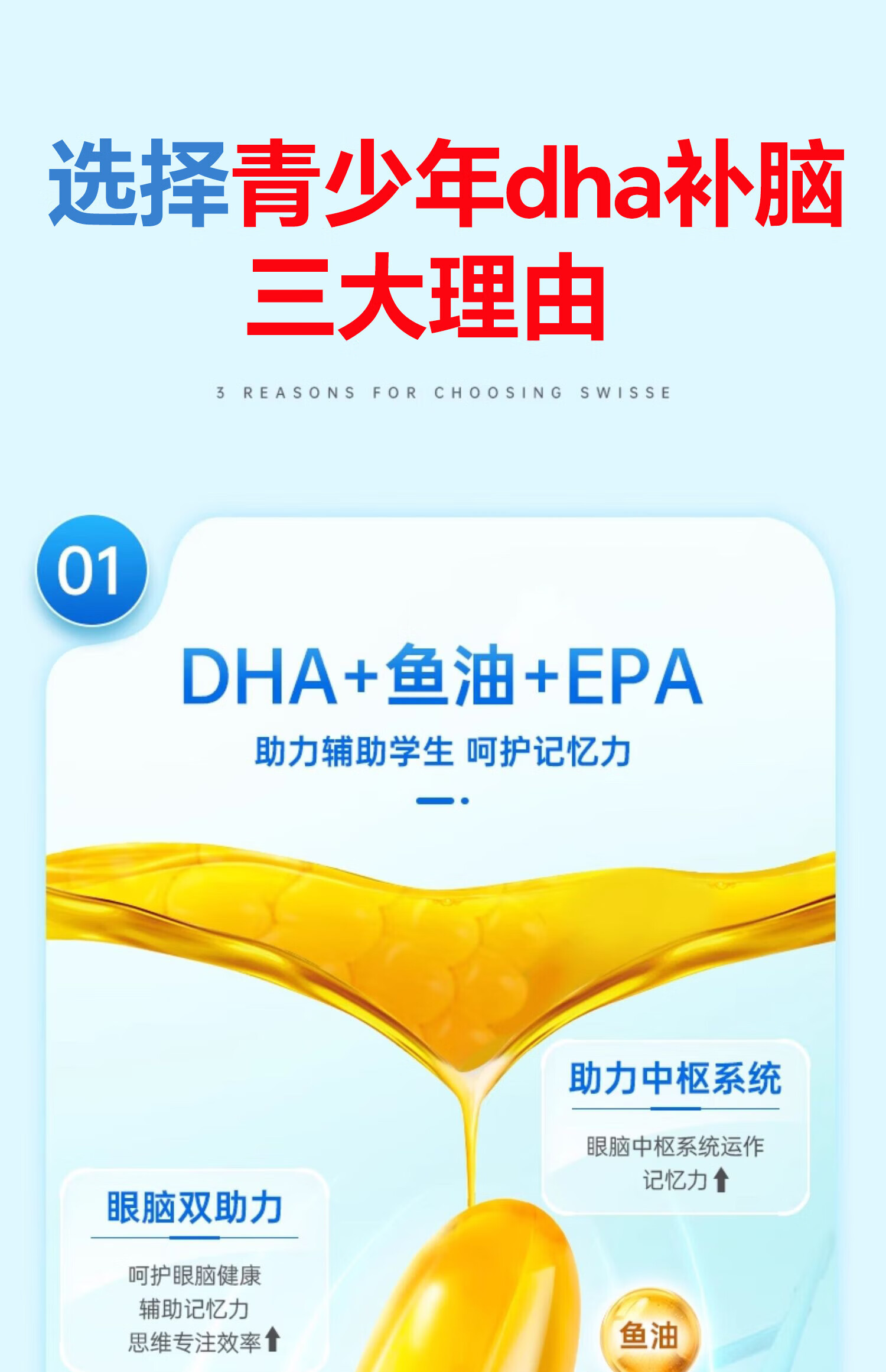 Swisse斯维诗dha青少年6-18岁补脑增强记忆力学生补脑初中高考研 【8倍补脑冲刺装】dha60粒*2瓶立减60元