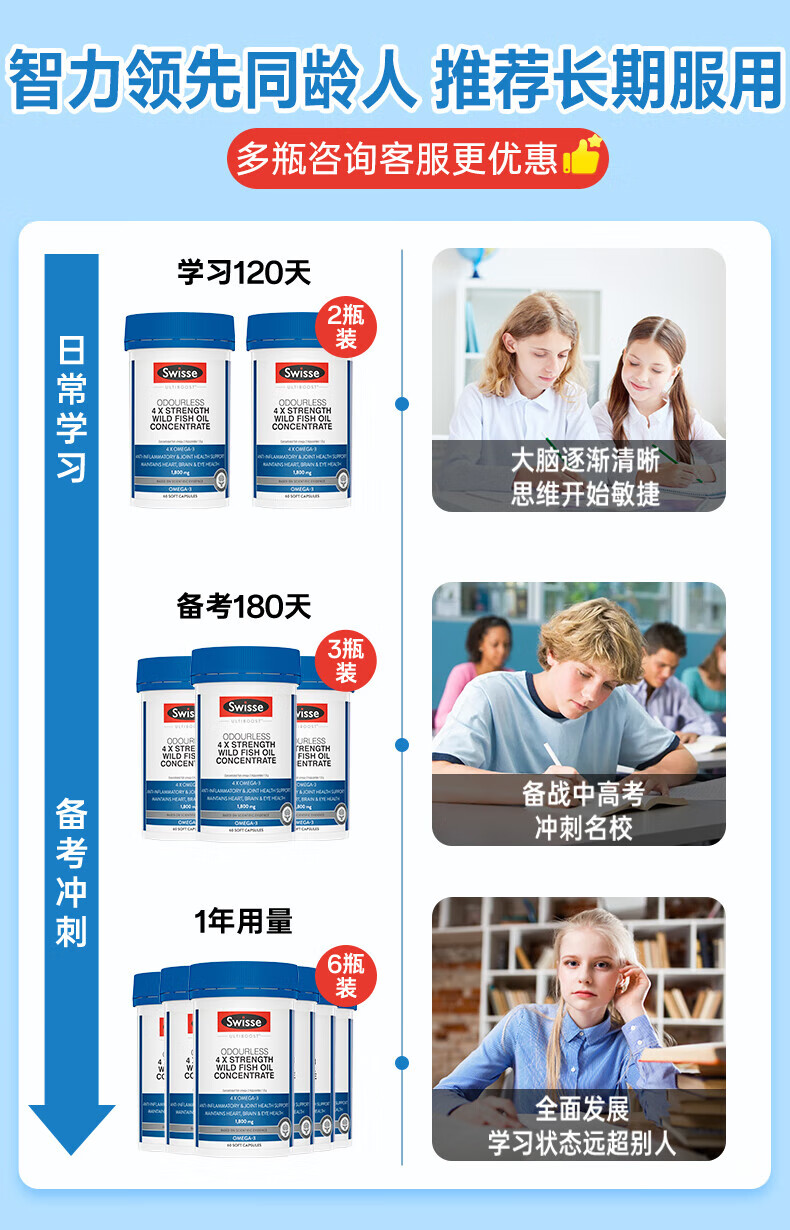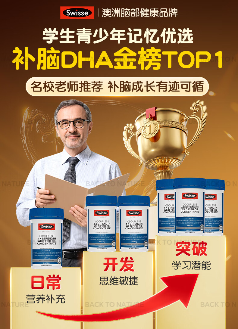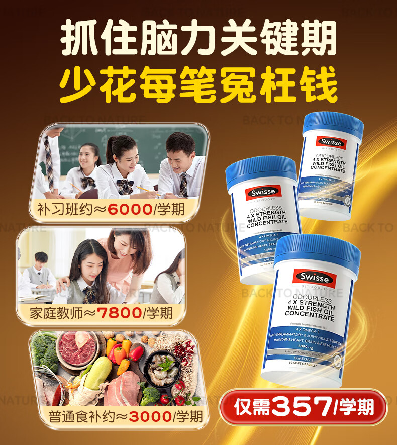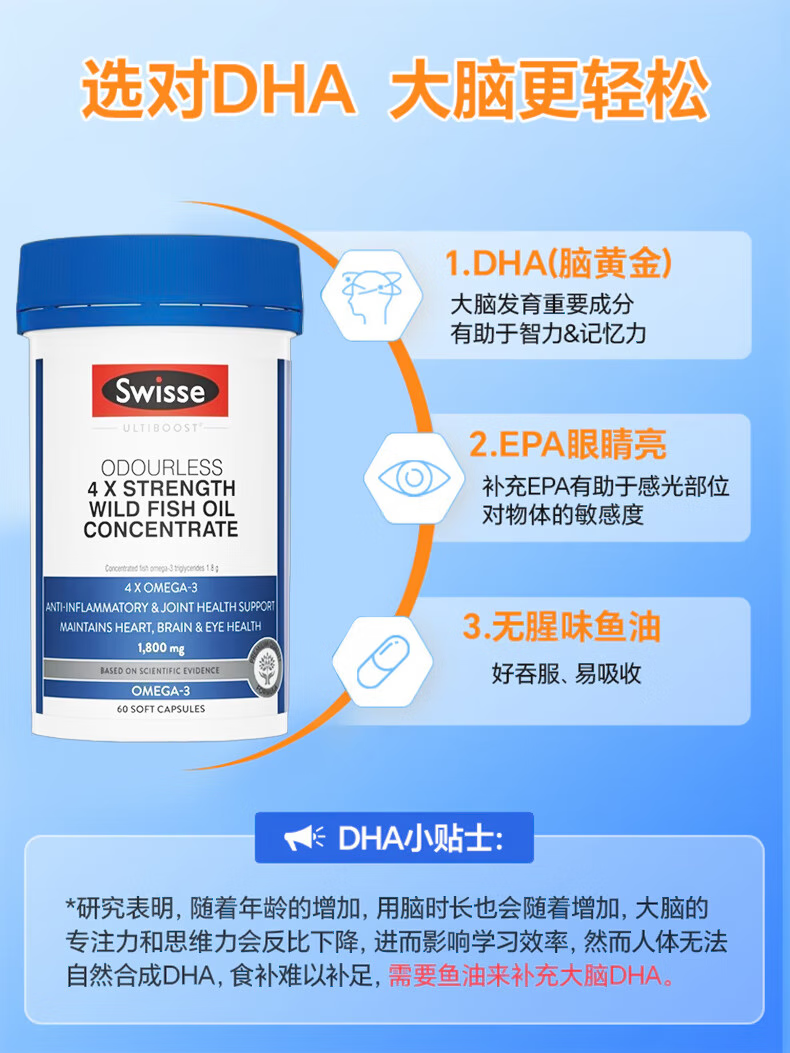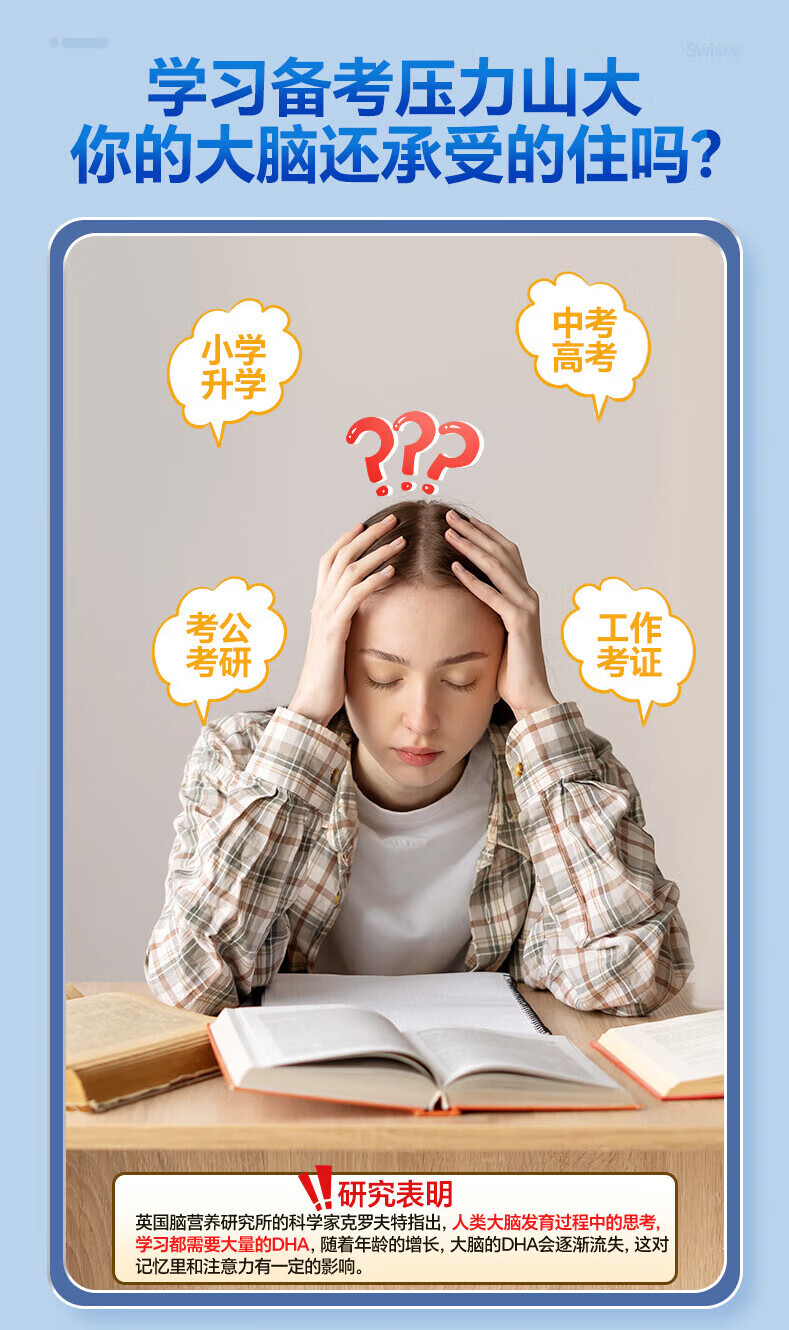 Swisse斯维诗dha青少年6-18岁补脑增强记忆力学生补脑初中高考研 【8倍补脑冲刺装】dha60粒*2瓶立减60元