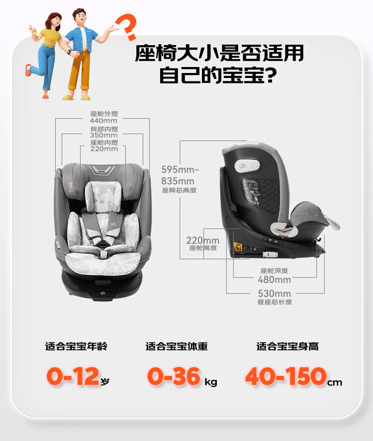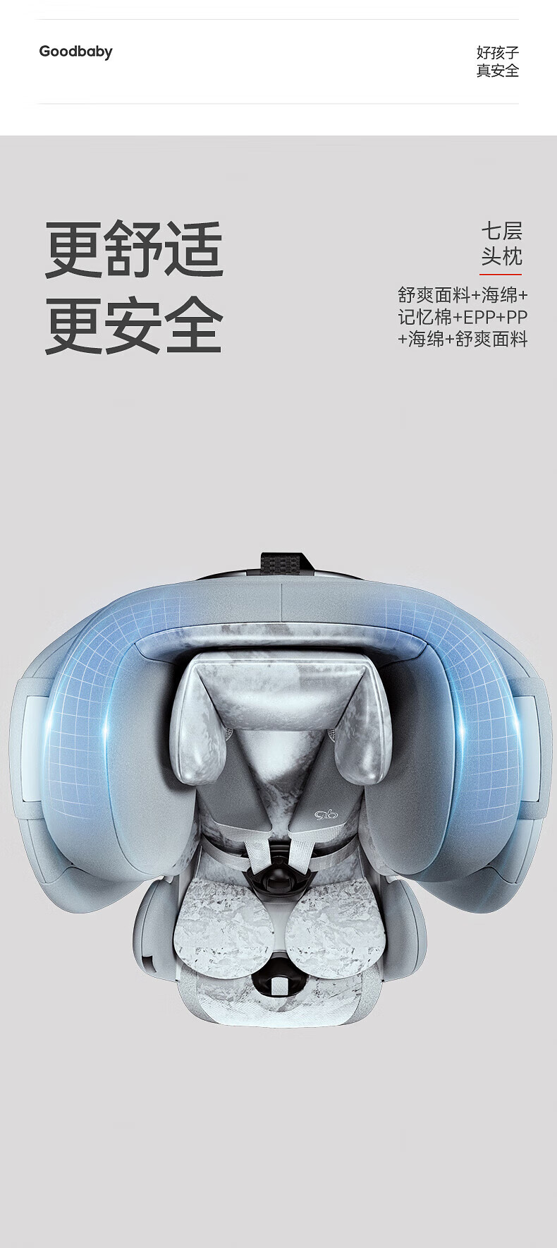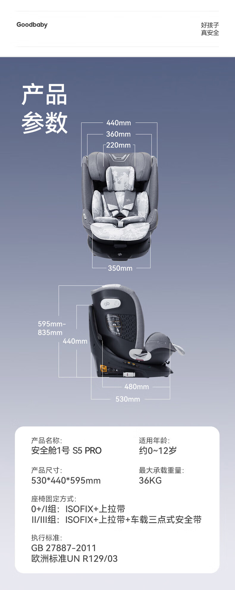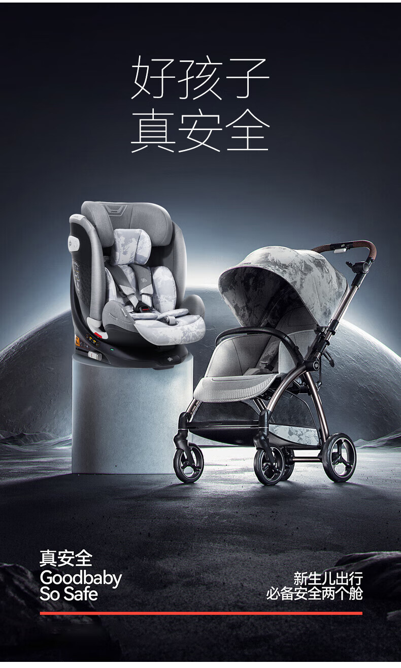 好孩子(gb)儿童安全座椅0-7-12岁通风散热车载婴儿安全座椅 安全舱1号星际灰