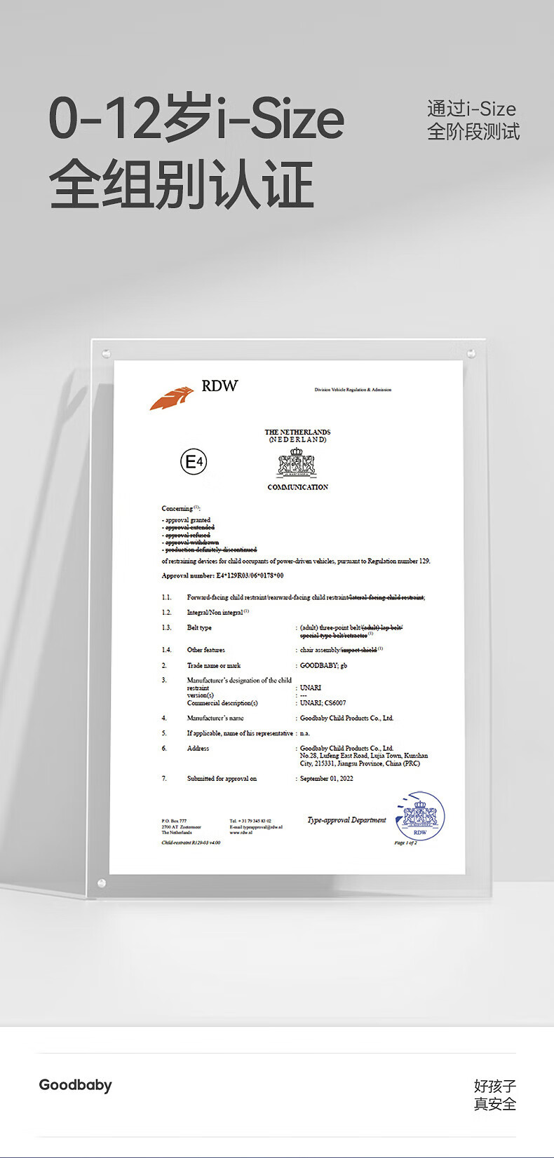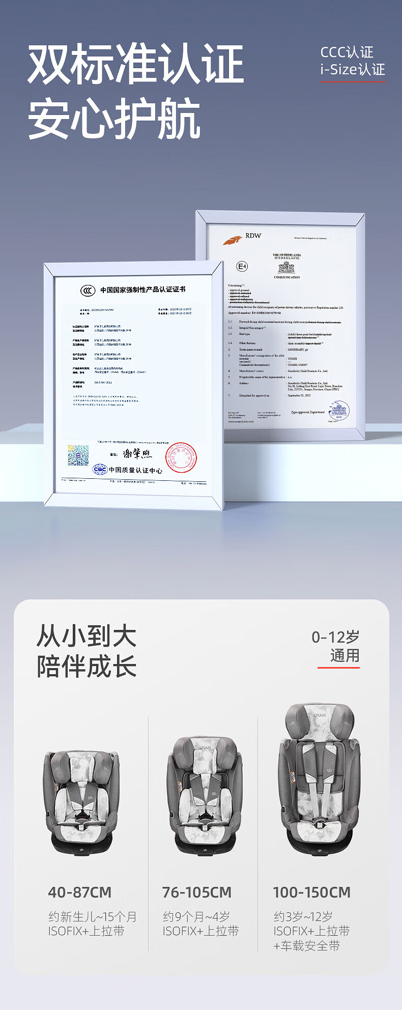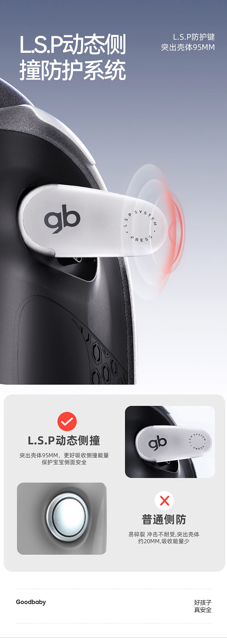 好孩子(gb)儿童安全座椅0-7-12岁通风散热车载婴儿安全座椅 安全舱1号星际灰