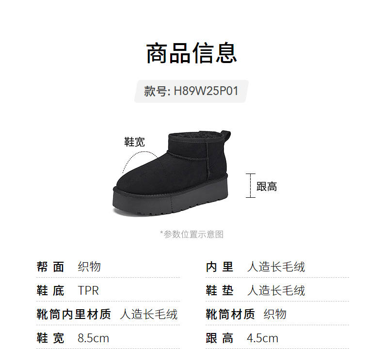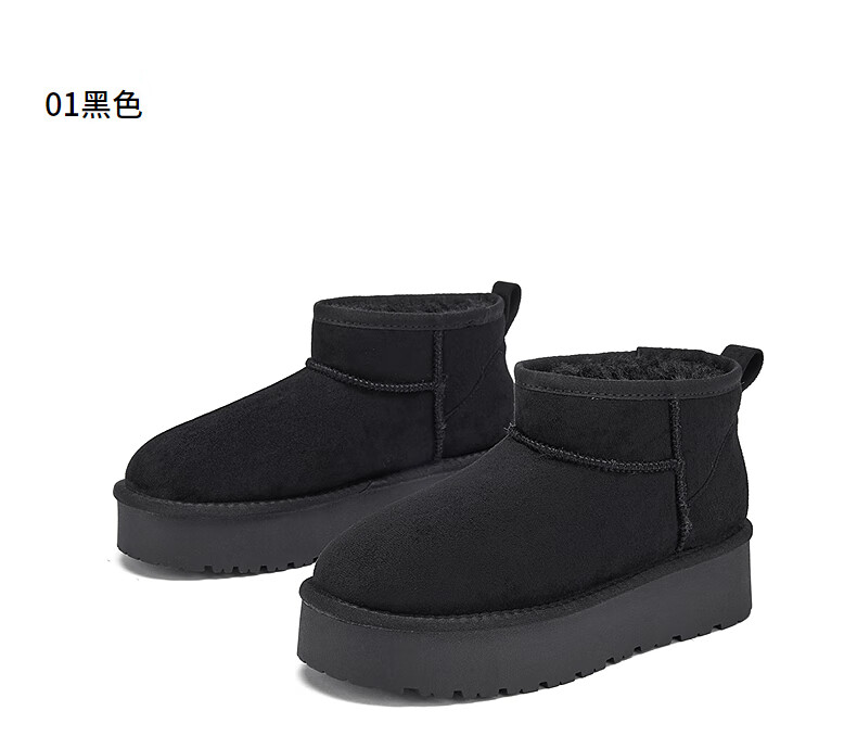 热风(Hotwind)厚底雪地靴女2025年冬季新款加绒保暖休闲棉鞋百搭女鞋靴子 01黑色 37