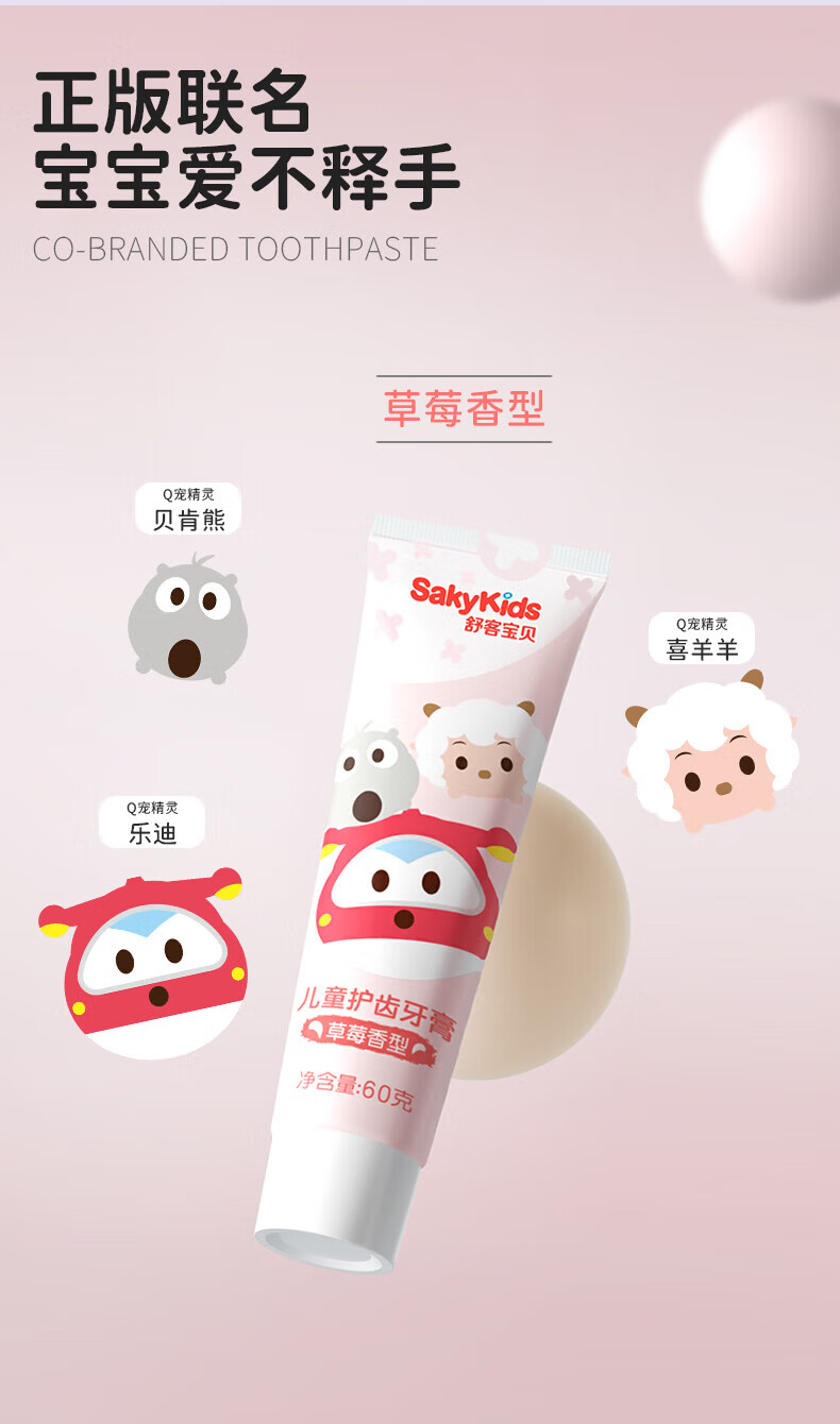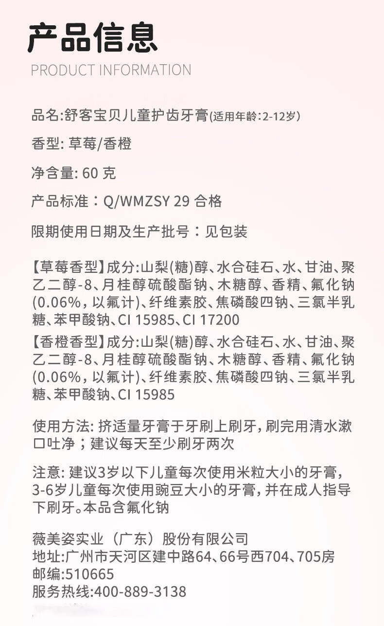 舒客非舒克儿童牙膏防蛀含氟护齿宝宝换牙期水果香味 草莓味60g1支
